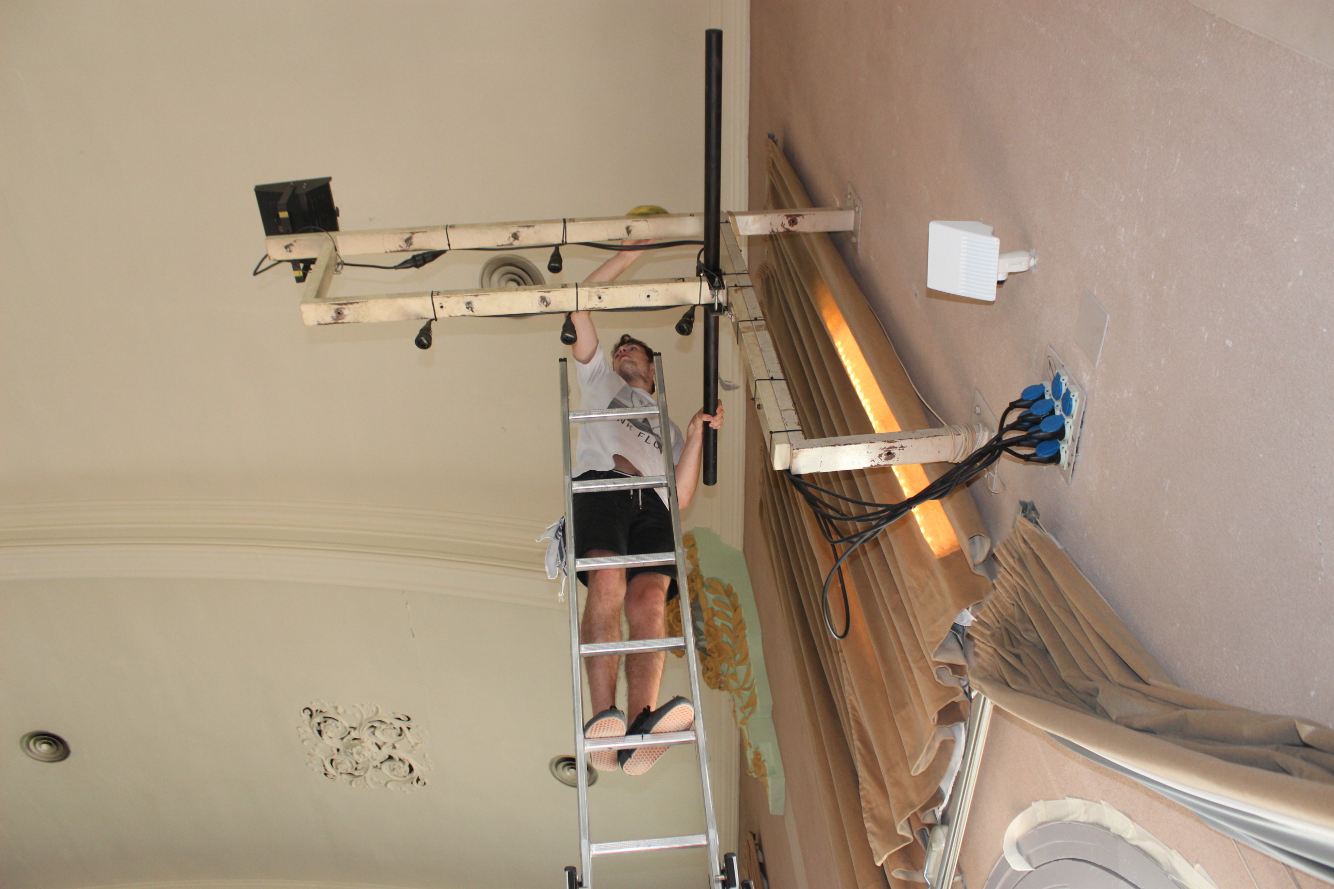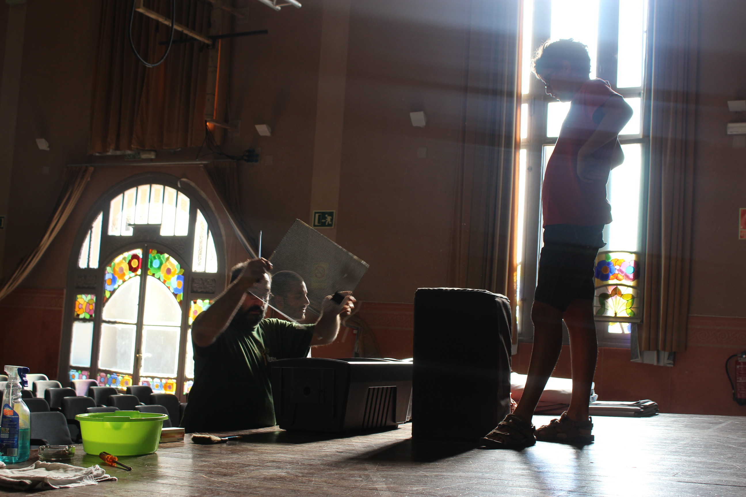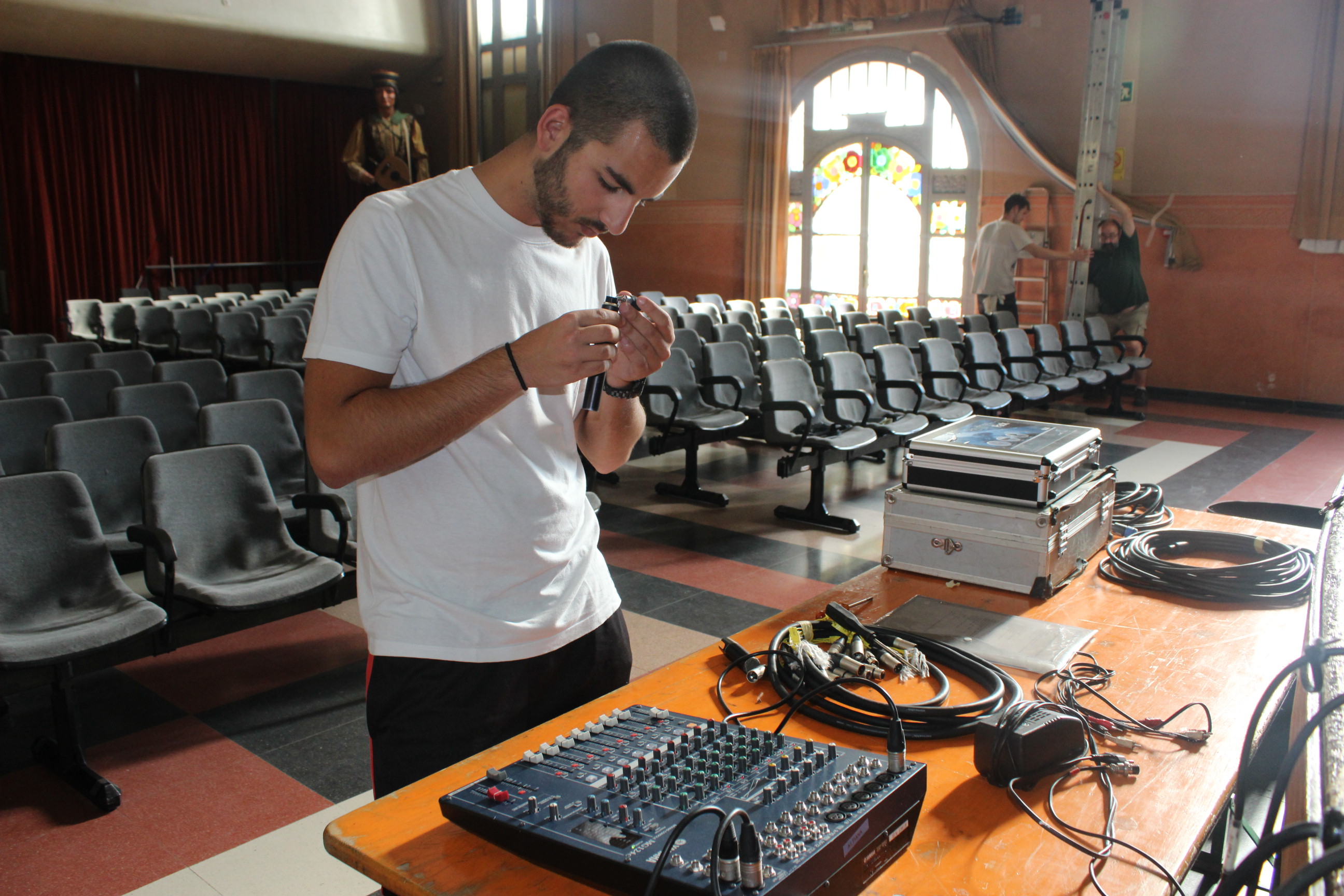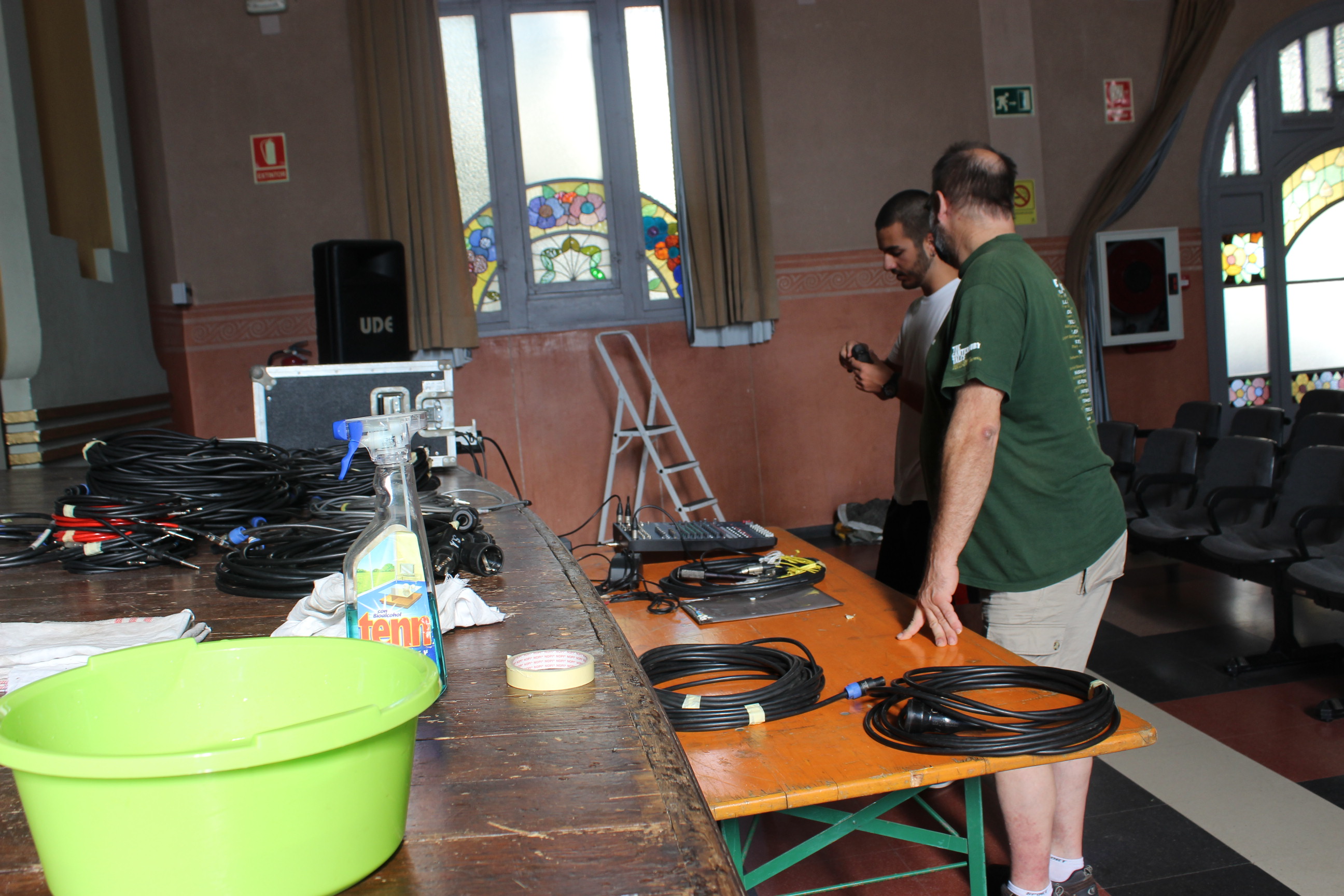 L’Albert Freixas, en “Iaio”, i el seu jove equip de tècnics enllesteixen aquests dies la revisió anual de la Sala Albéniz: treure la pols de racons inaccessibles, repassar un per un els cables de llum i so o netejar a fons fins la darrera volta del focus més esquerp. En Iaio, responsable de manteniment del teatre tianenc, comanda una revisió i posada a punt que es fa cada estiu des d’en fa una quinzena:
