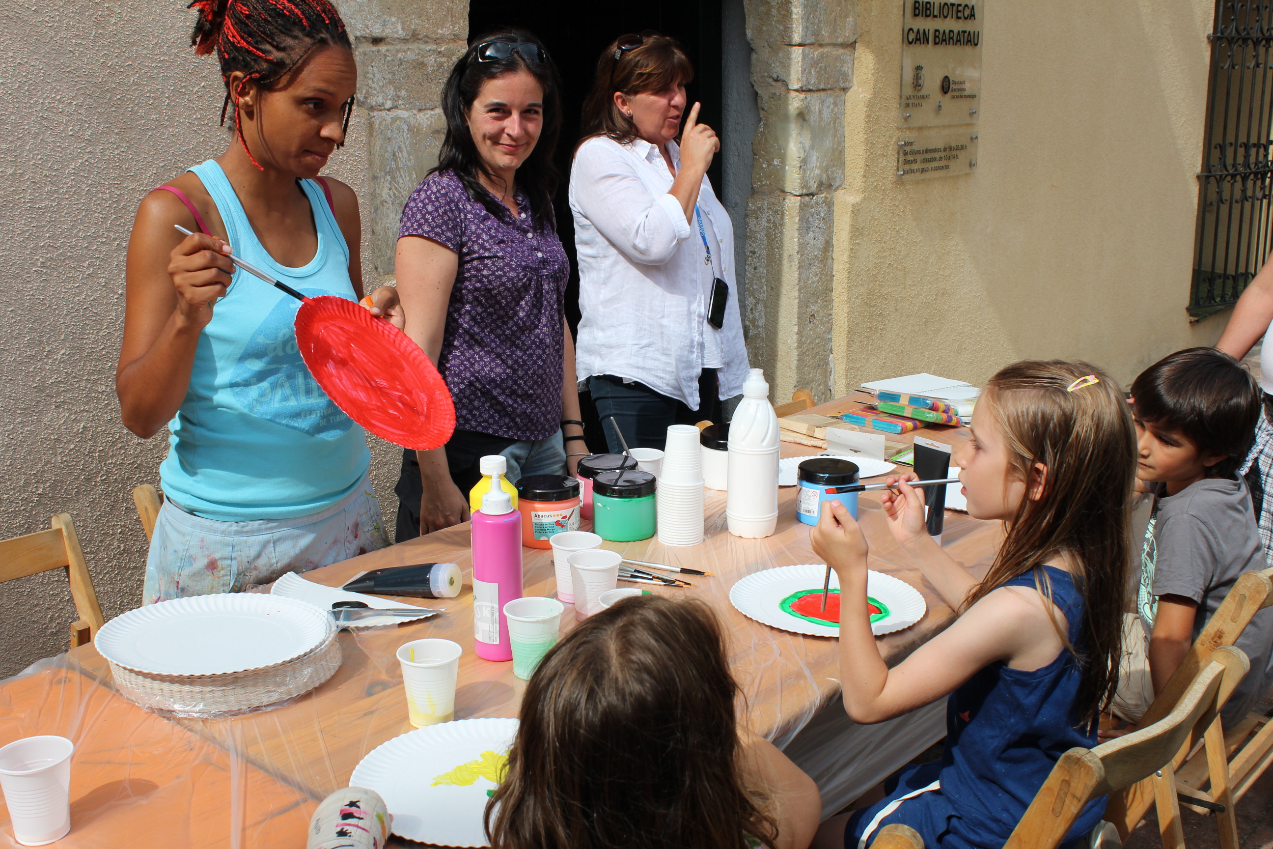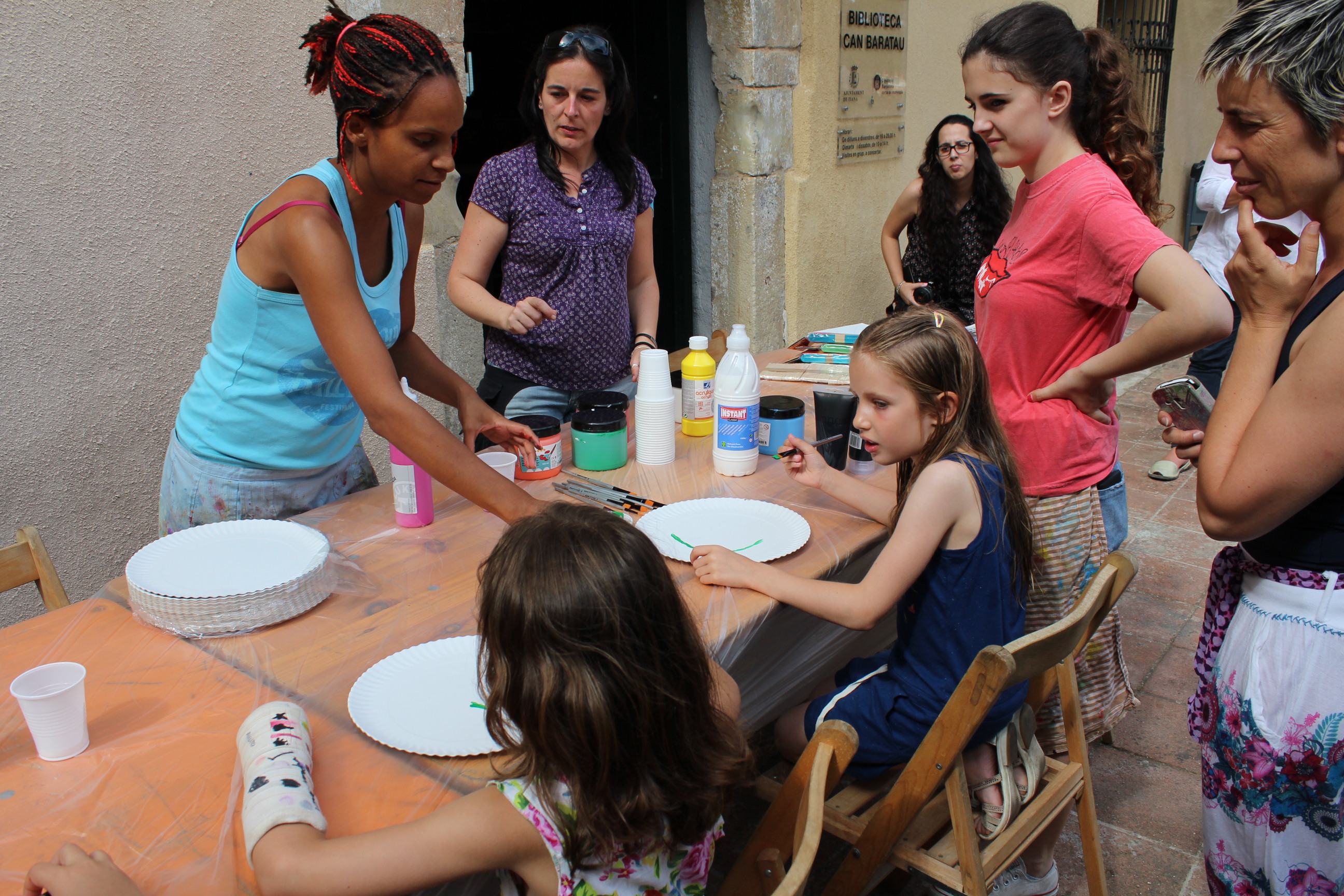 Aquest dissabte a la tarda els Jardins de la Biblioteca Can Baratau s’han omplert de curiosos nens i nenes acompanyats de les seves famíles. I és que els més petits del poble també volen ser partíceps de la Festa Major Petita. A la Biblioteca s’hi feien tres tallers pensats per a tots els gustos. Tot i que ha costat arrencar i la gent no ha començat a arribar fins passades les cinc, els tallers han tingut èxit de participació.