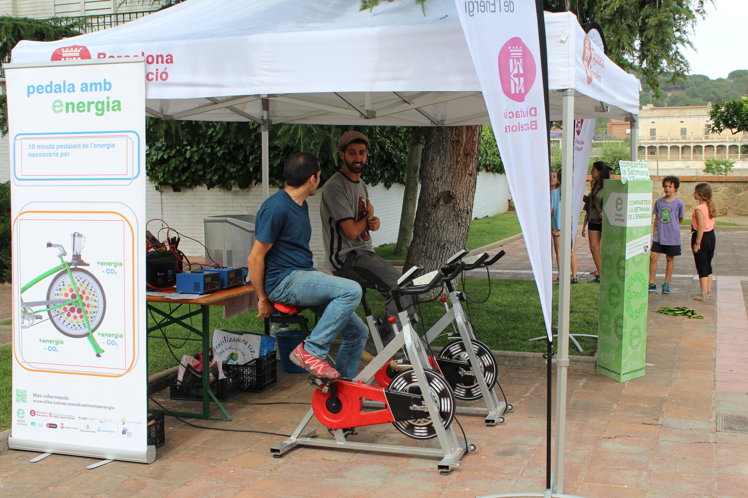 L’últim dels tallers també formava part de les activitats de la Setmana de l’Energia i era perfecte per la tarda de xafogor que ha fet. Consistia en pedalar durant 10 minuts per aconseguir fer un granitzat de llimona. A banda de refrescar-nos i fer esport, l’objectiu principal de la pedalada era conscienciar a grans i petits de que obtenir energia costa més del que ens pensem i que, actualment, hi ha moltes formes alternatives de generar-ne. En Xavier, uns dels organitzadors de l’activitat, ha explicat a La Local el funcionament exacte de les bicicletes que fan granissat.