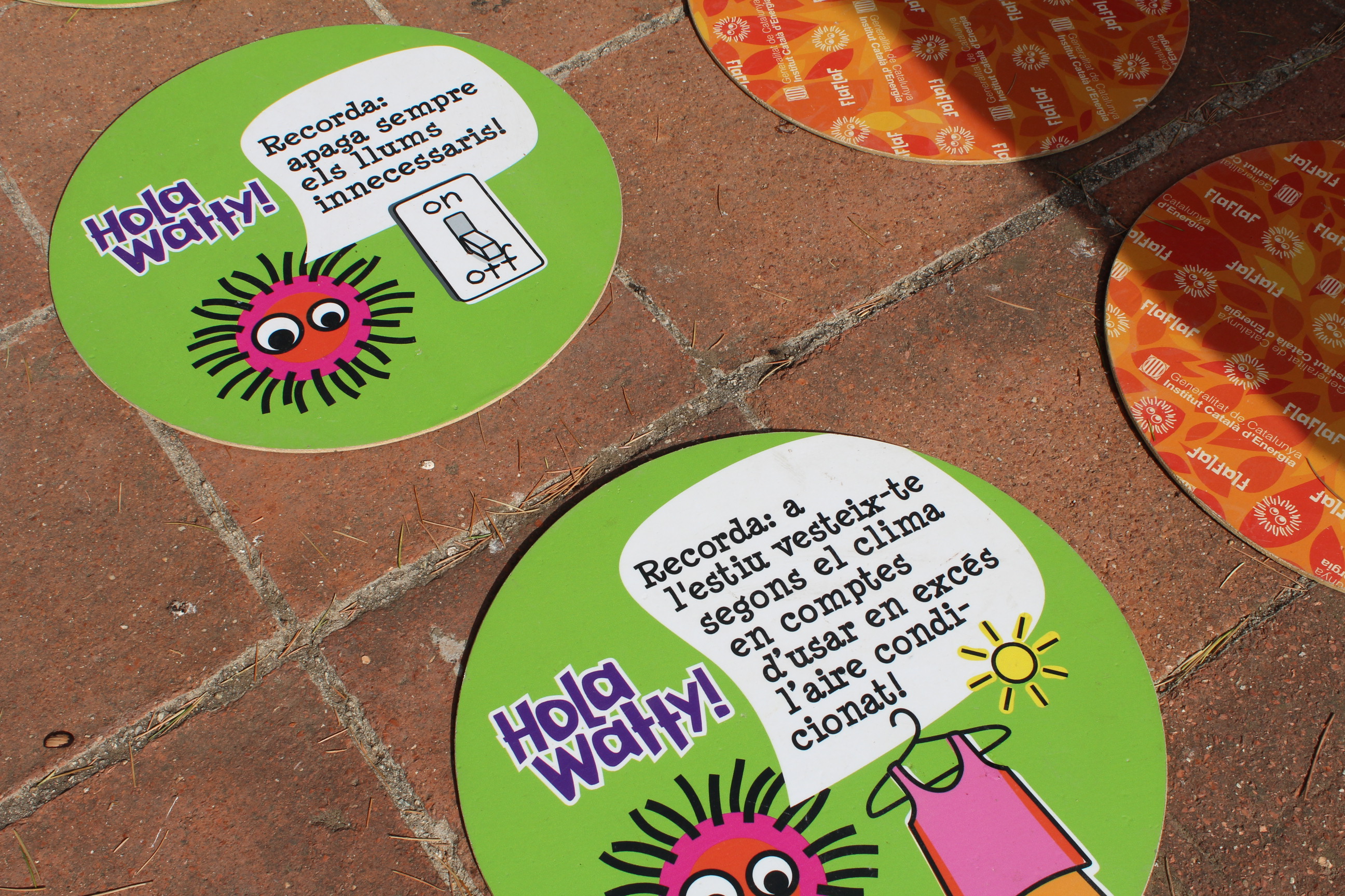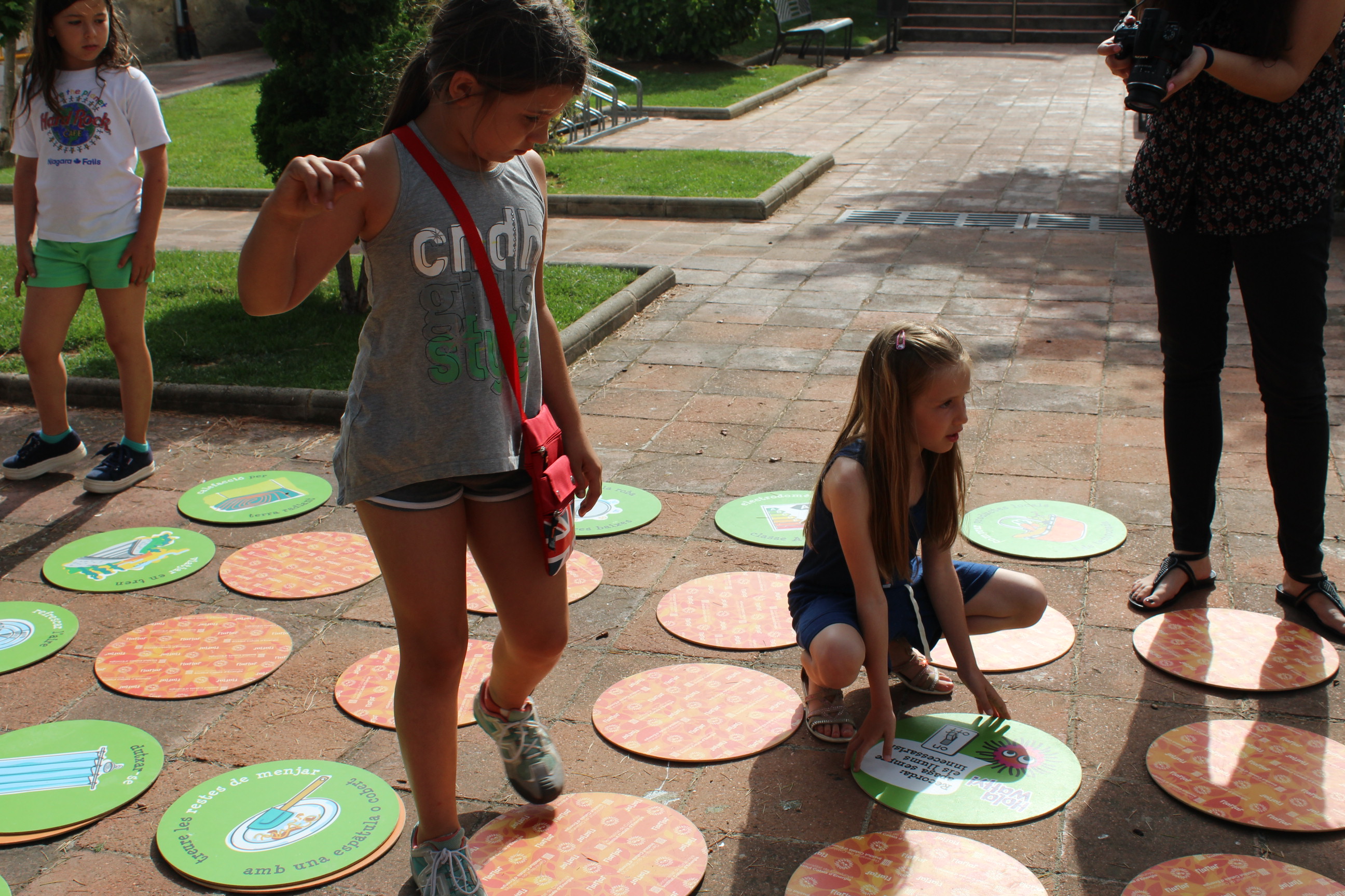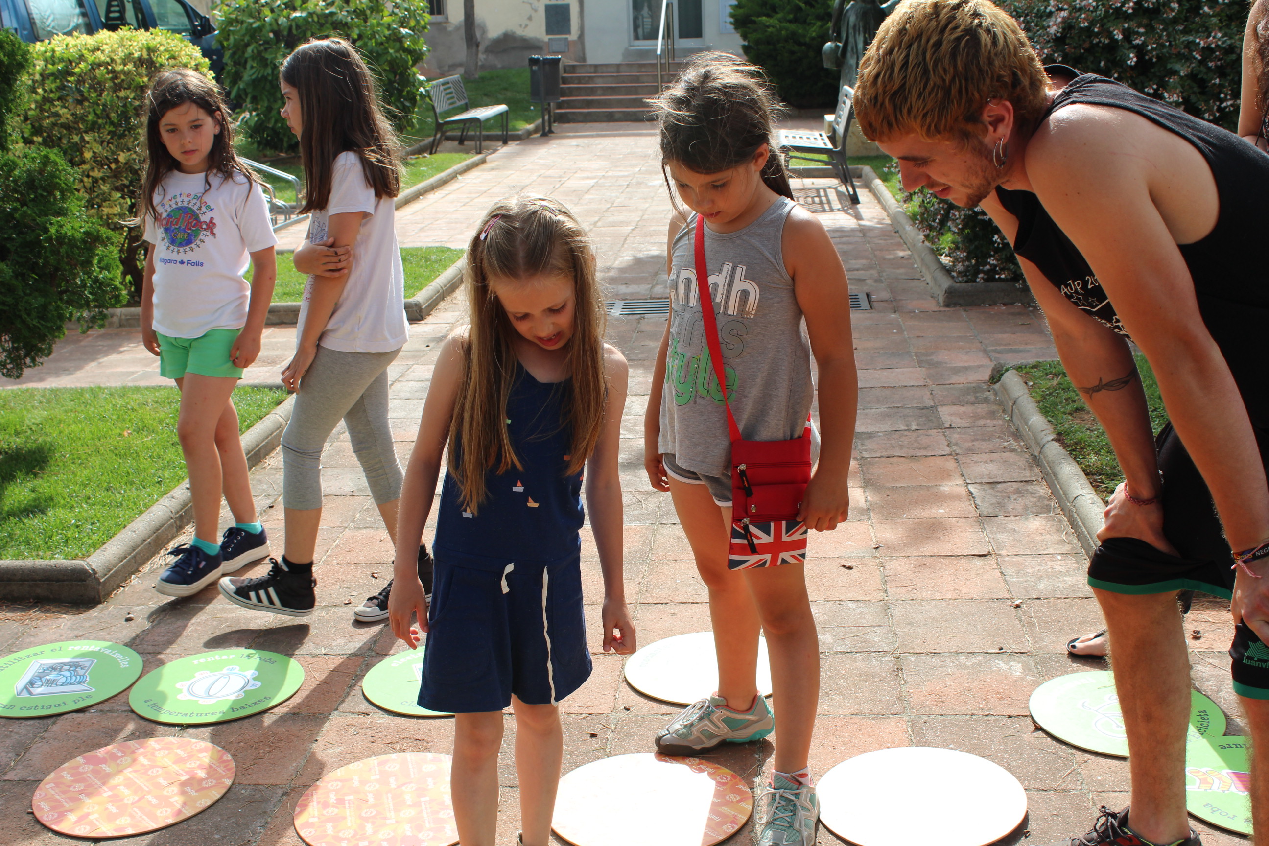 El segon taller convidava a aprendre jugant. Era una activitat enmarcada en la Setmana de l’Energia. Al bell mig dels jardins de la Biblioteca, s’hi ha instal·lat un enorme joc de parelles d’allò més original. Els que hi han jugat, han hagut d’aparellar accions del dia a dia en les quals gastem molta energia amb d’altres que fan gastar-ne menys. Per exemple, havien d’aparellar el fet de fer-nos una banyera amb l’acció de dutxar-nos, on gastem molta menys aigua.