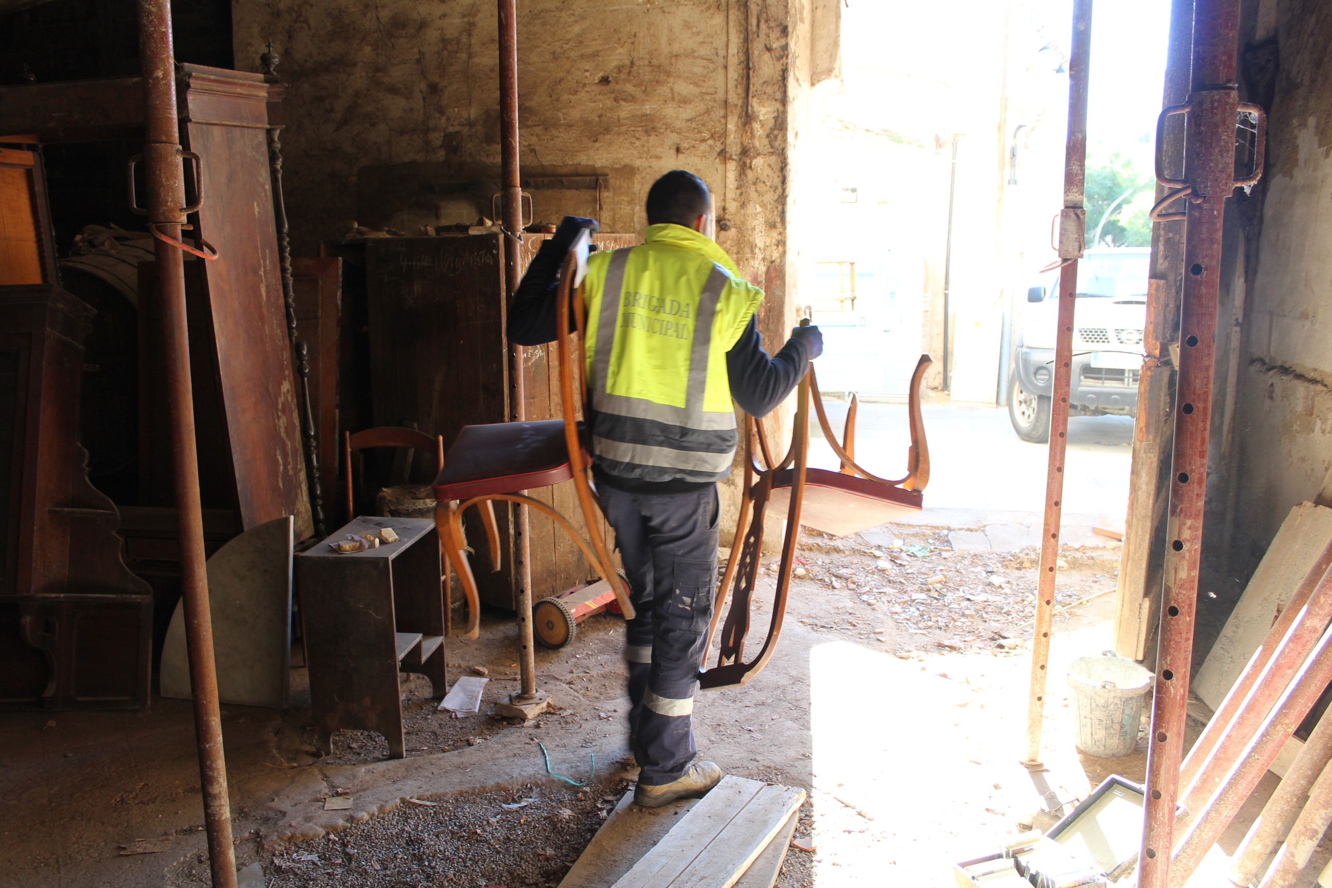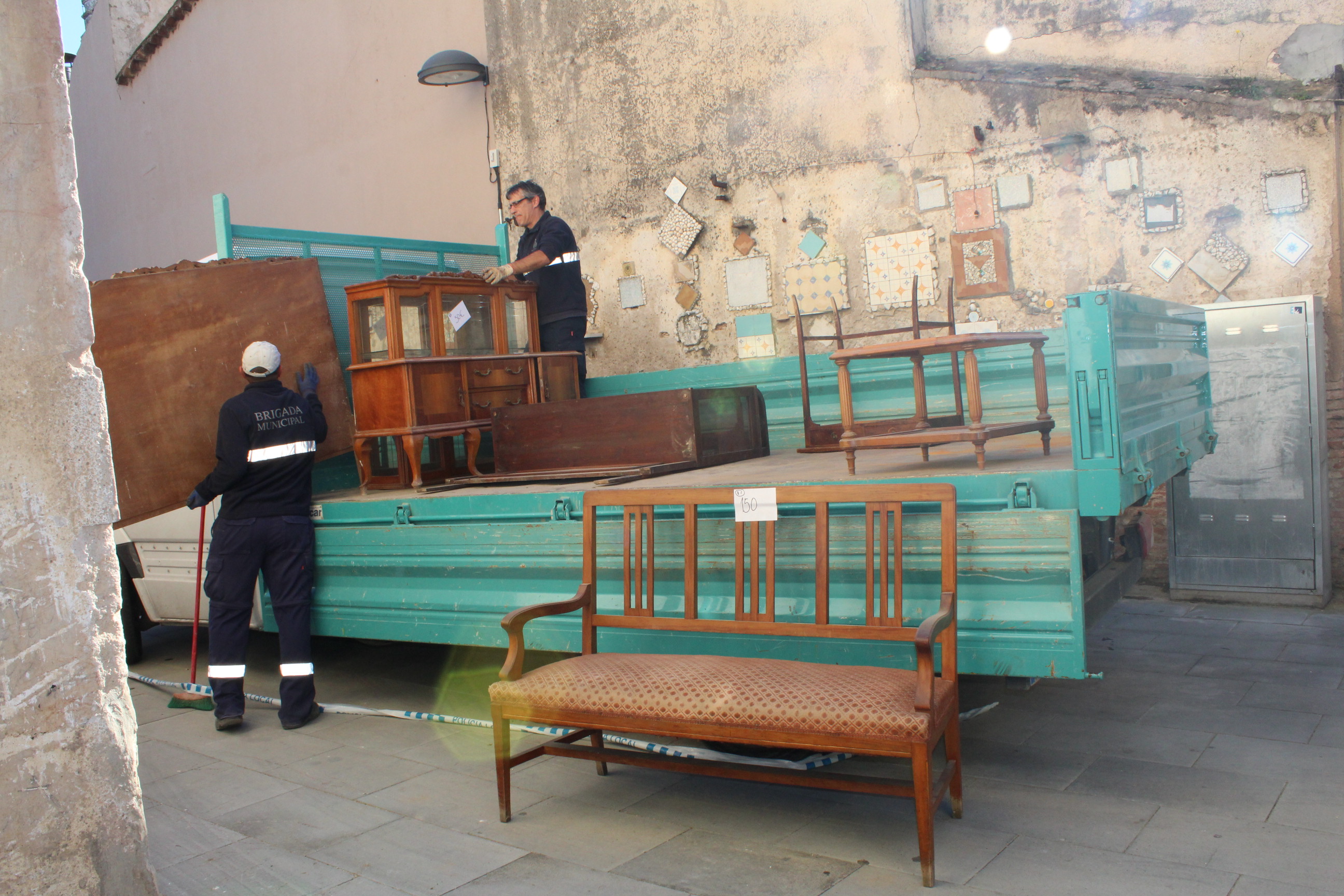 Aquest dilluns, la Brigada ha retirat els mobles antics en bon estat que encara albergava la masia. Els guardaran a un dels dipòsits municipals de Tiana.
