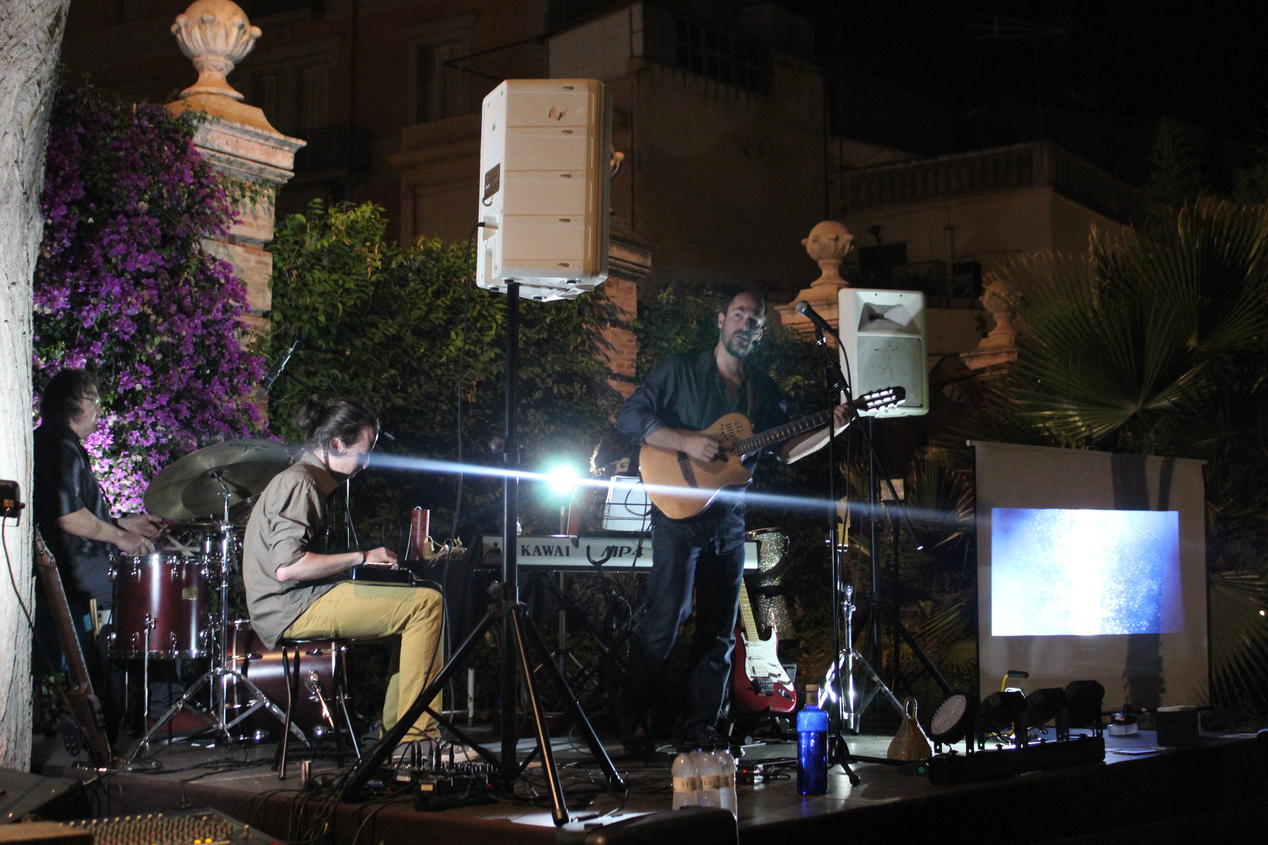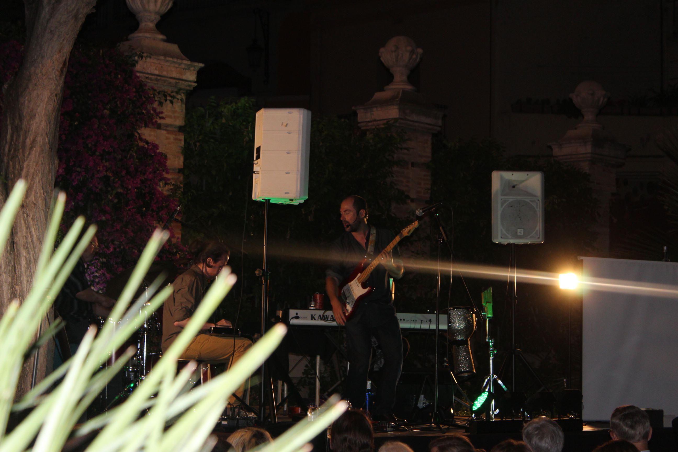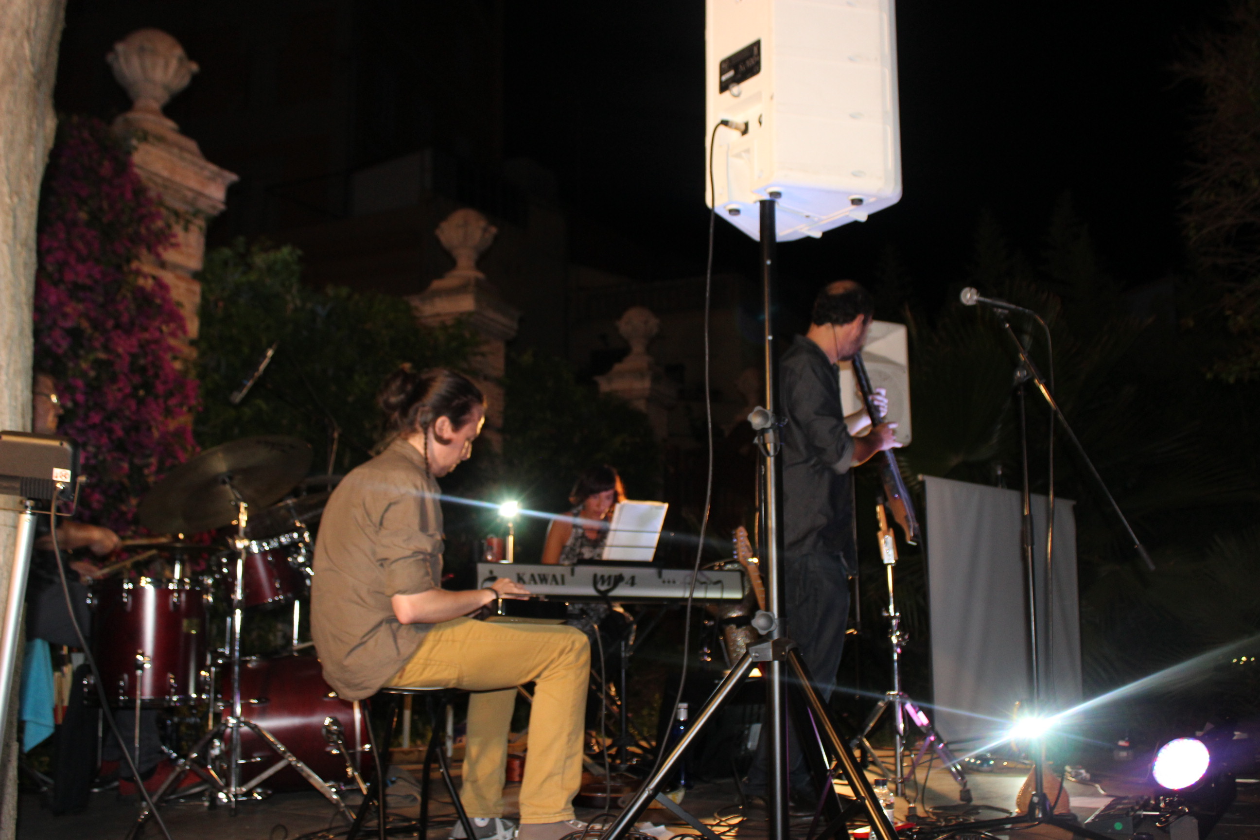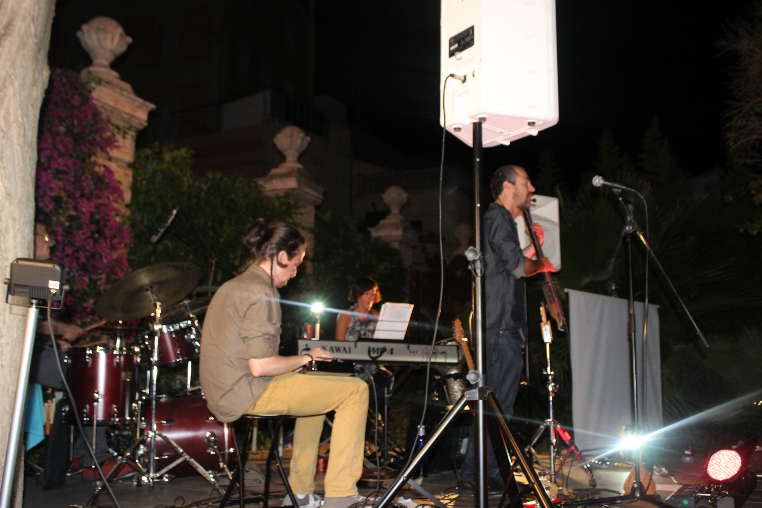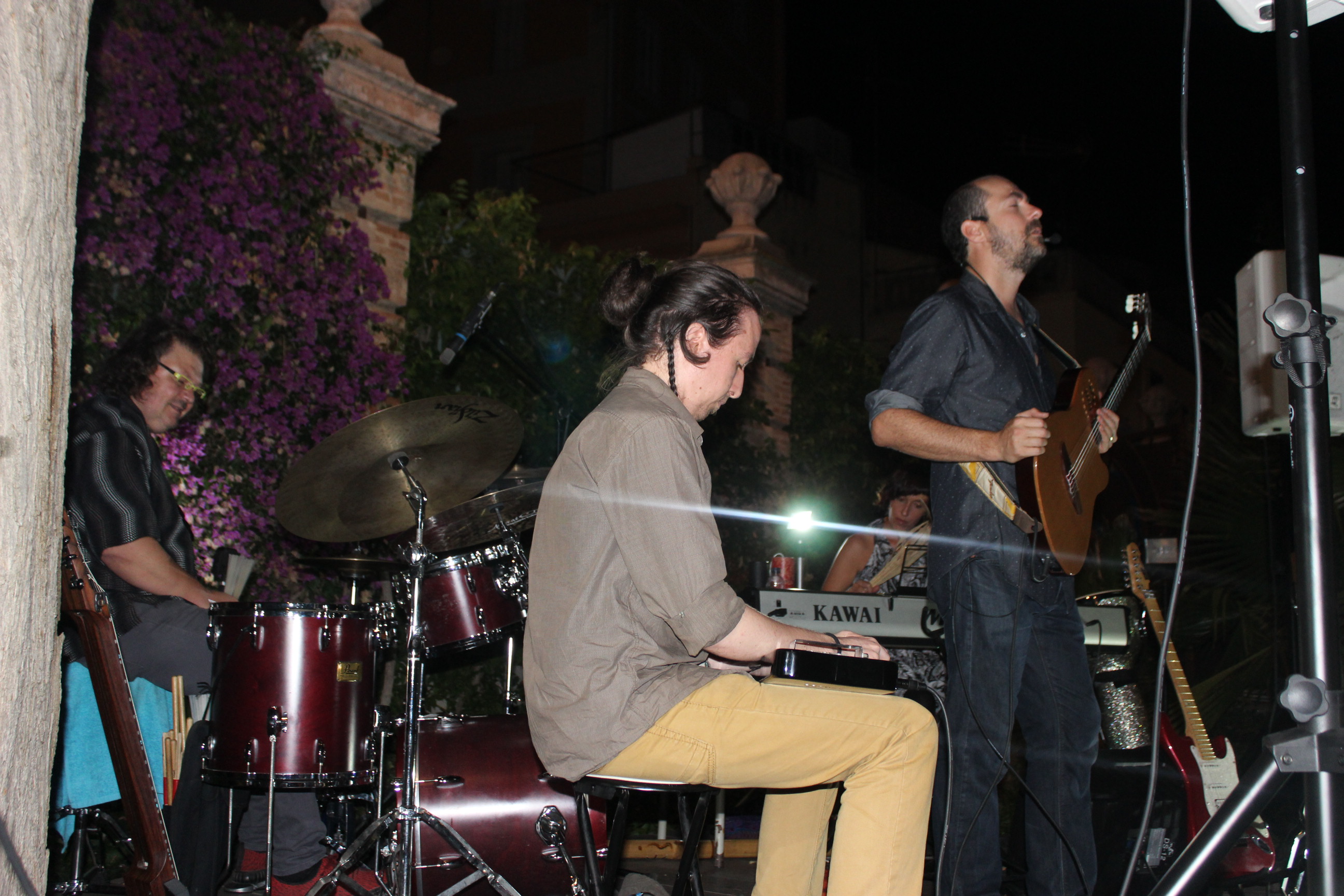 Sonoritats diferent i instruments peculiars que han agradat molt al públic congregat al jardí, to0t i la nit xafogosa. La sonoritat diferent d’aquest espai ha agradat a Jero Castellà: