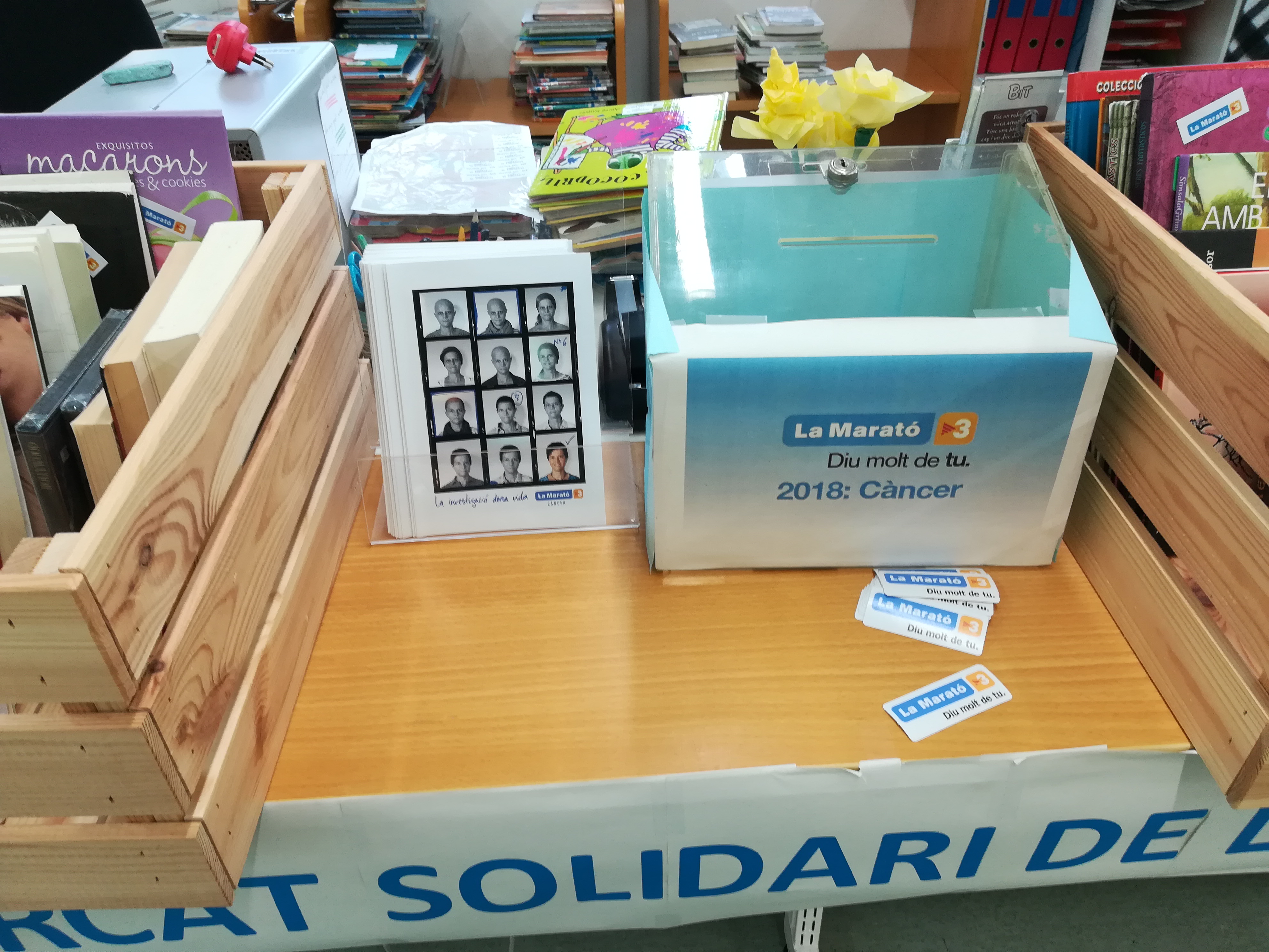 Can Baratau ja fa anys que col·labora a la campanya “Biblioteques amb la Marató” amb un seguit d’activitats que busquen donar suport a la Marató de TV3. La que mai no canvia i es manté en el temps és la venda de llibres de segona mà, que aquest any estan a un preu de dos euros. Ho explica la Pilar Aznar, directora de la biblioteca:
