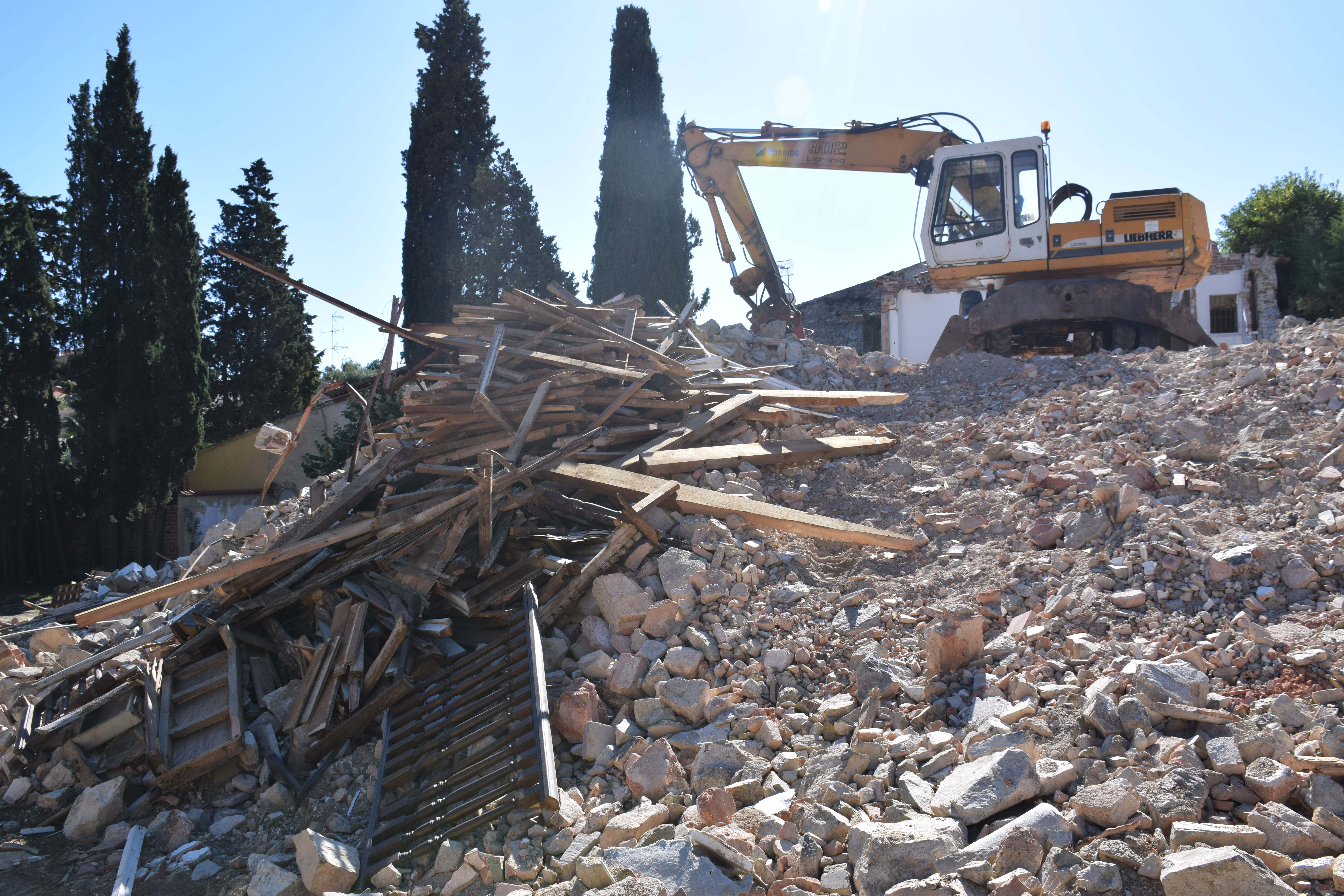 El vell edifici de Can Peitx, a la Riera de Tiana, ja és història. En pocs dies les màquines han dut a terme l’enderroc de l’edifici principal. S’hi construiran 20 vivendes, tal com va anunciar La Local-Radio Tiana el mes d’agost, dividides en 3 blocs que es repartiran per tota la finca.