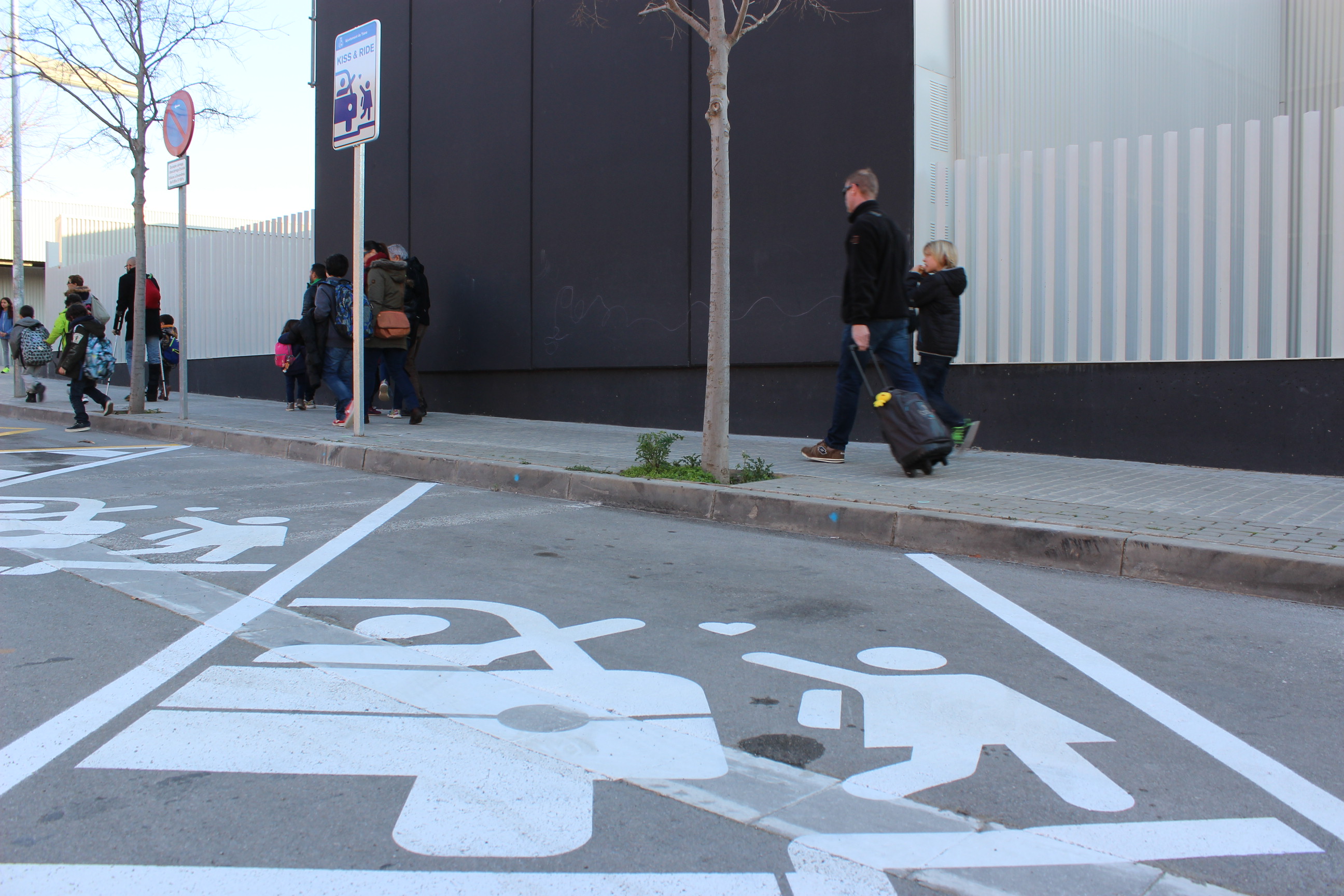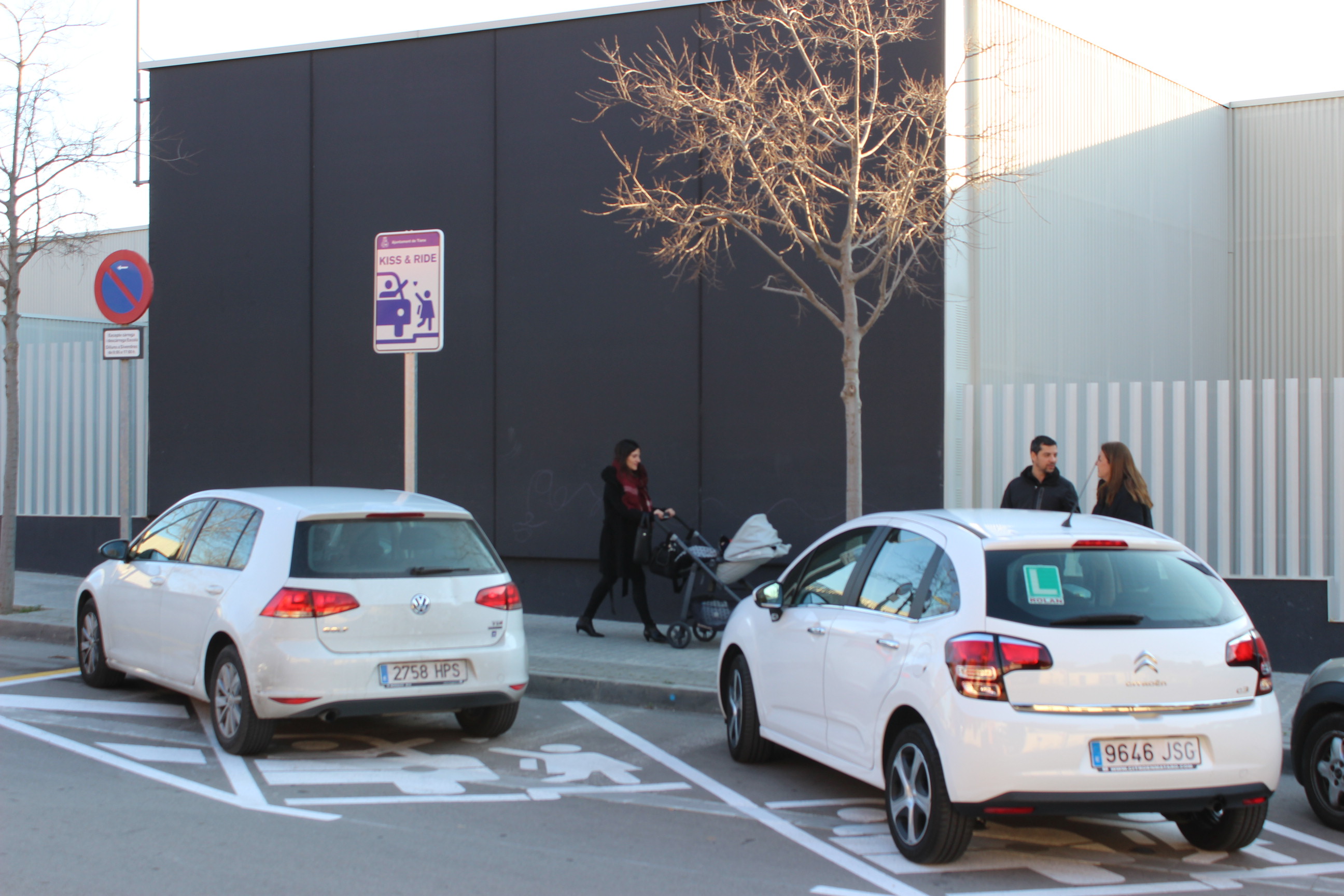 L’altra novetat és el canvi de posició en què es pot aparcar. Ara s’ha de fer en bateria, el que hauria de, en un principi, facilitar més espai. Tot plegat s’anomena “Kiss & Ride”, petó i en marxa, una clara referència que no s’hi pot aparcar durant molta estona. Els principals usuaris són els pares i mares de l’escola. Això és el que diuen sobre l’horari.