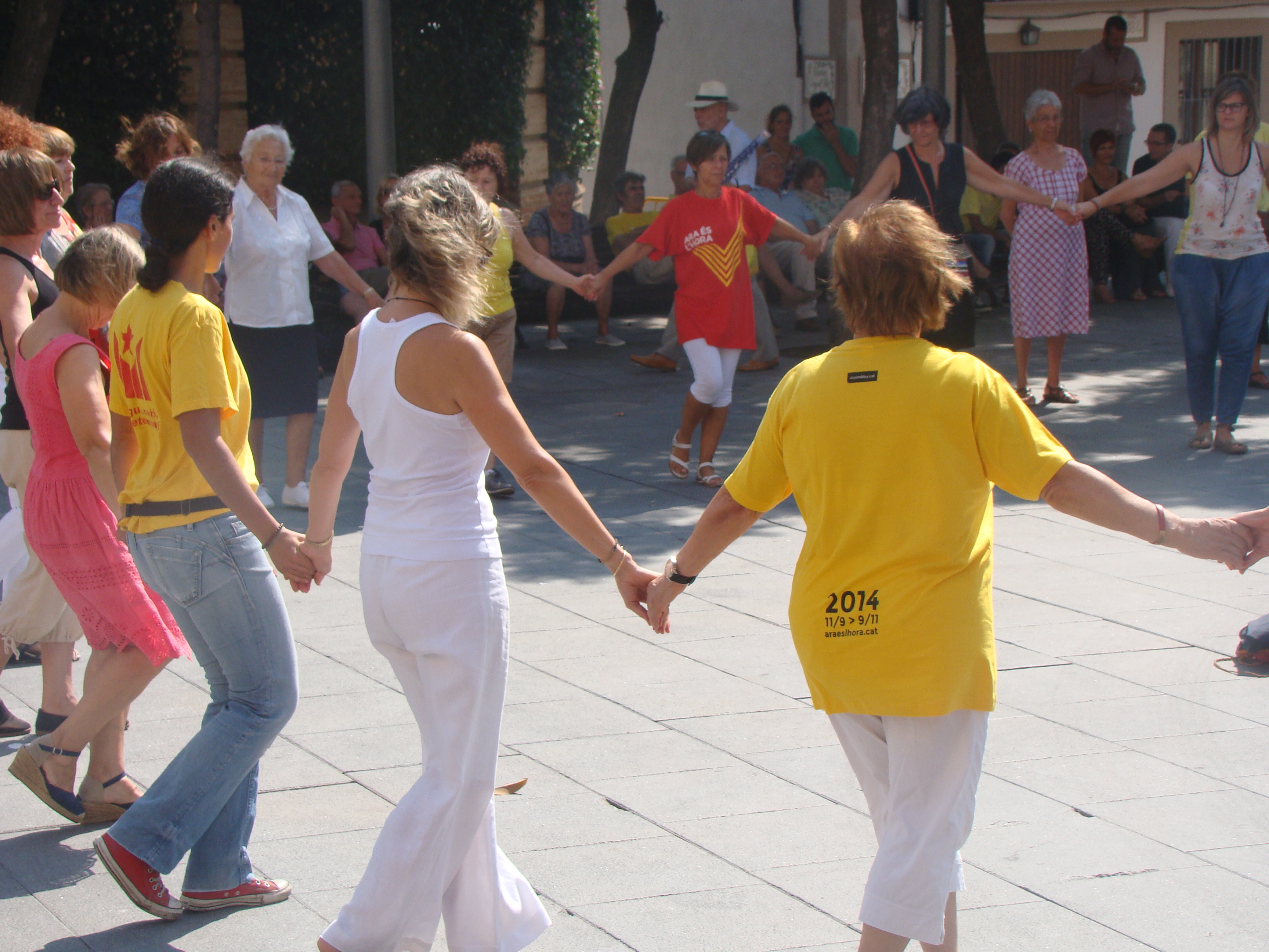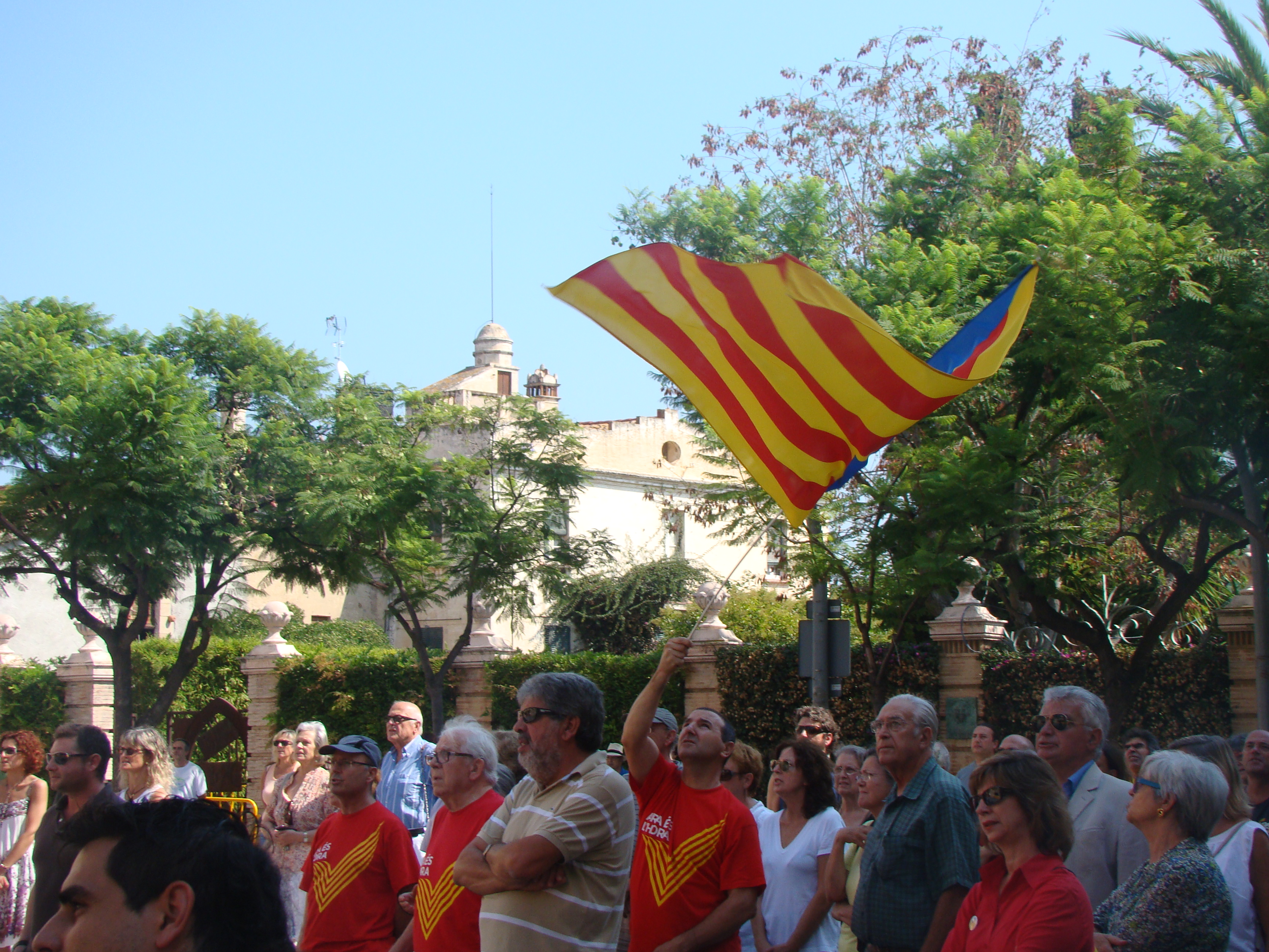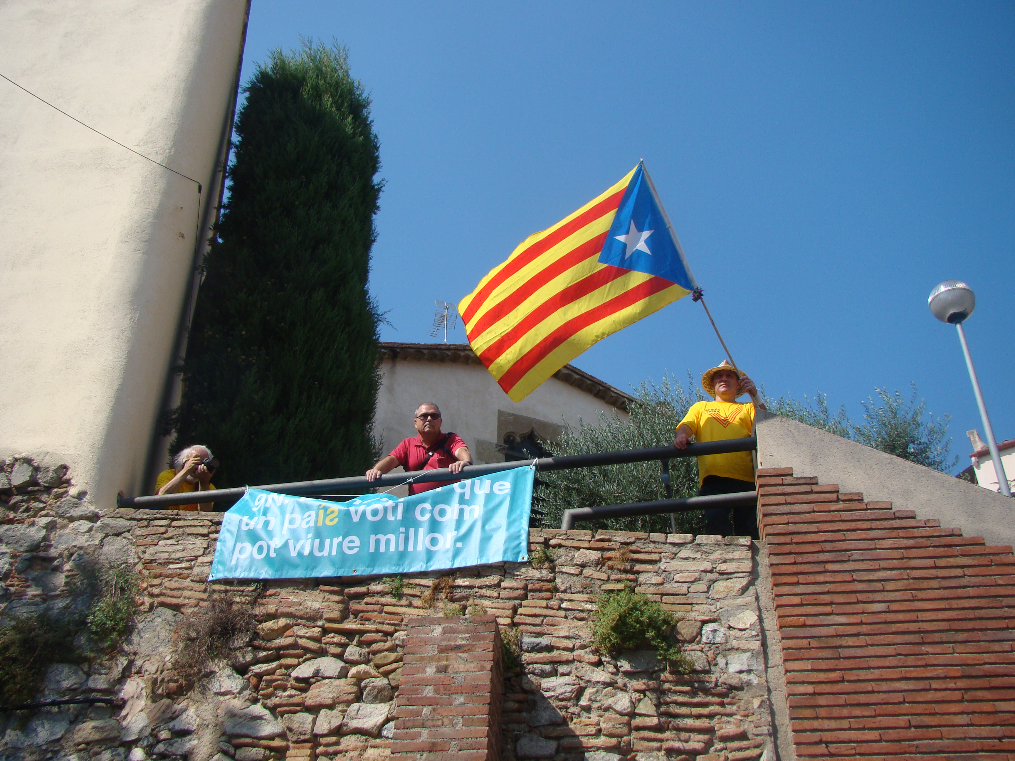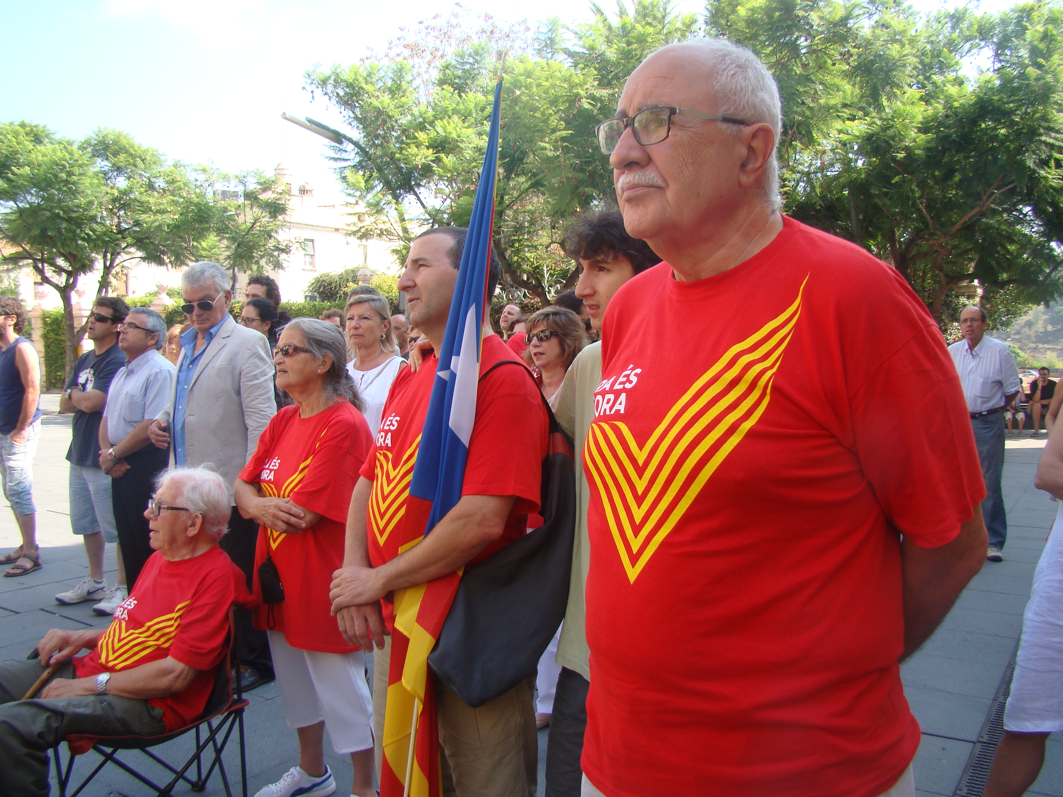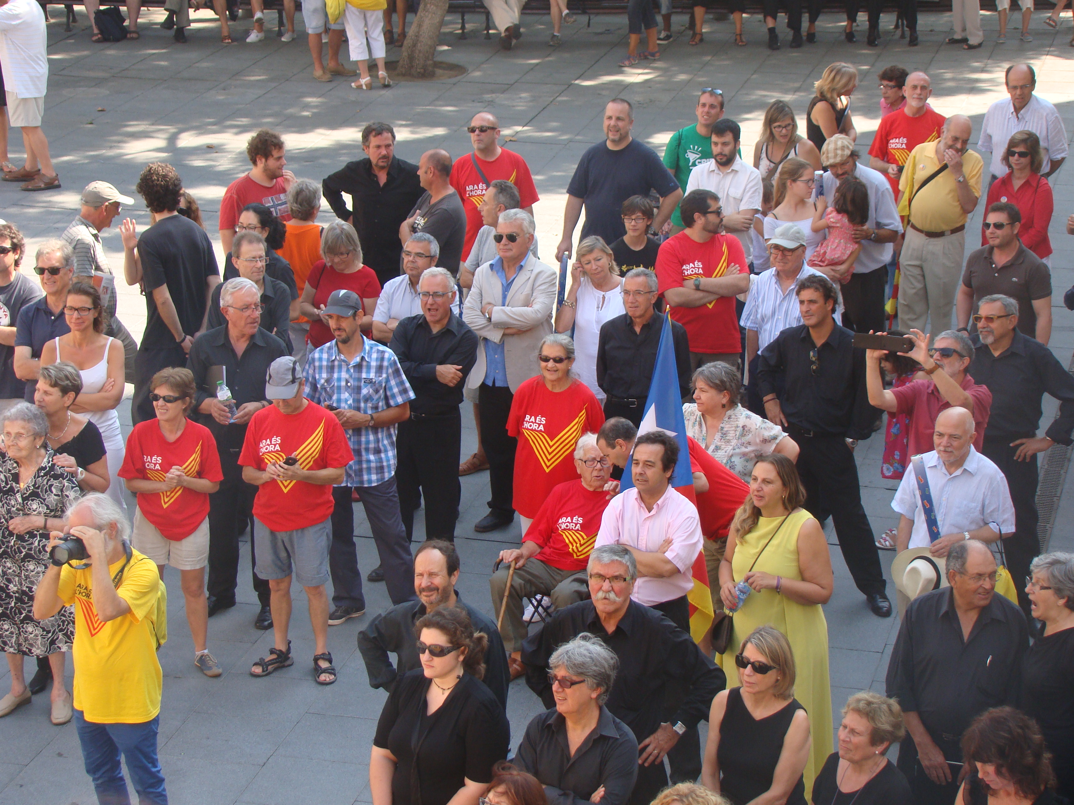 En aquesta trobada, a banda de les estelades i els crits de “Visca Catalunya Lliure” també s’han pogut veure samarretes de la “V”, la “Via Catalana” d’enguany.