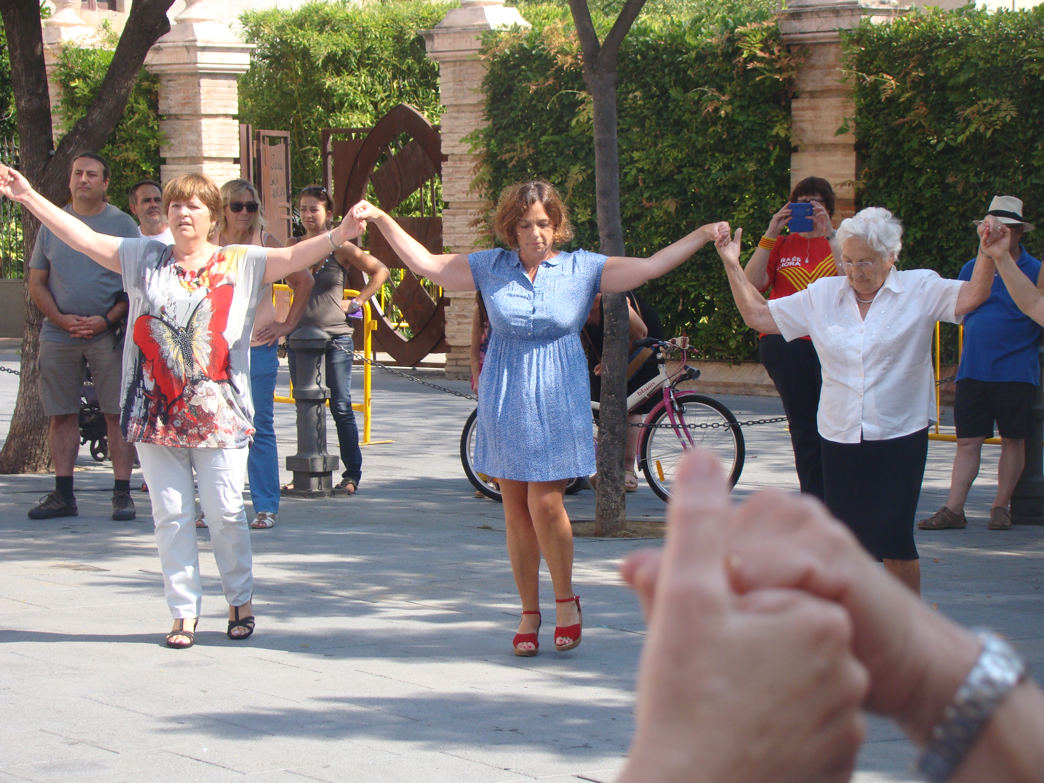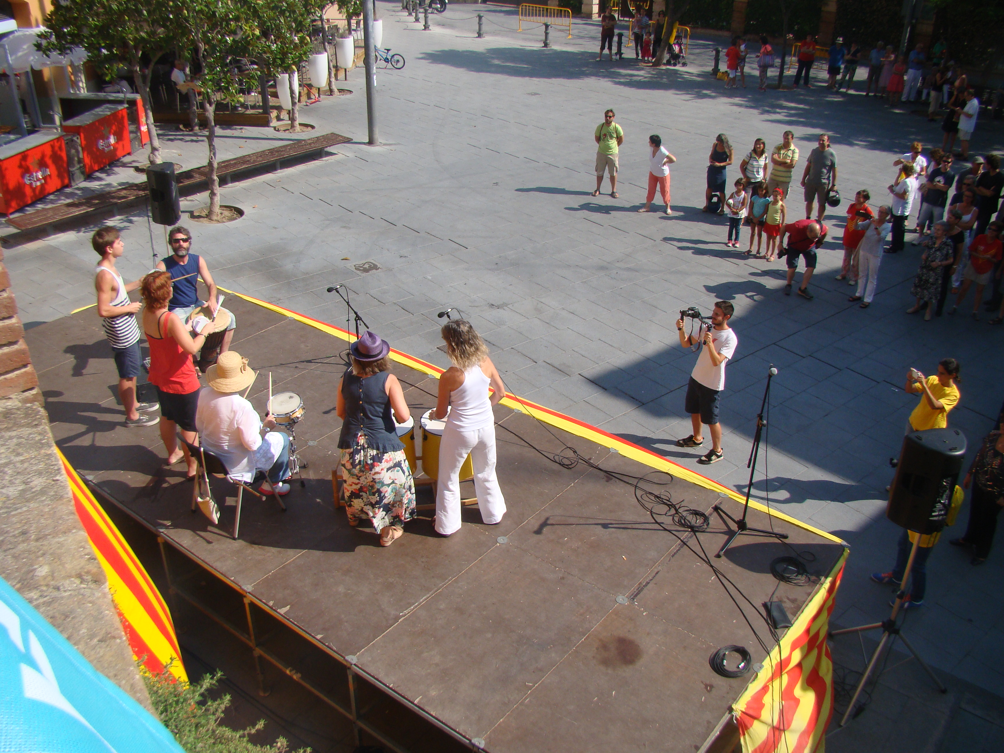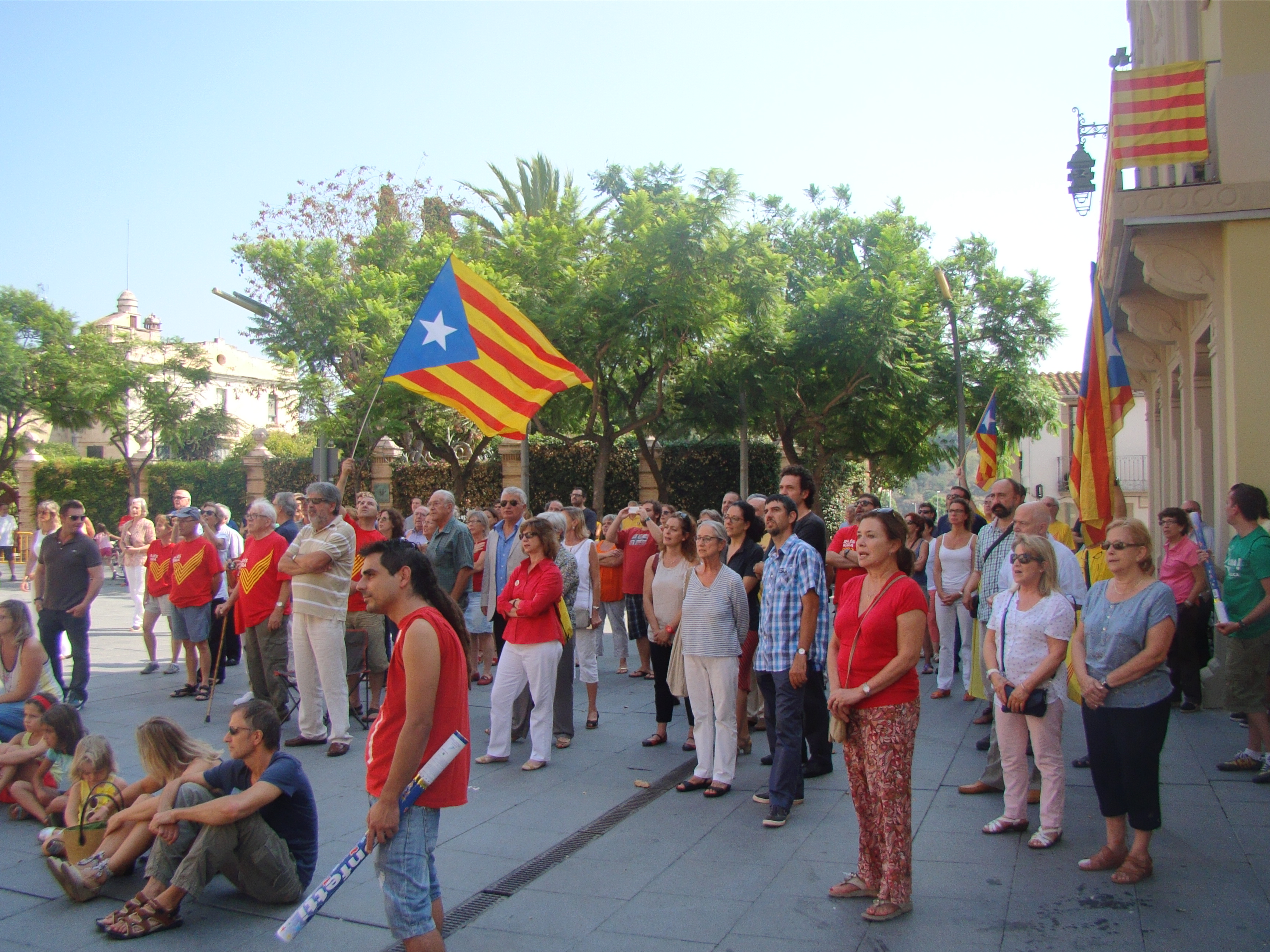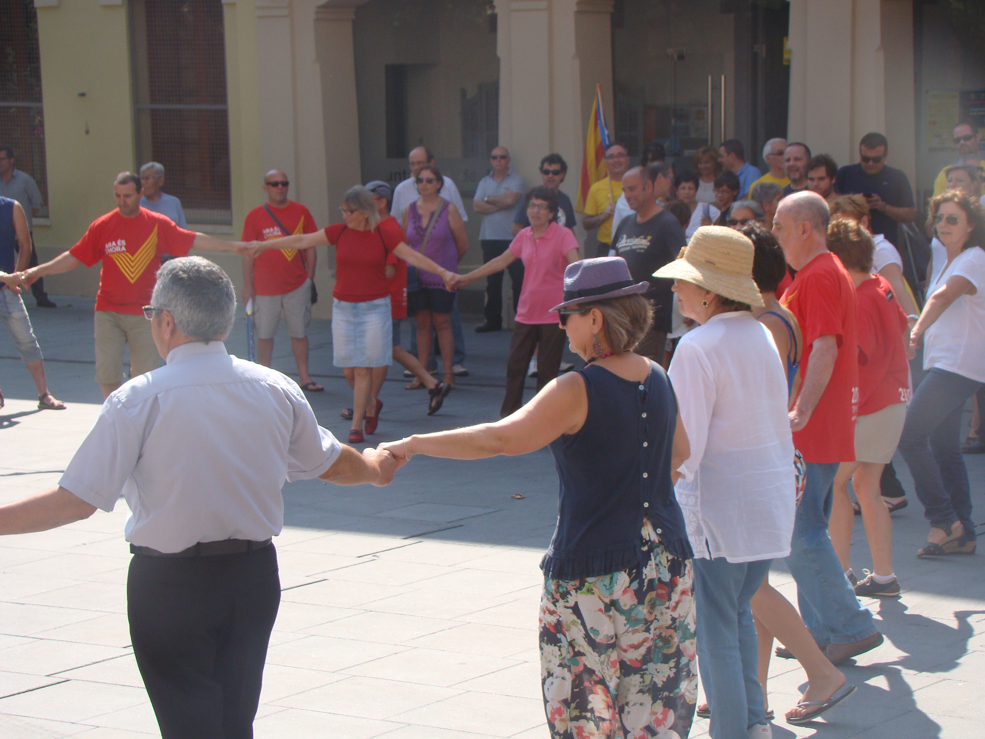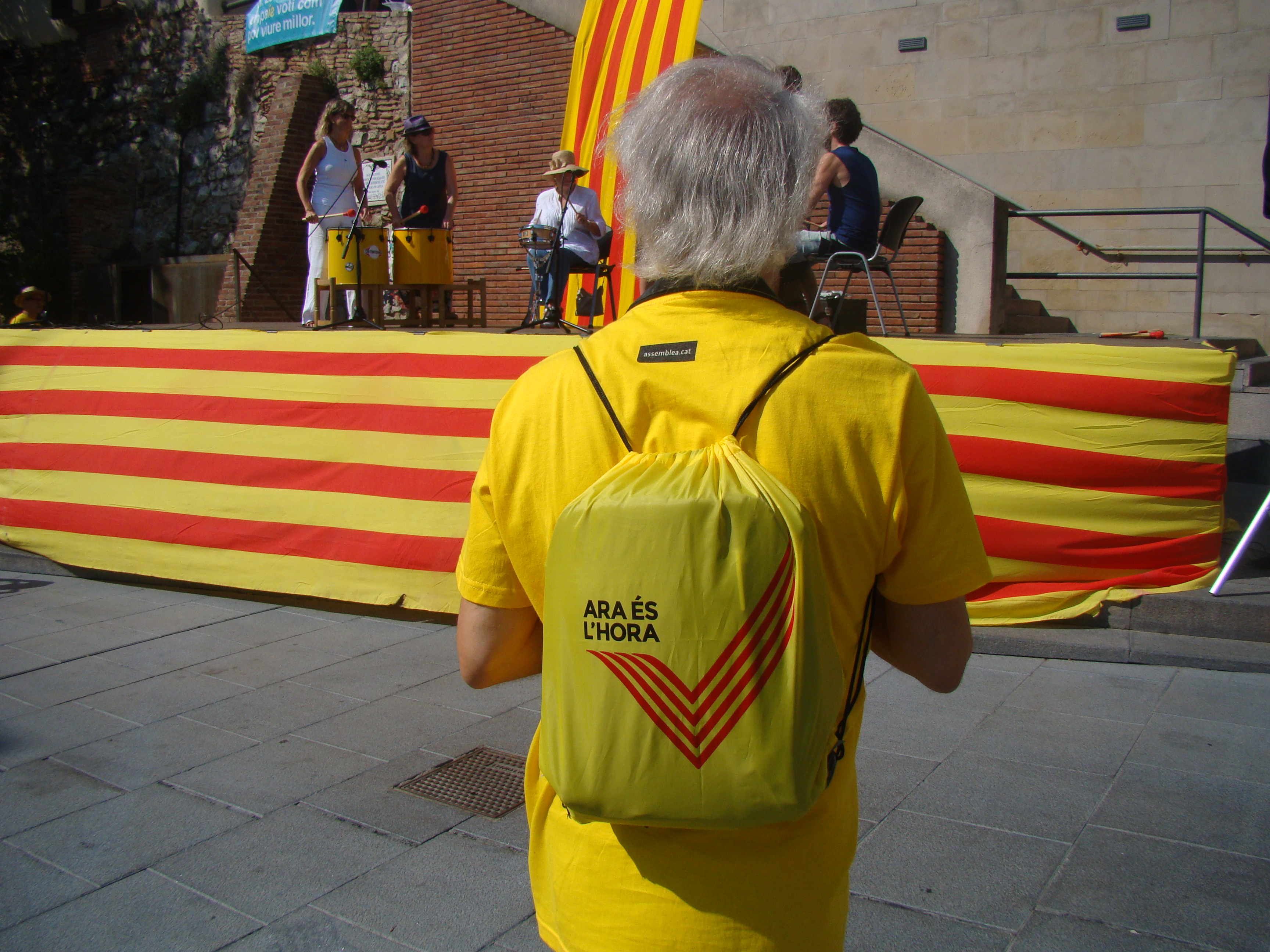 En aquesta trobada, a banda de les estelades i els crits de “Visca Catalunya Lliure” també s’han pogut veure samarretes de la “V”, la “Via Catalana” d’enguany.