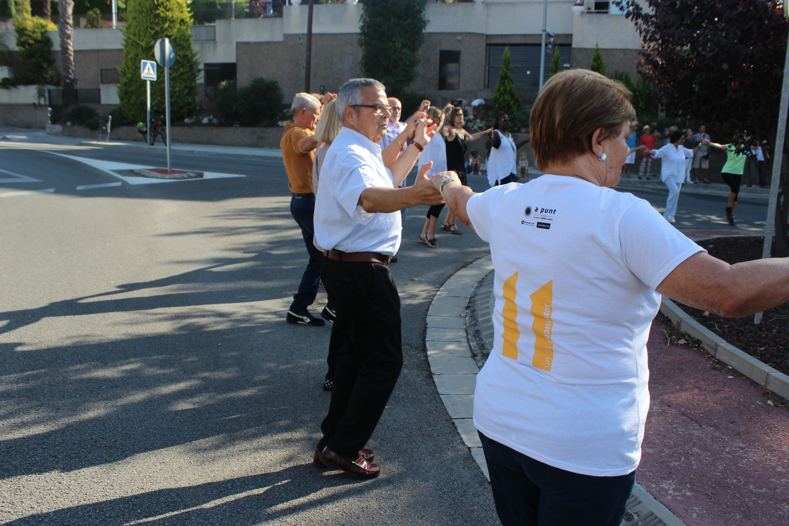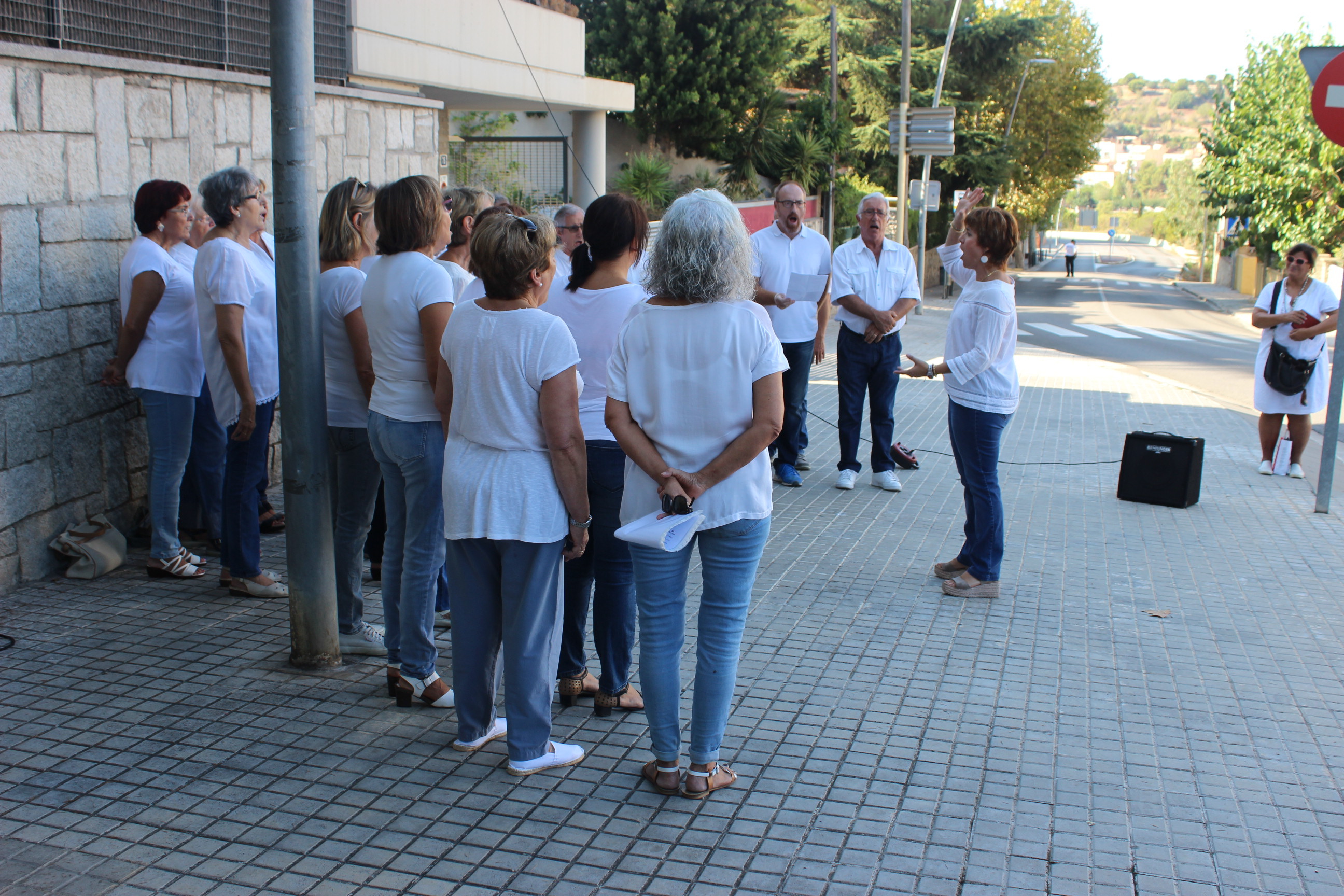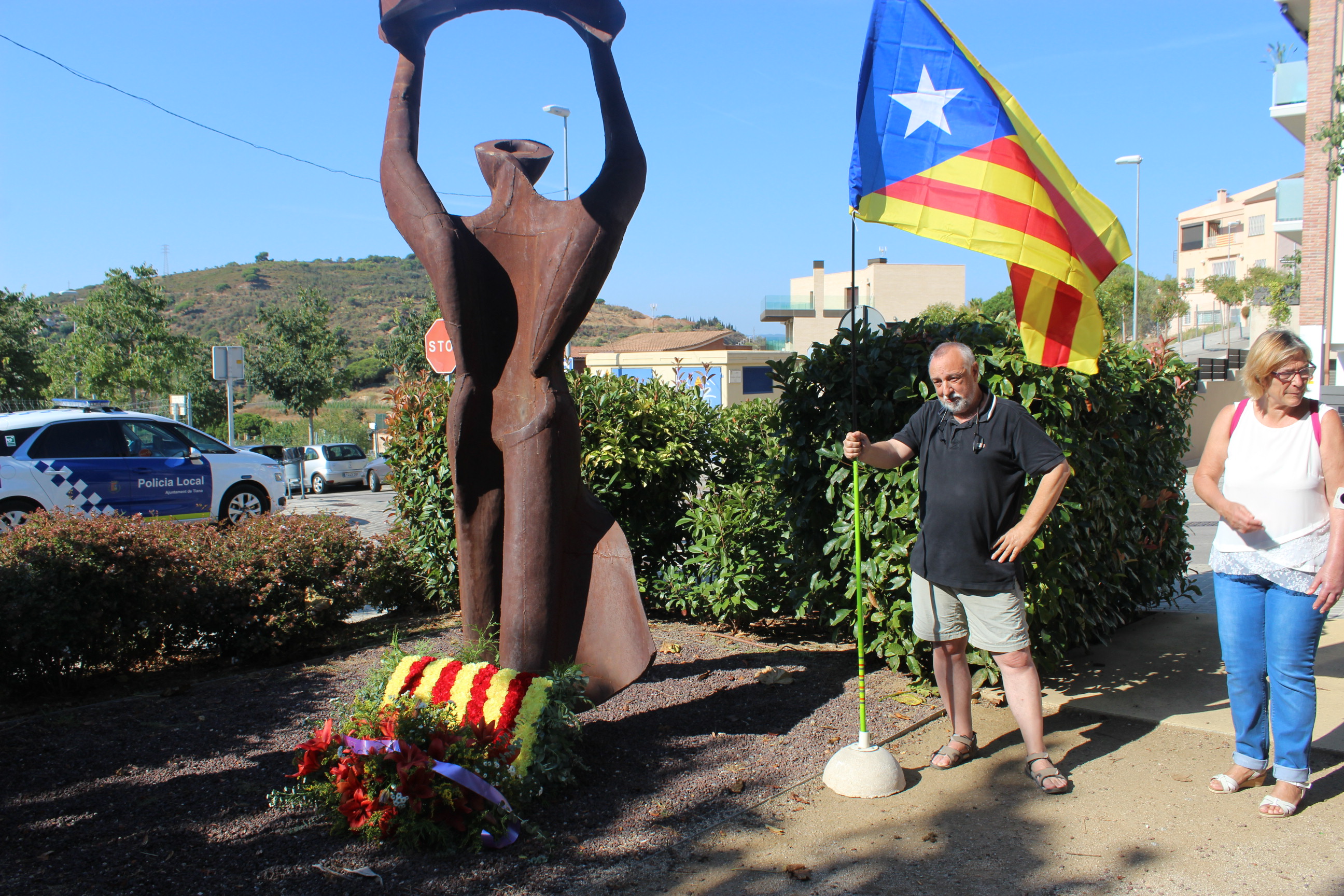 La celebració de la Diada a Tiana ha començat amb el tradicional esmorzar a la Font del Ronyó. Després, a les 10h ha estat el moment de la hissada de l’estelada a la rotonda del passeig Vilesa, després que la coral interpretés diversos cants. Igual que l’any passat, al voltant de la rotonda s’hi ha fet una ballada de sardanes.