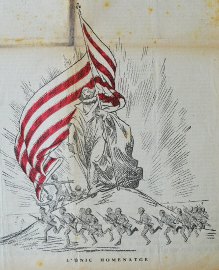 Aprofitant que venia a Tiana, Falguera va utilitzar els primers minuts de la presentació per fer una connexió amb la Lola Anglada de principis del segle XX i, especialment, amb les il·lustracions que va fer pel butlletí de Nosaltres Sols! “Anglada era feminista, revolucionària i independentista. És la nostra Angela Davis”, diu: