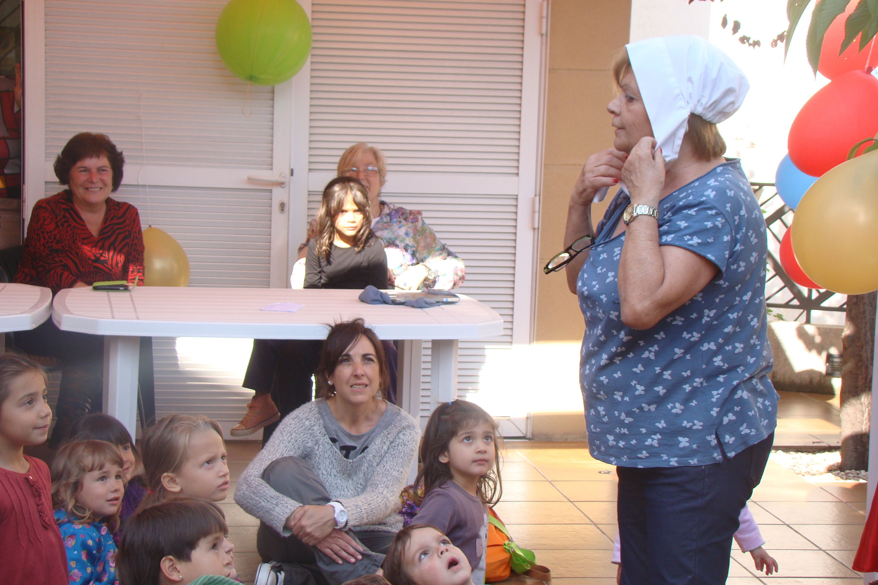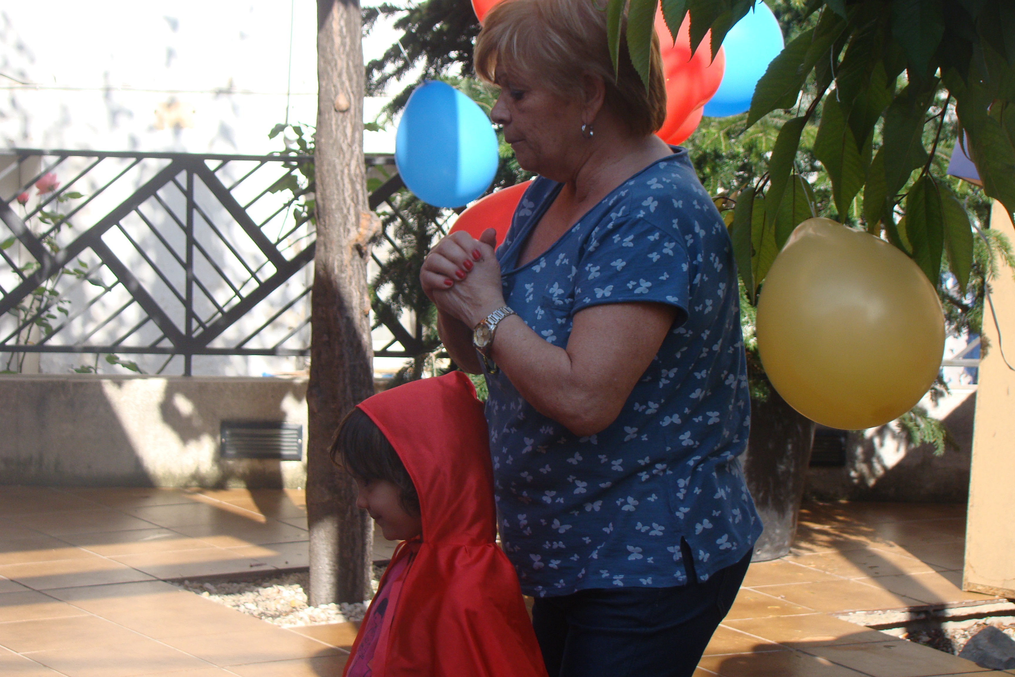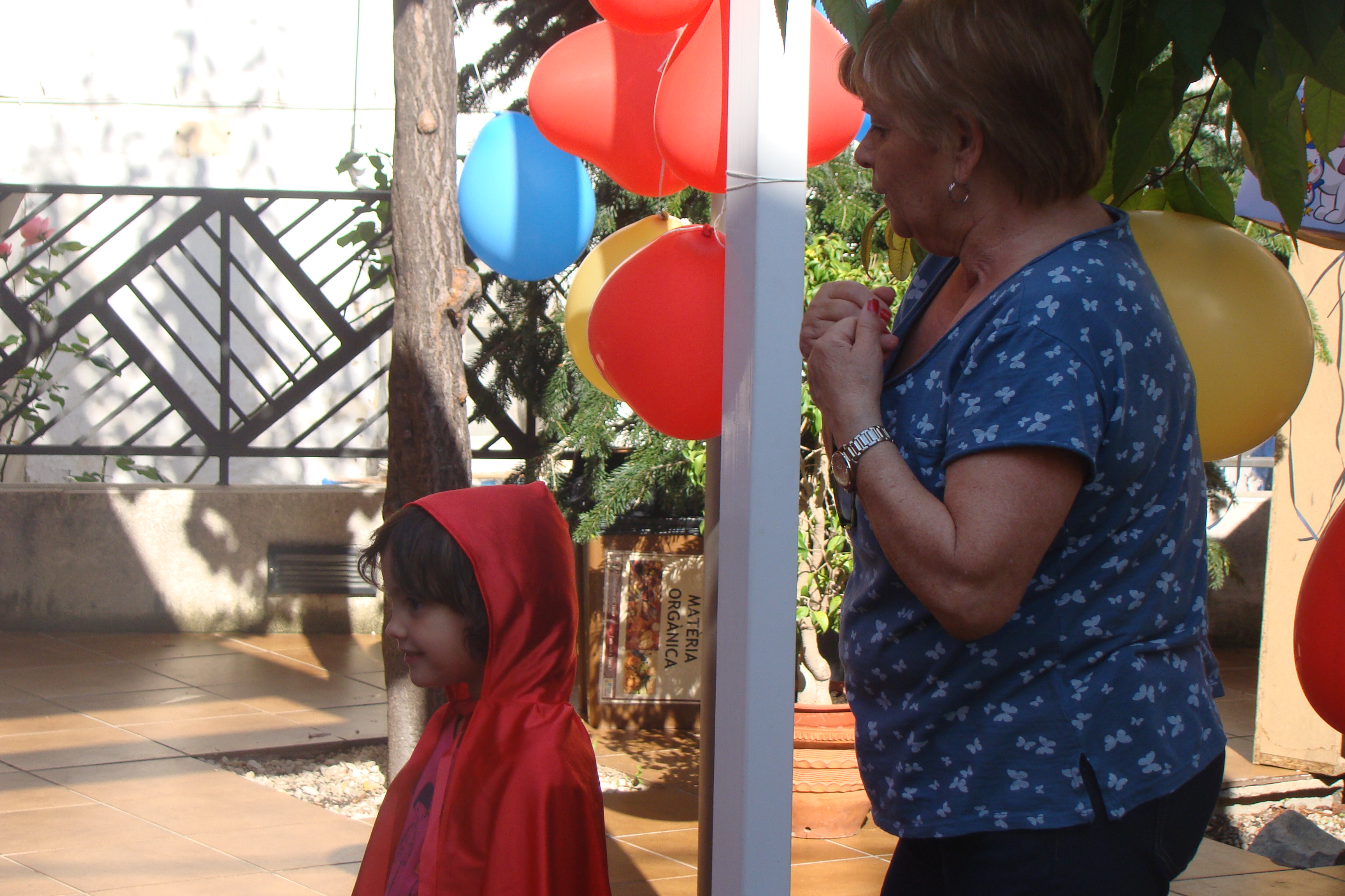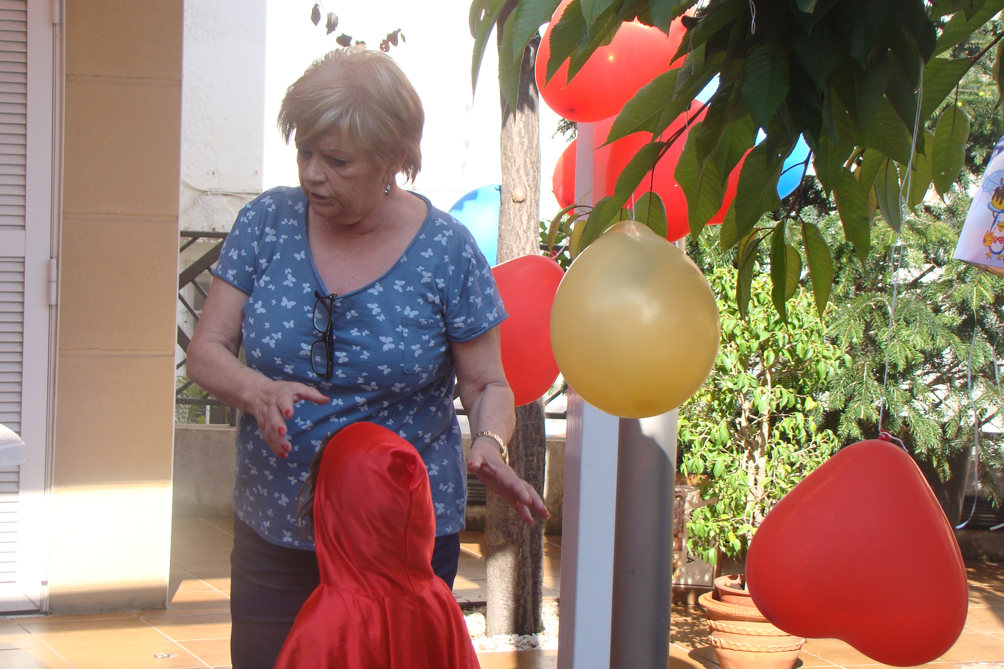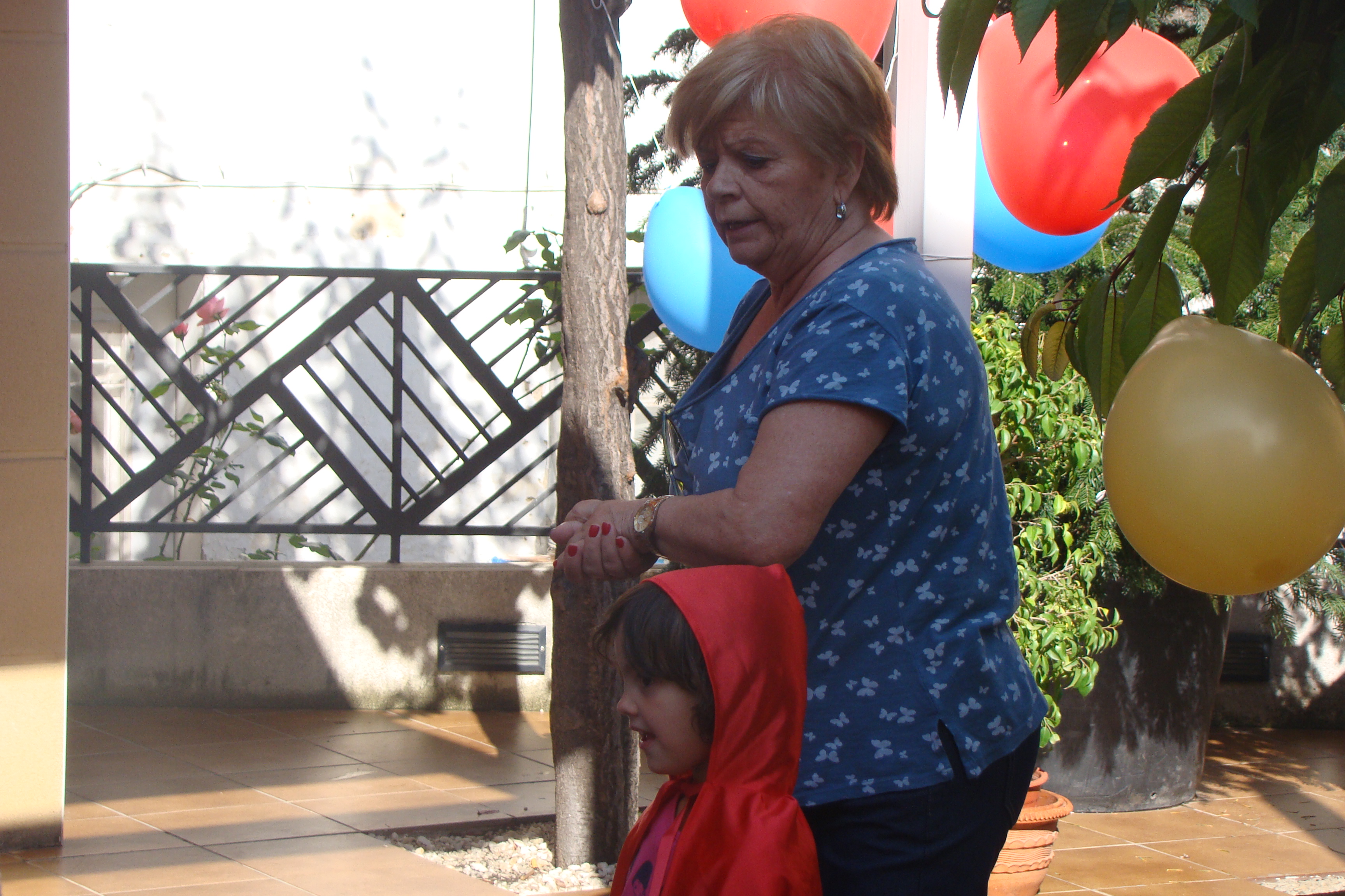Per explicar el conte, la Carme ha preparat una escenificació senzilla i ha utilitzat diferents disfresses. Precisament, aquesta manera peculiar i divertida d’explicar els contes que tenen les àvies és el que ha animat a una de les mares, Tania Tomás, a portar la seva filla perquè escoltés la història de La caputxeta vermella.