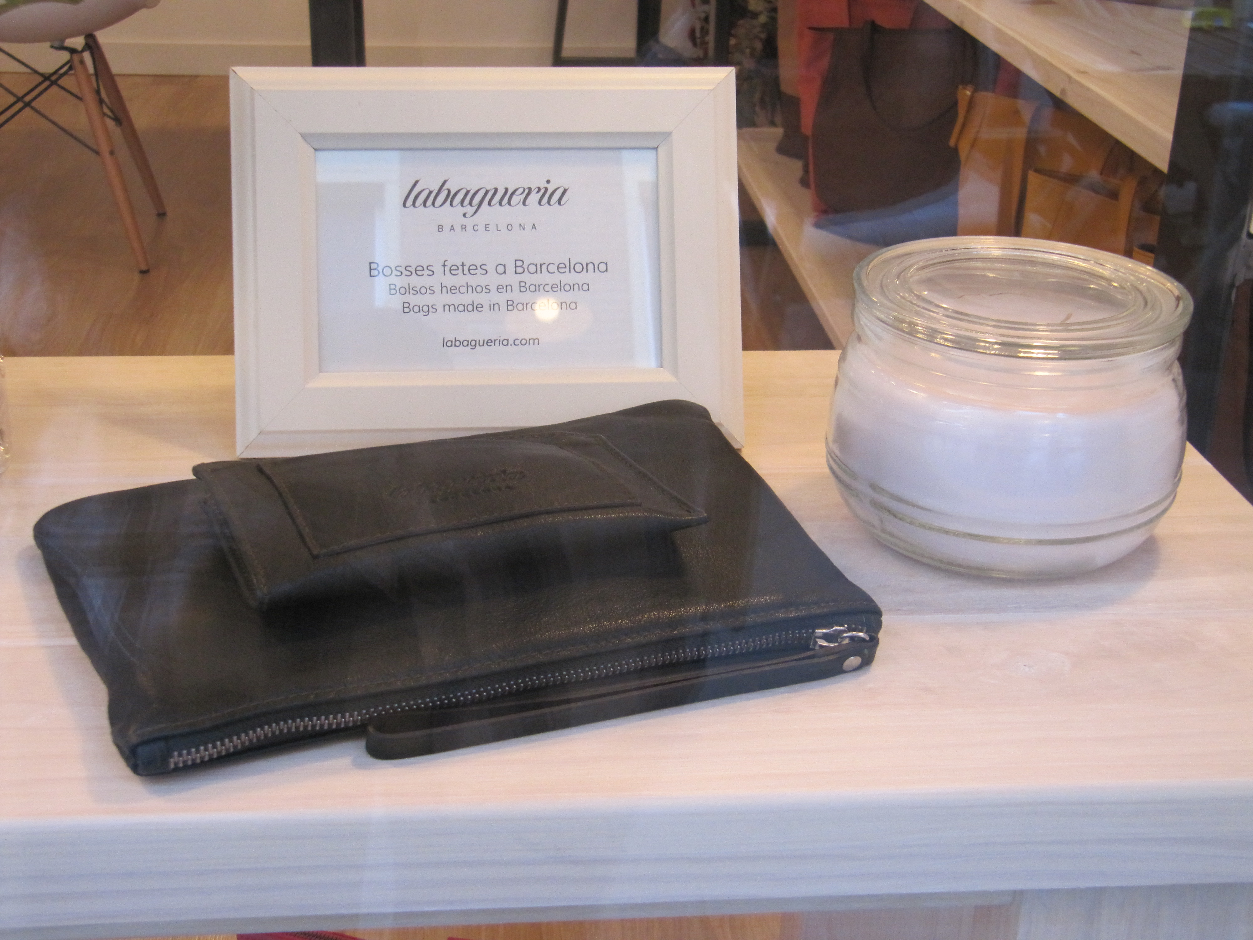 Labagueria s’ha convertit en la primera botiga de bosses de pell del poble. S’hi poden trobar bosses grans, petites, creuades i d’espatlla. A més, també s’hi pot adquirir moneders, necessers i sobres.