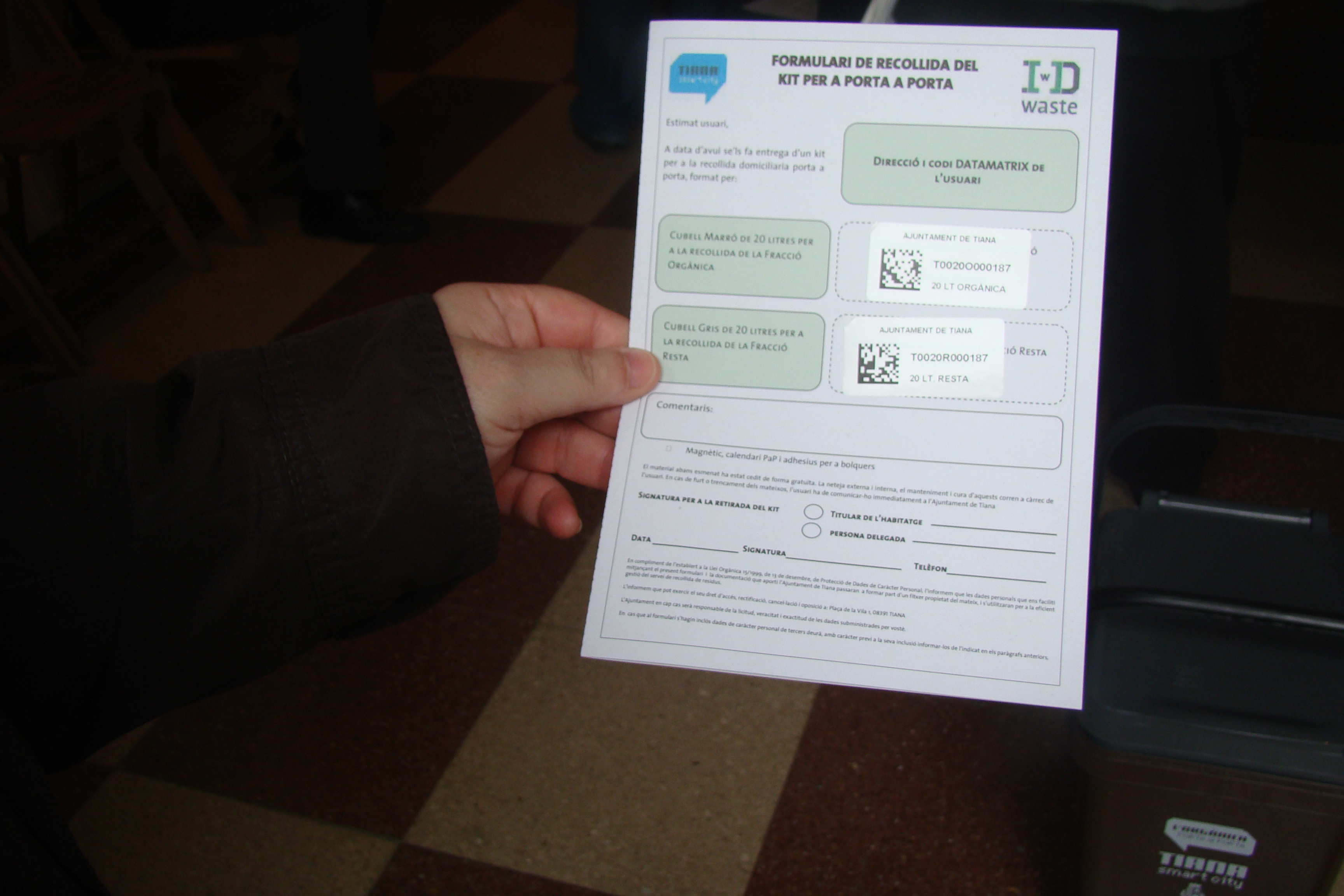 Veïns i veïnes han format cues avui al Casal de Tiana per recollir els nous cubells d’escombraries amb xip identificatiu: el “Marronet”, per la orgànica i el de color gris pel rebuig. A partir del proper 5 de juny, es deixaran de recollir els residus que estiguin a altres cubells.