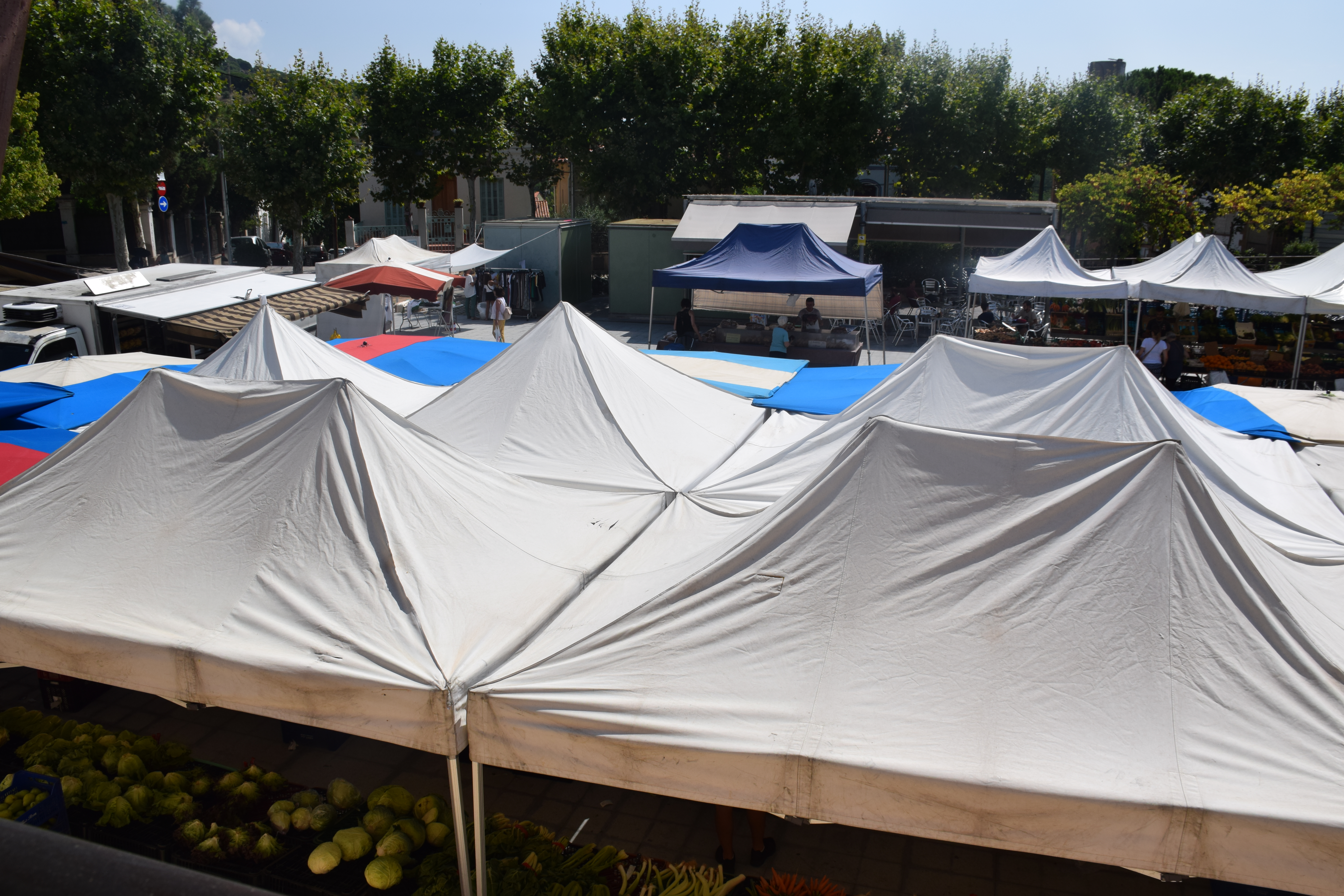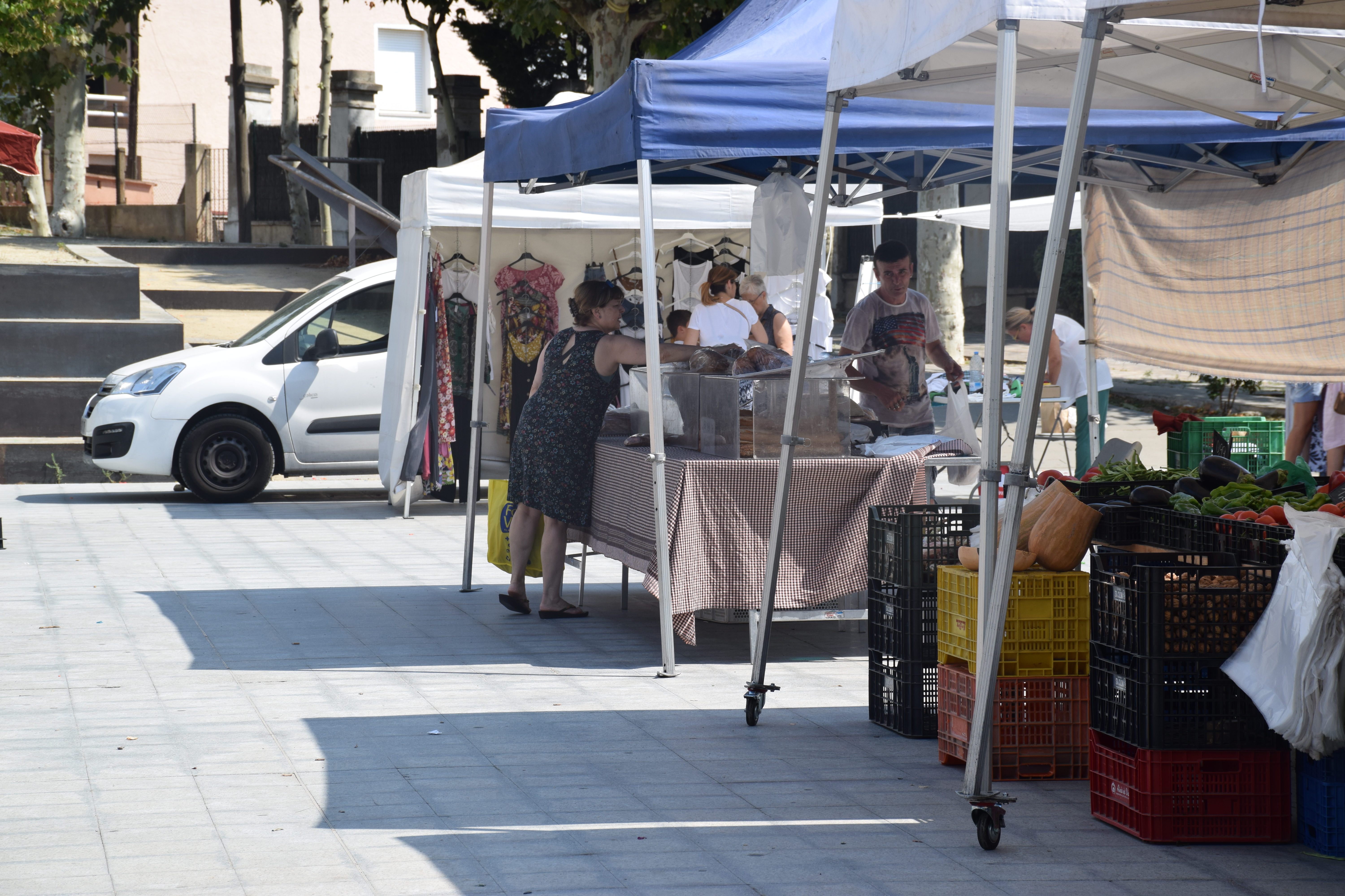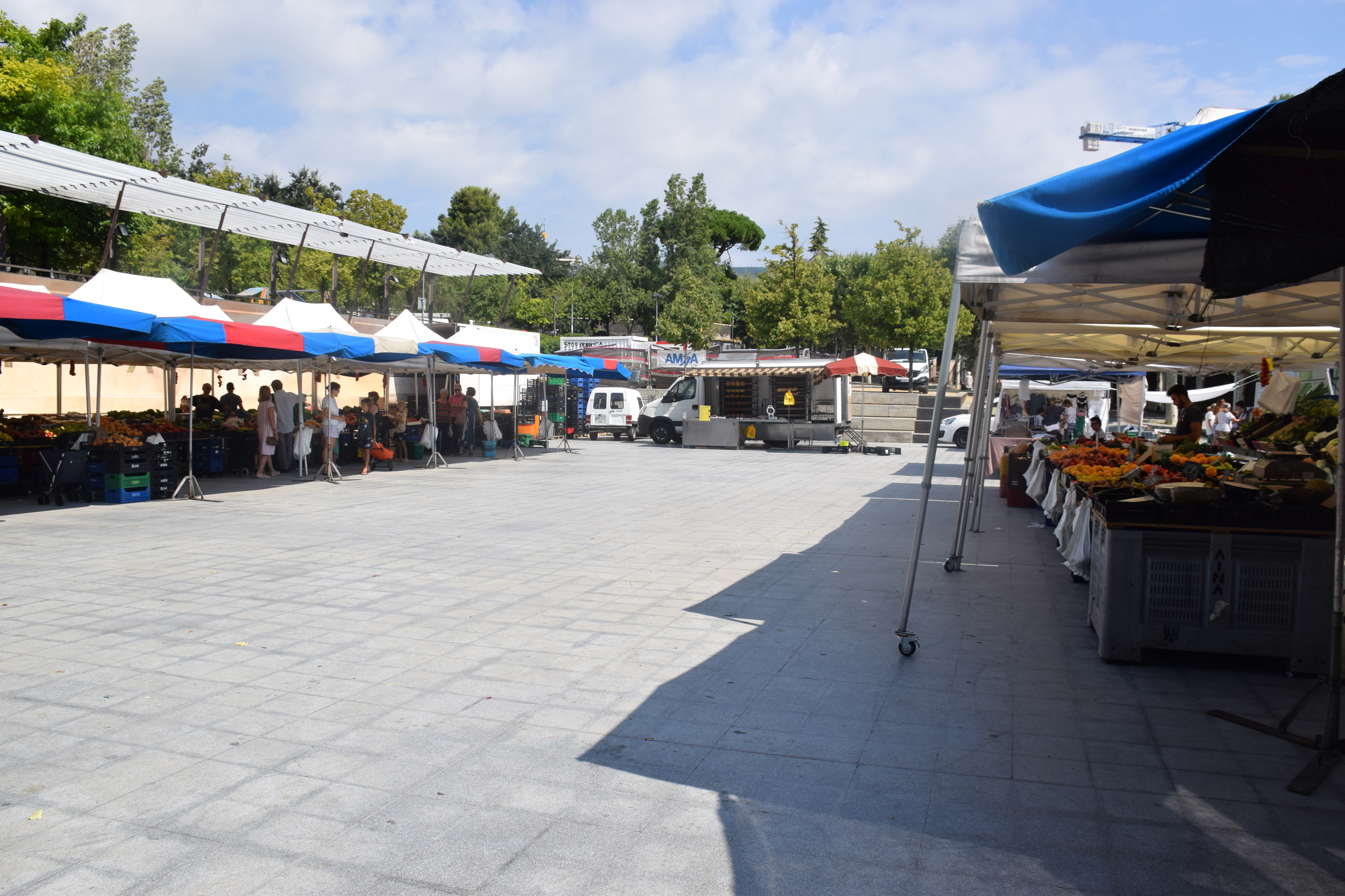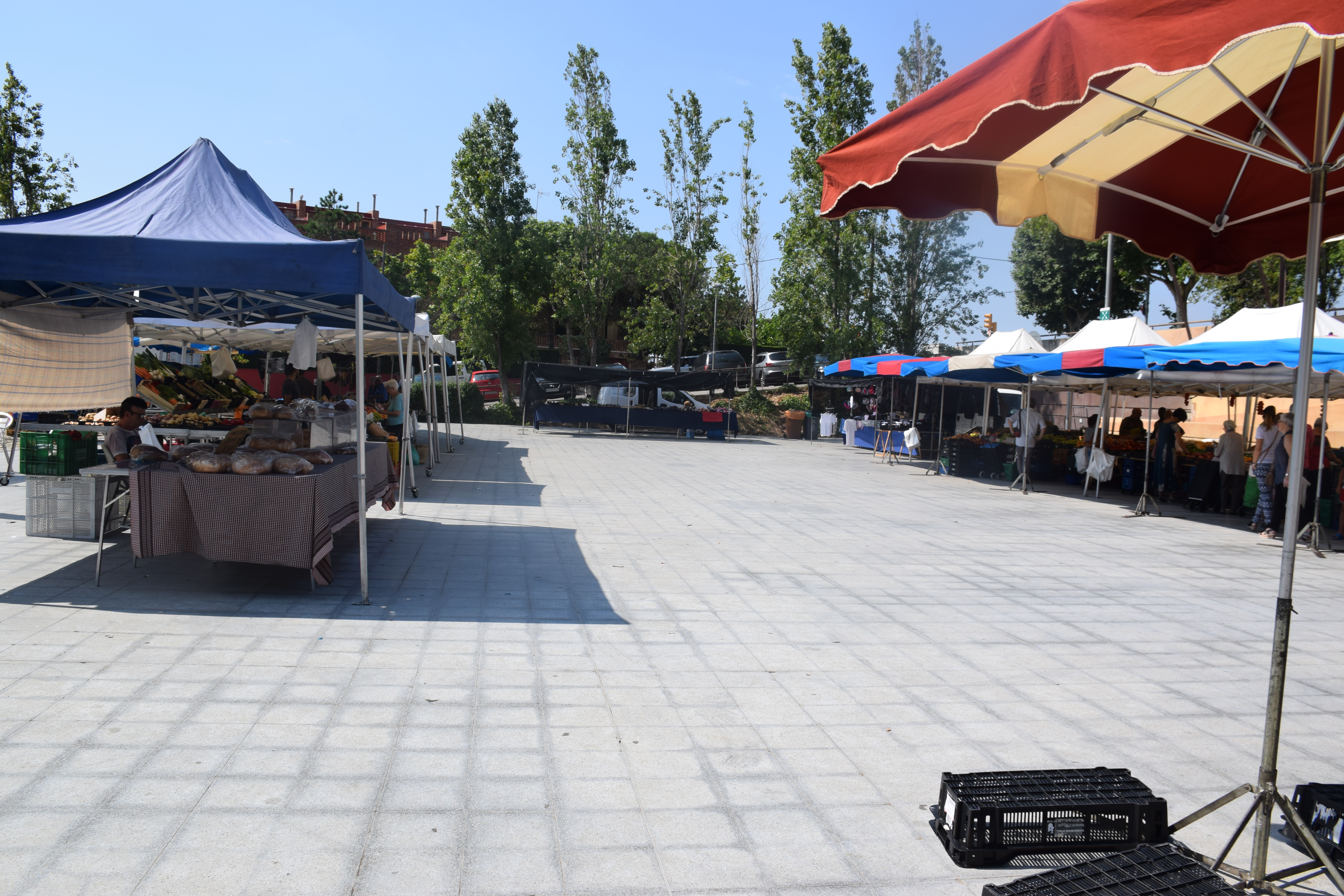 Des de fa aproximadament un mes i mig, si es passeja per la plaça de la Vila un dimarts pel matí ja no es troben les paradetes del mercat setmanal. Degut a les obres del carrer Matas, s’ha traslladat provisionalment més a baix: al parc de l’Antic Camp de Futbol.