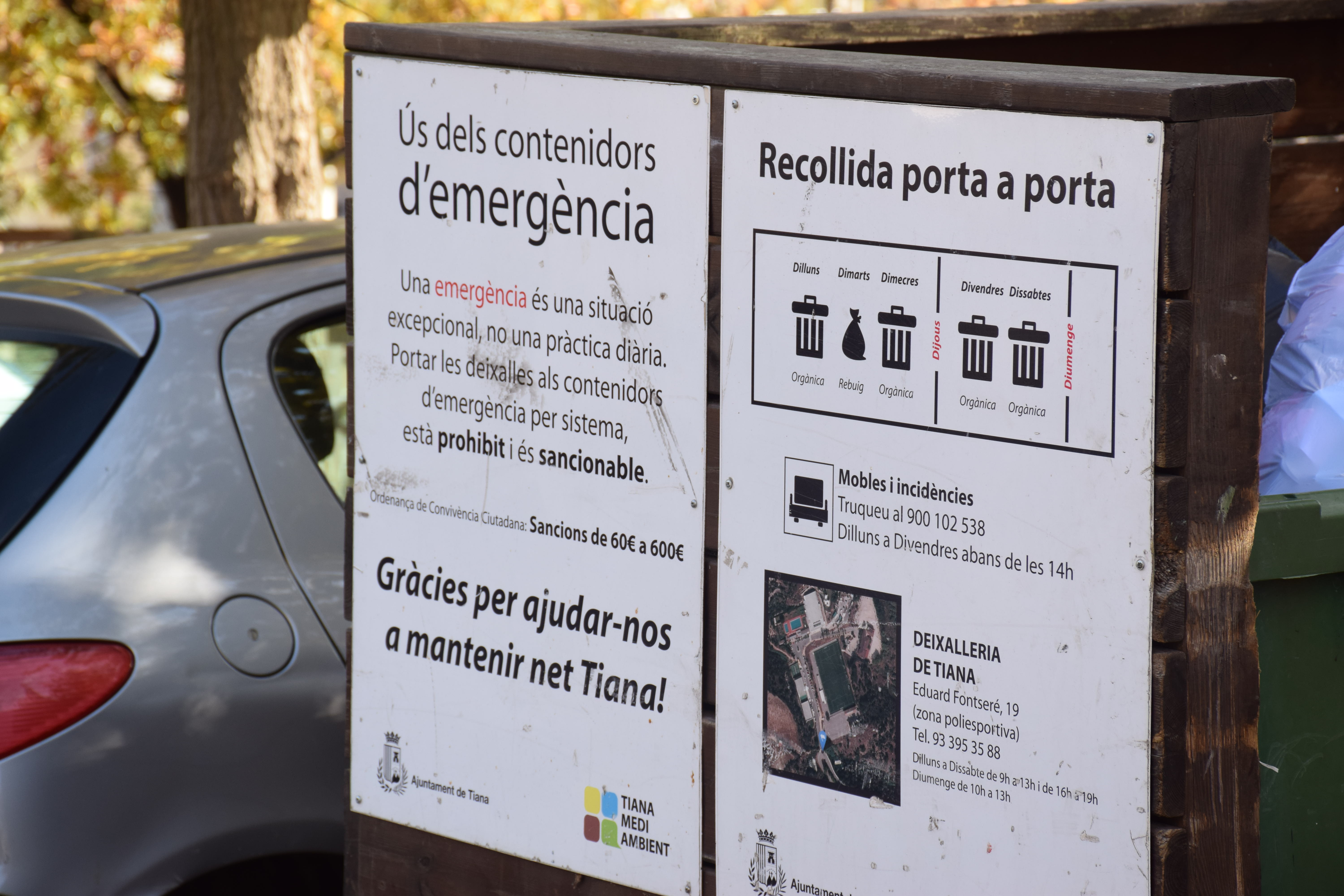 El 2018 serà l’any en què deixin d’existir a Tiana els actuals contenidors d’emergència. Això és, almenys, el que té previst la regidoria de Medi Ambient. I és que, tal com ja han denunciat diverses vegades, una part dels habitants de la vila no n’està fent un ús correcte malgrat que han explicat moltes vegades per a què serveixen, diu el regidor de Medi Ambient, Xavier Doñate: