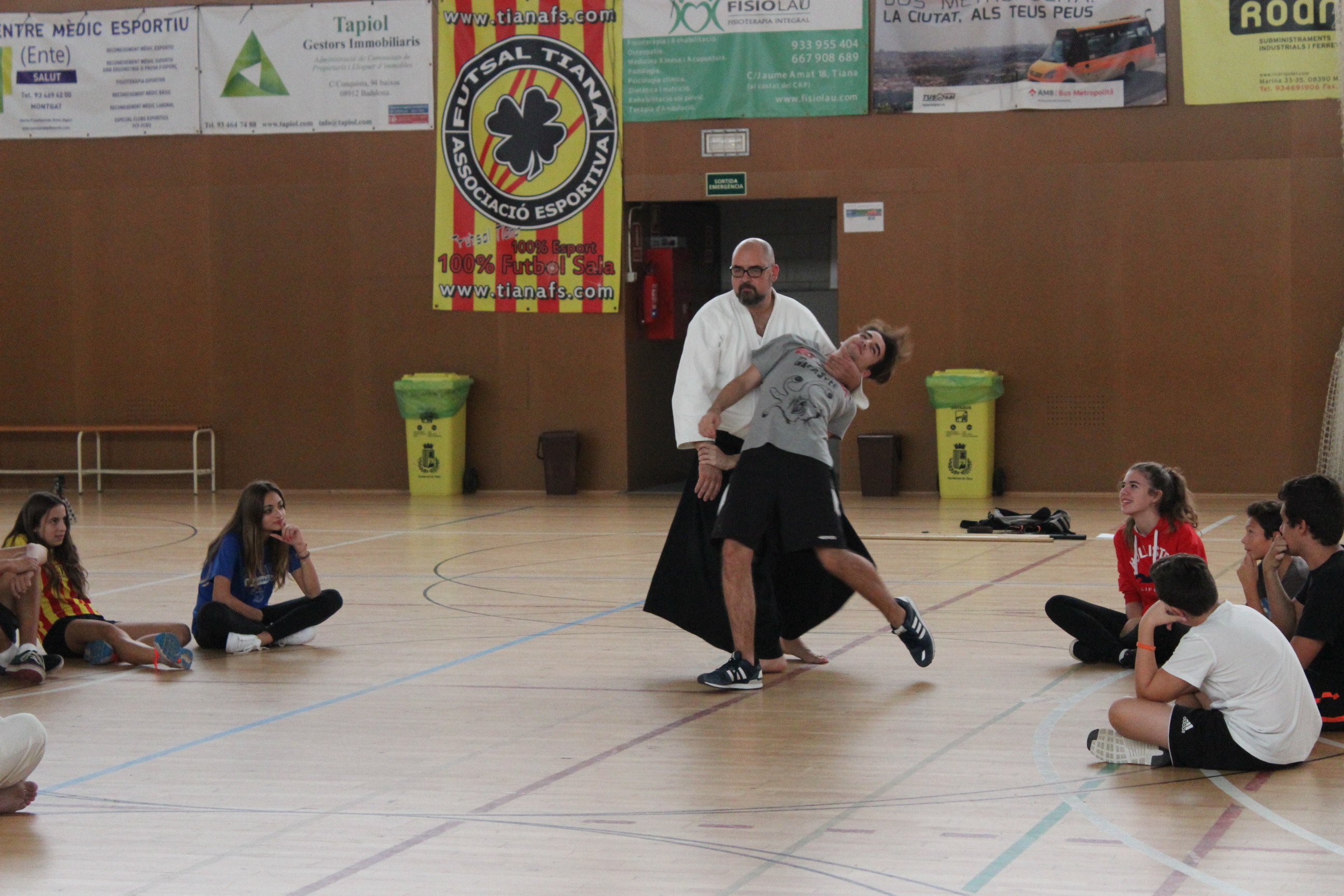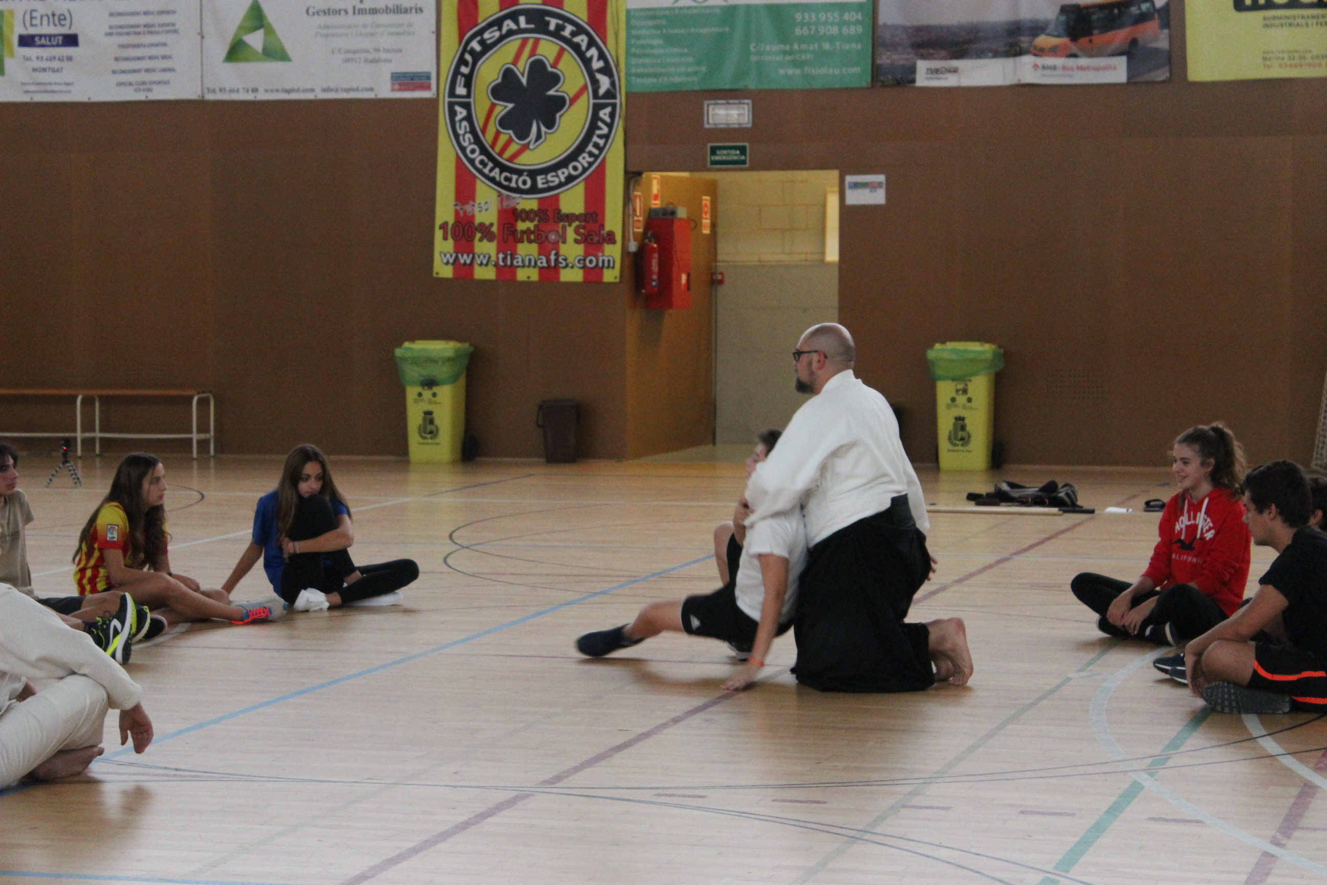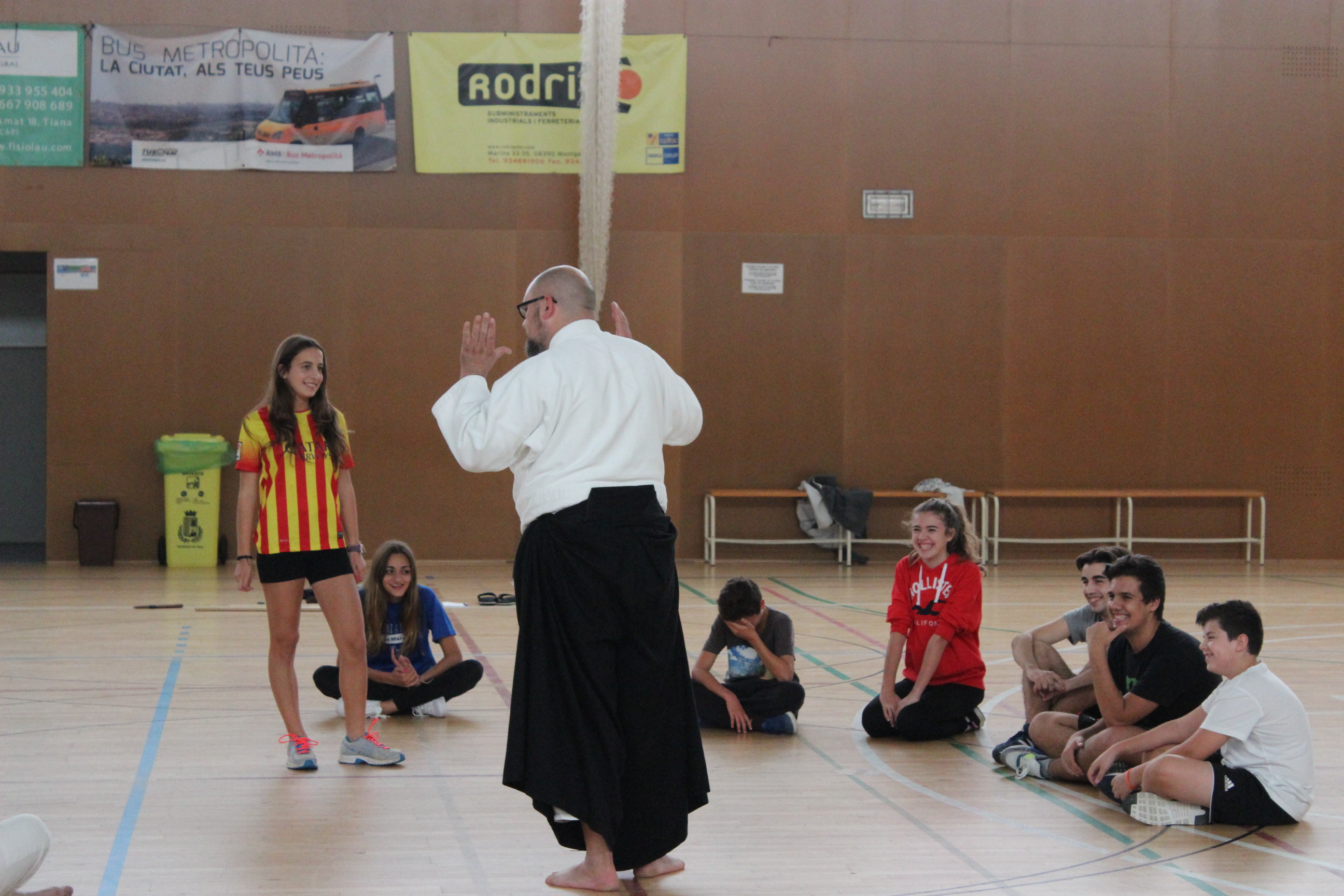Els joves de Tiana i Montgat ja han començat a practicar la primera activitat del Club Esport Jove: es tracta de l’aikido, un art marcial que reuneix diverses disciplines. Una desena de participants s’ha estrenat a la primera classe, que s’ha fet aquest dimecres al pavelló poliesportiu de Tiana.