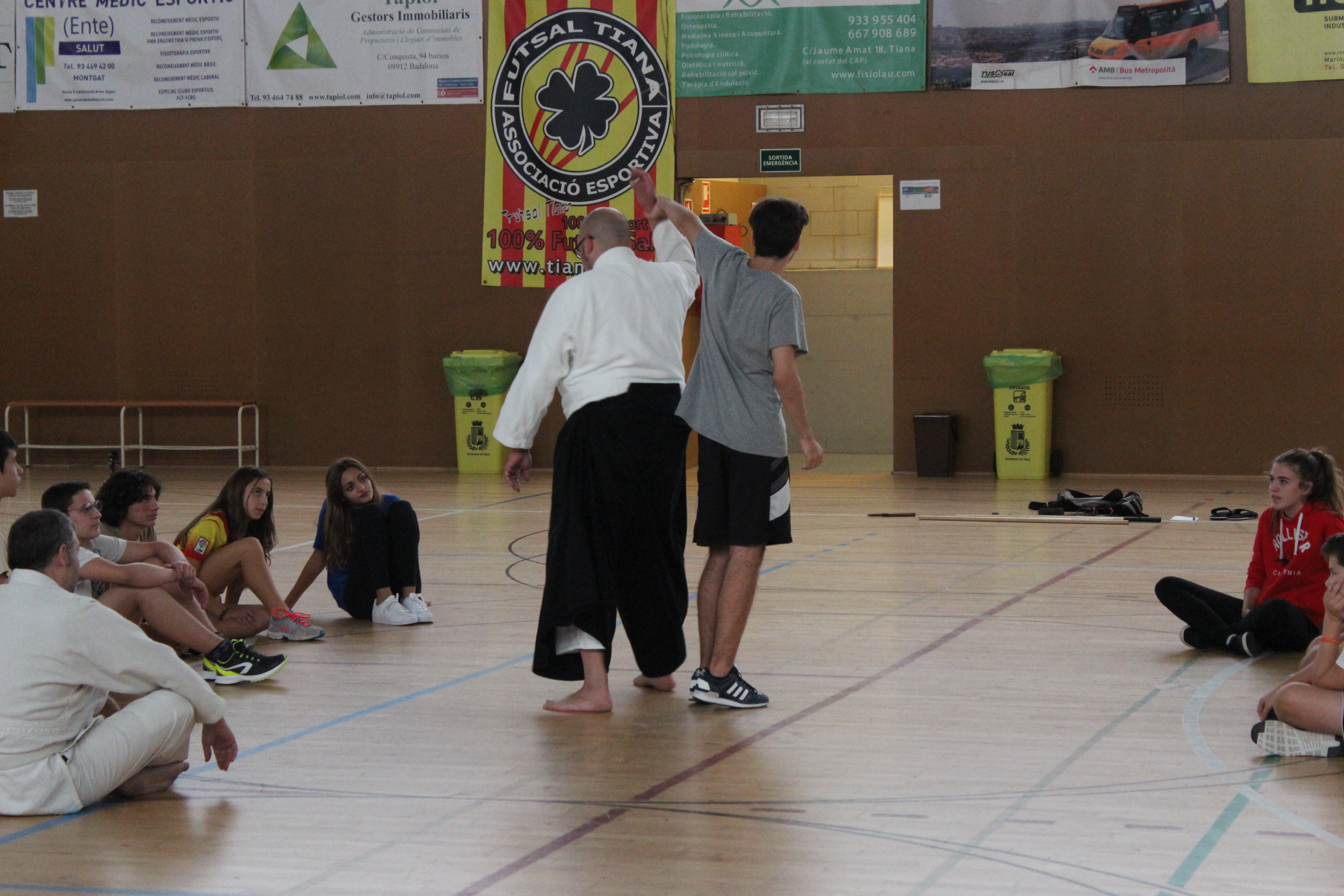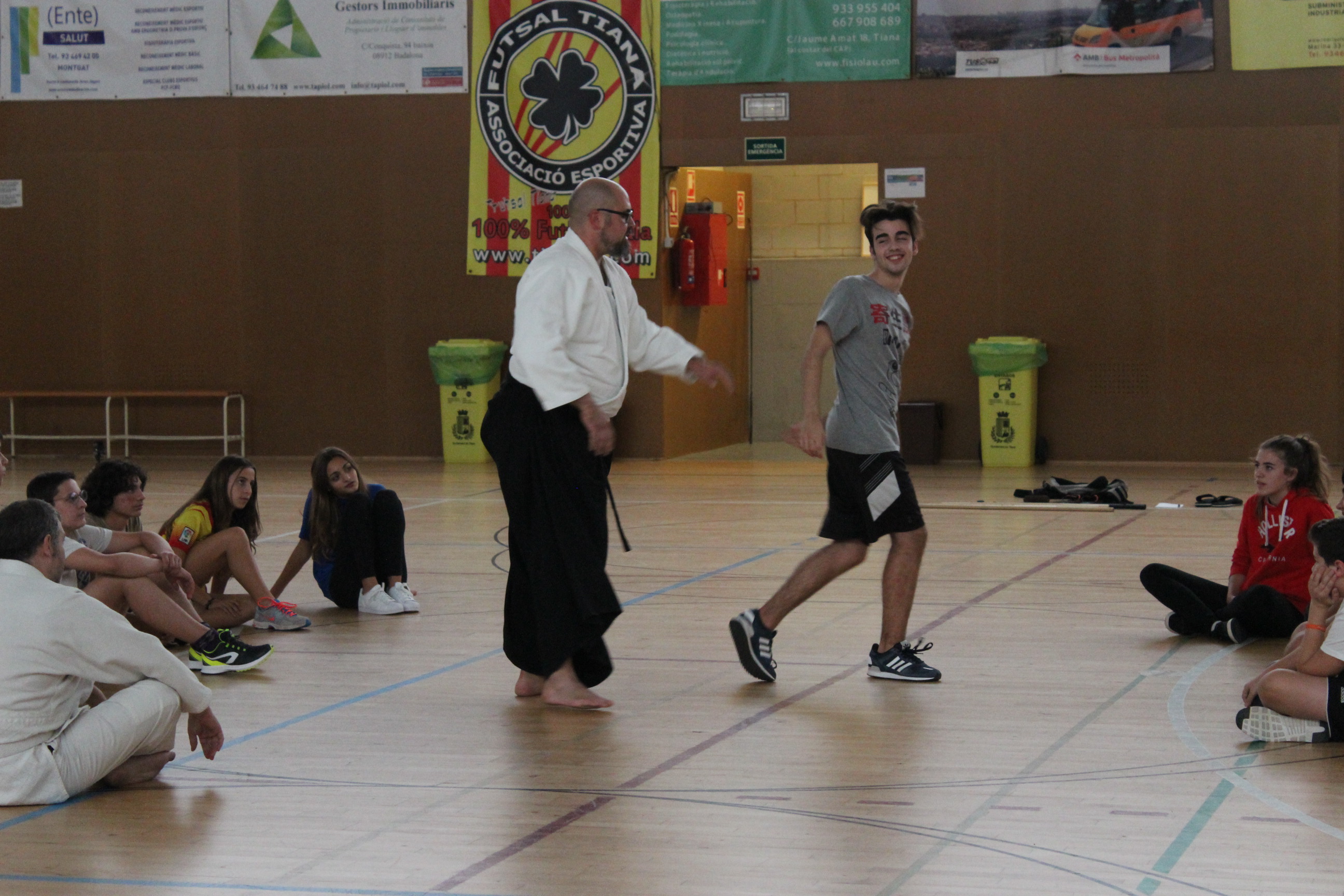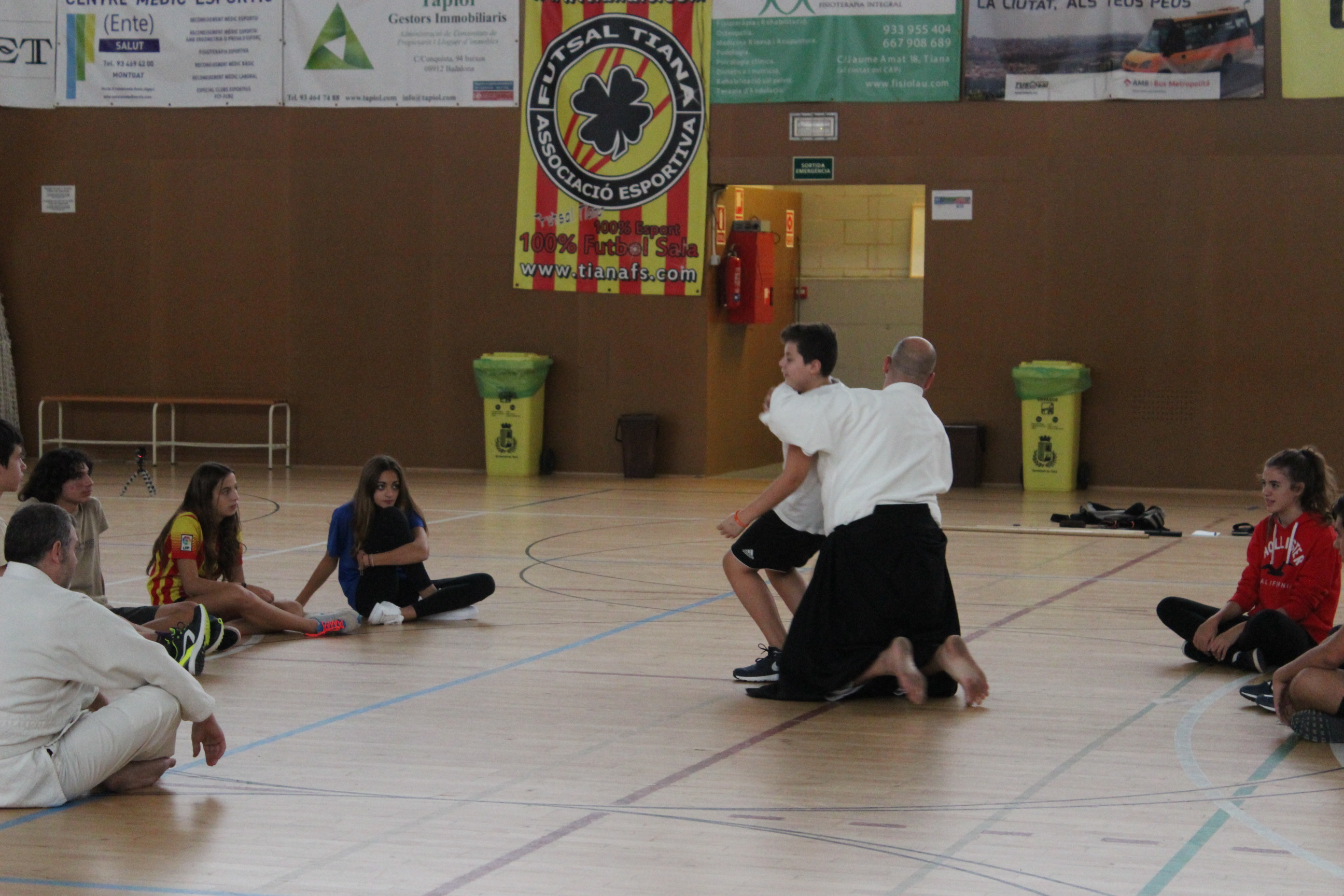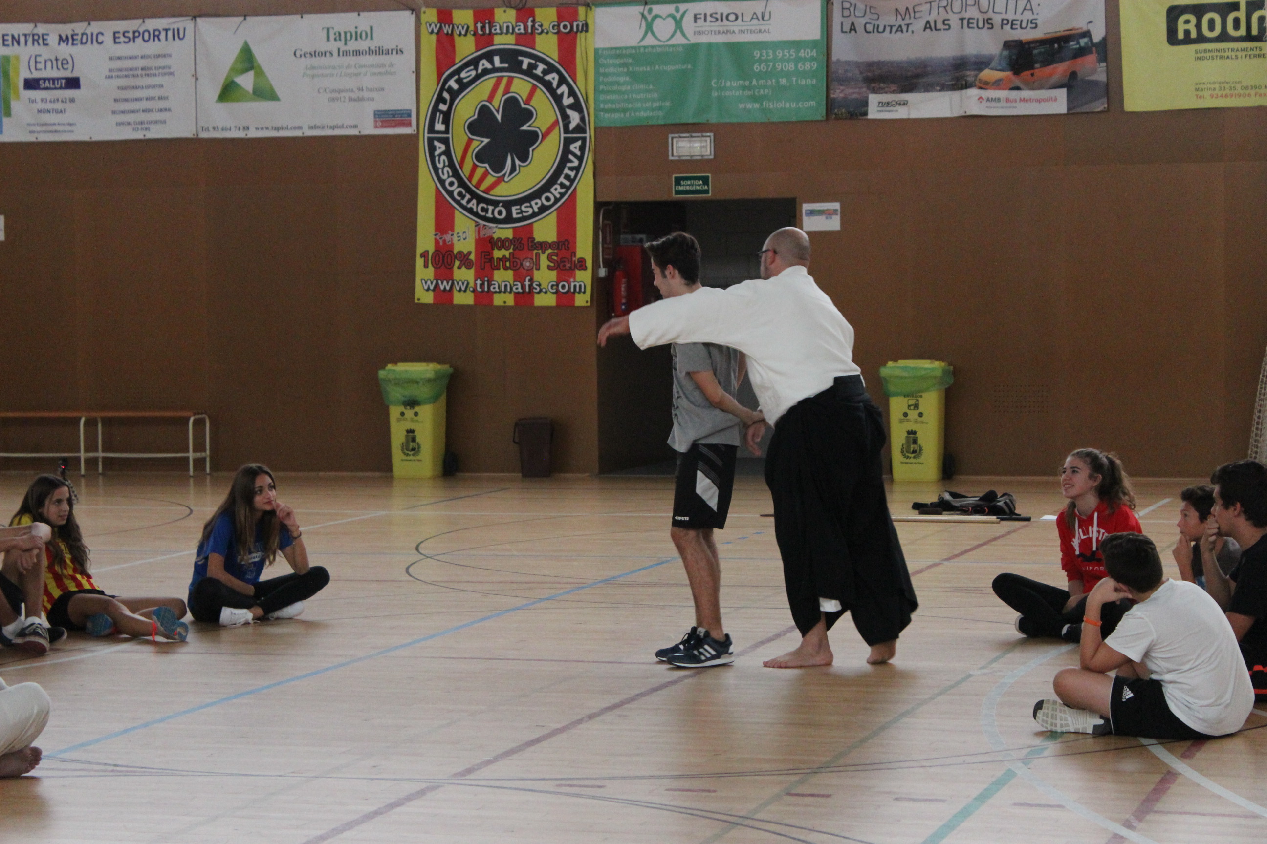 Els joves de Tiana i Montgat ja han començat a practicar la primera activitat del Club Esport Jove: es tracta de l’aikido, un art marcial que reuneix diverses disciplines. Una desena de participants s’ha estrenat a la primera classe, que s’ha fet aquest dimecres al pavelló poliesportiu de Tiana.