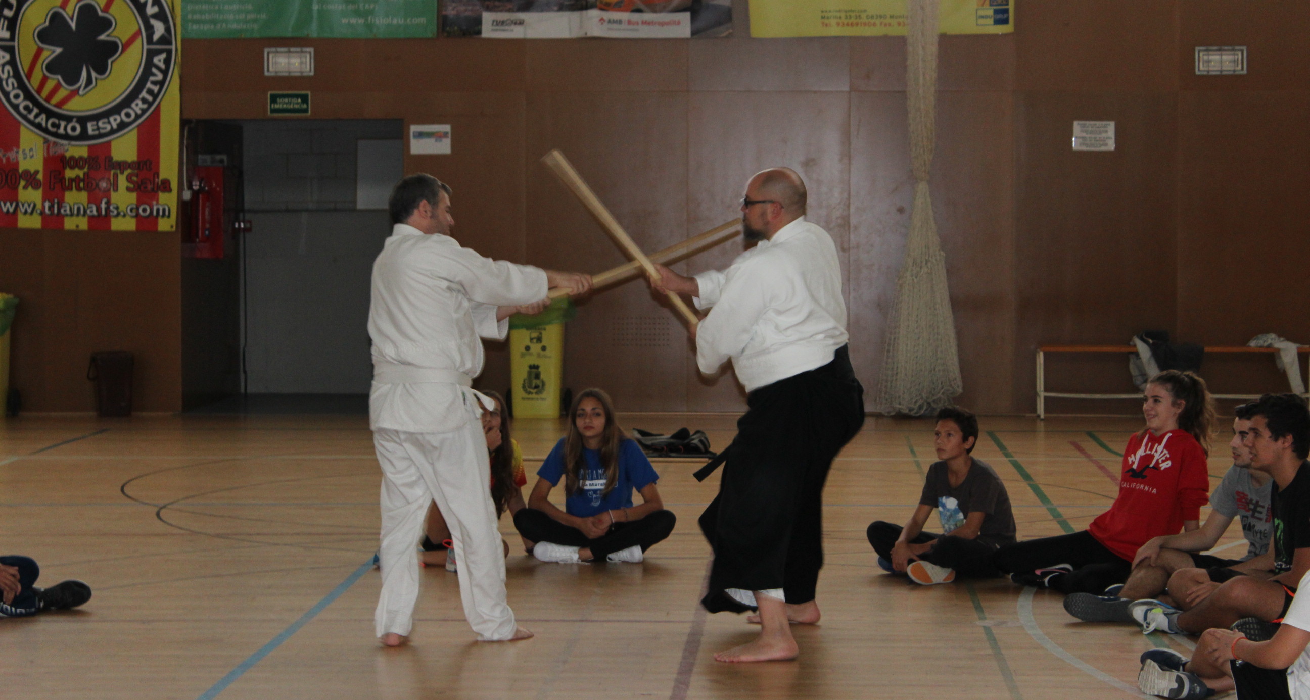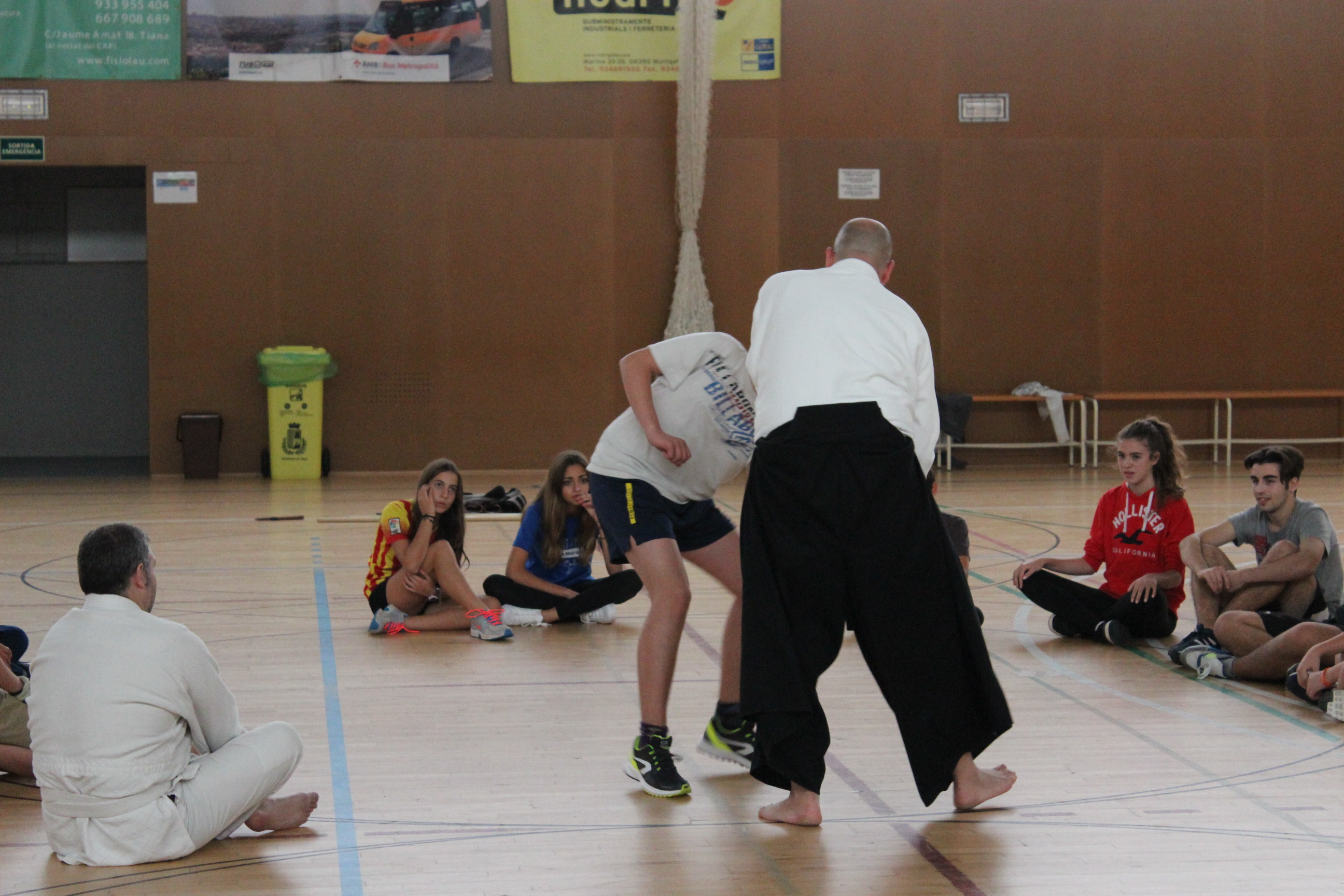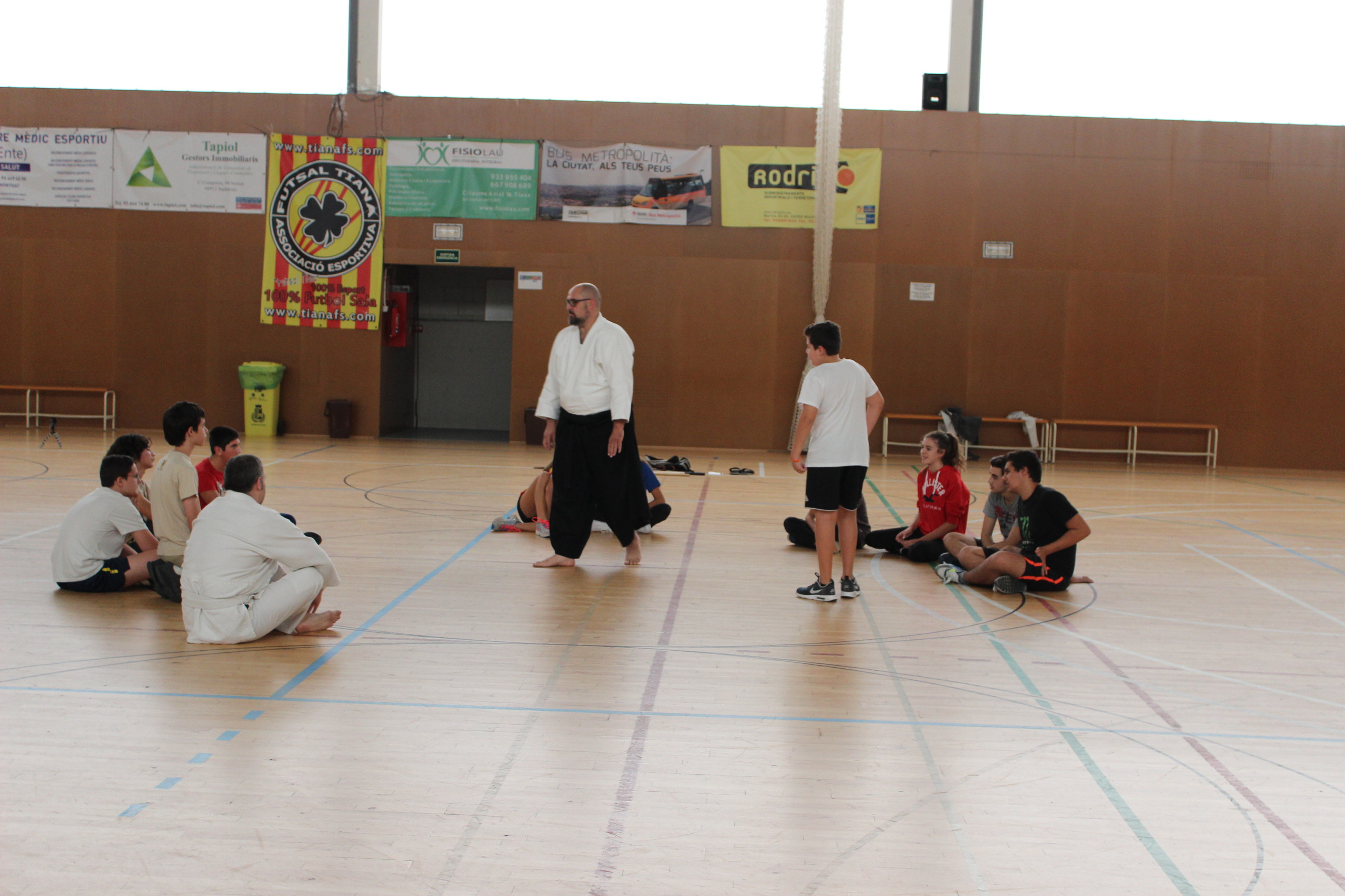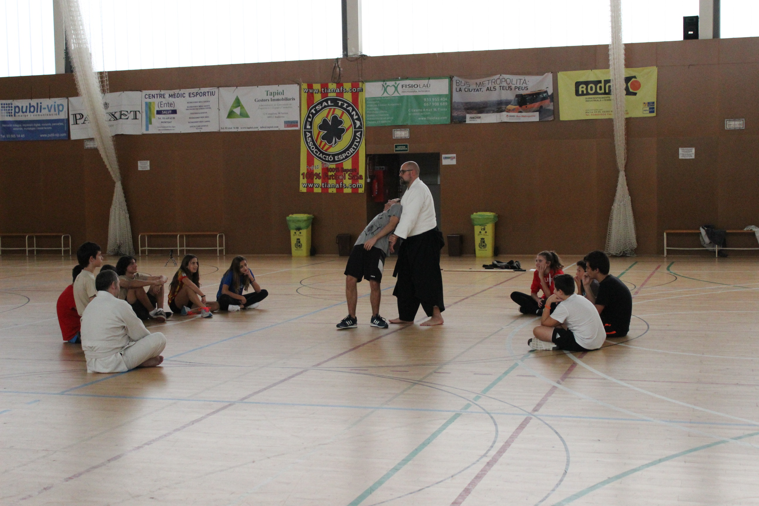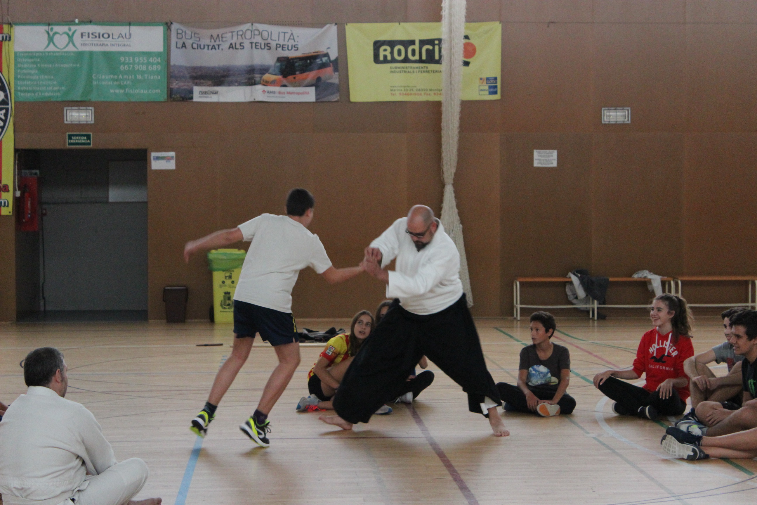 El professor és Joaquim Suárez, i ha fet ujn bon balanç d’aquesta primera sessió. Ell mateix ens explica en què consisteix l’aikido i què pretenen aquestes classes. Per a Suárez “van més enllà de la lluita”:
