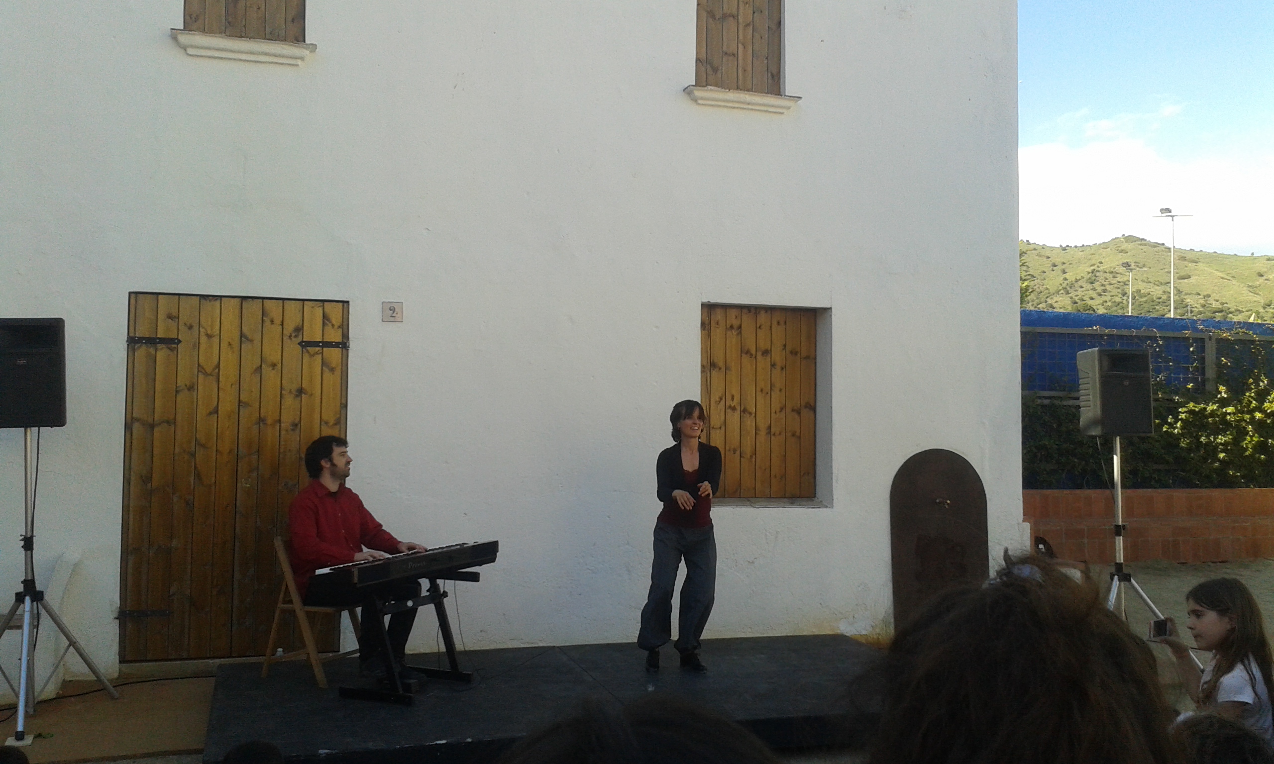 Baixem les escales fins al Jardí de la Delfina, on ens ofereixen un espectacle de claqué. Mentre dura l’actuació tothom està en silenci, com si els cops de peu sobre l’escenari fossin un encanteri. Quan acaba hi ha un fort aplaudiment i baixem cap al següent racó, a la font de Can Comas. Allà espera, assegut en un balcó, un home amb una guitarra acústica. Es posa a tocar i trena una història amb el seu company i un titella que torna a deixar bocabadat el públic.