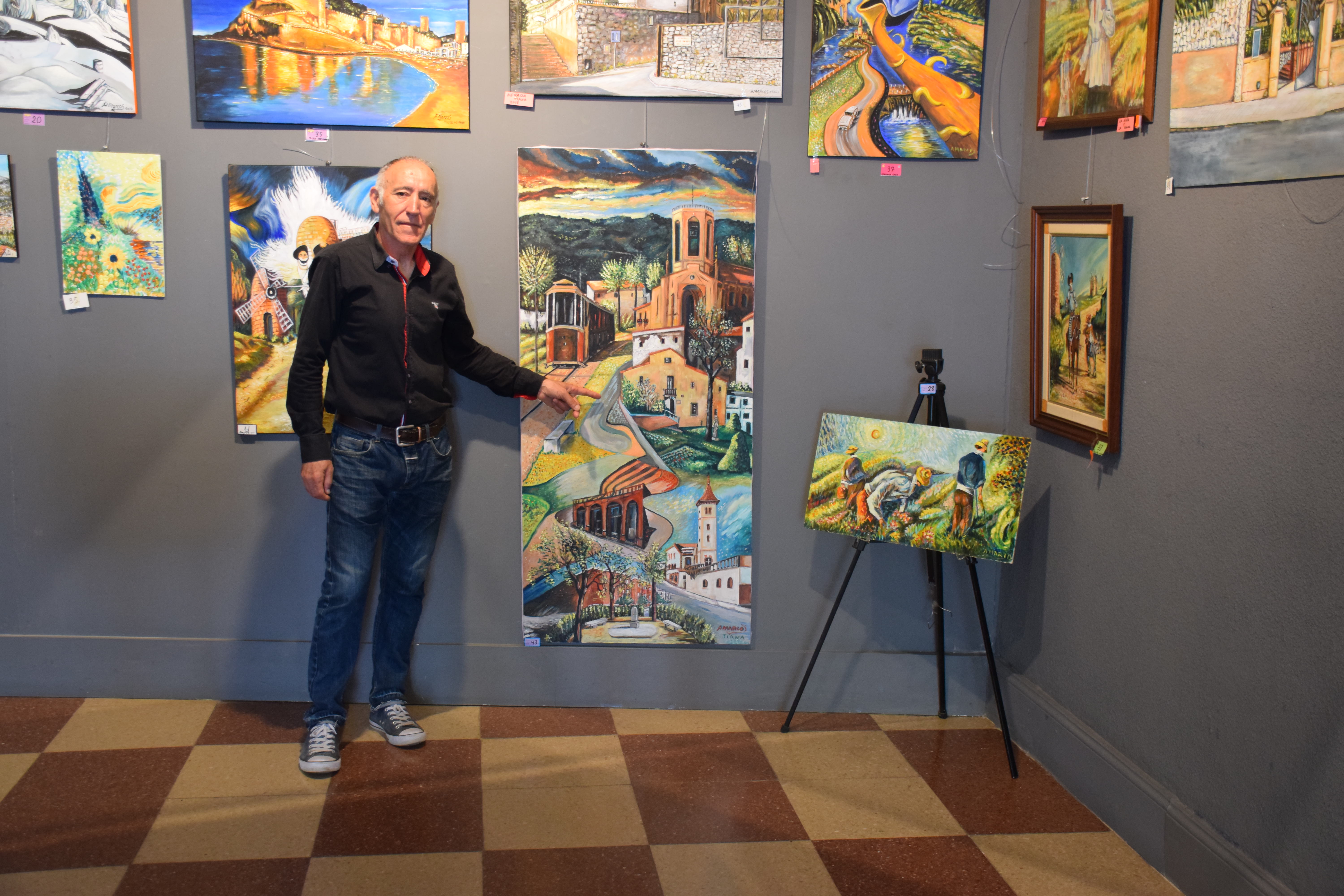 El pintor de Can Maurici (Montgat) també mostra, en aquesta exposició, olis de diferents indrets i símbols de Tiana, com l’antic tramvia o l’església parroquial.