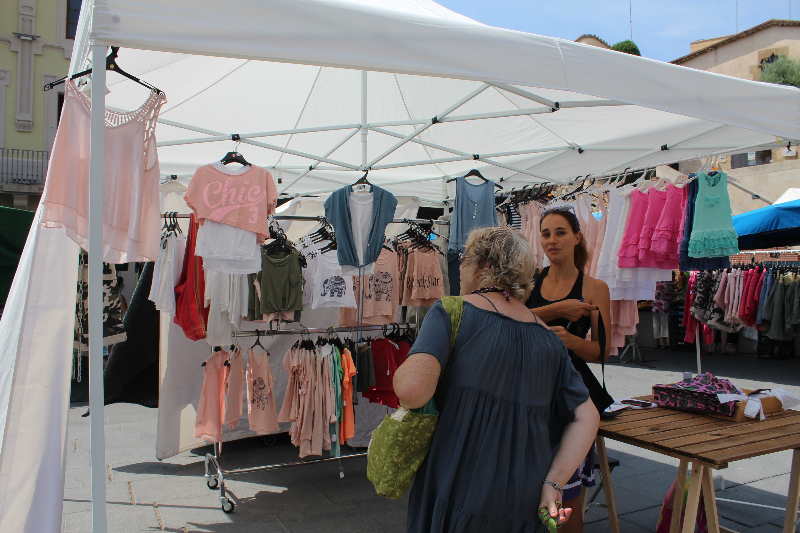 Des del passat octubre, dues tianenques, l’Emma i la seva germana, també van decidir ubicar-se al mercat de Tiana per vendre roba per a nens però sobretot per a nenes. “És un estil que agrada tant a mares com a filles”, comenta l’Emma. Les dues germanes estaven a l’atur i van creure que era una alternativa viable.