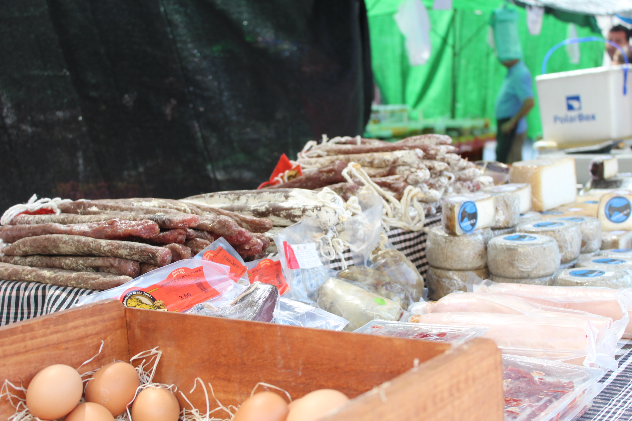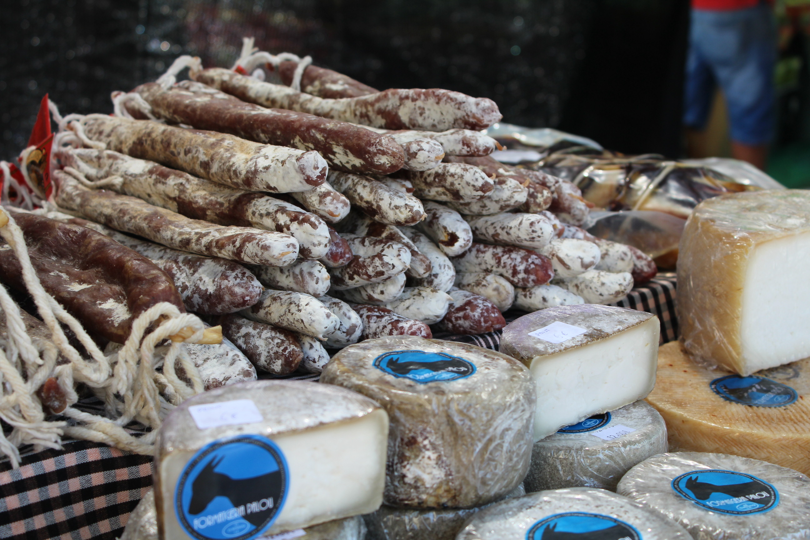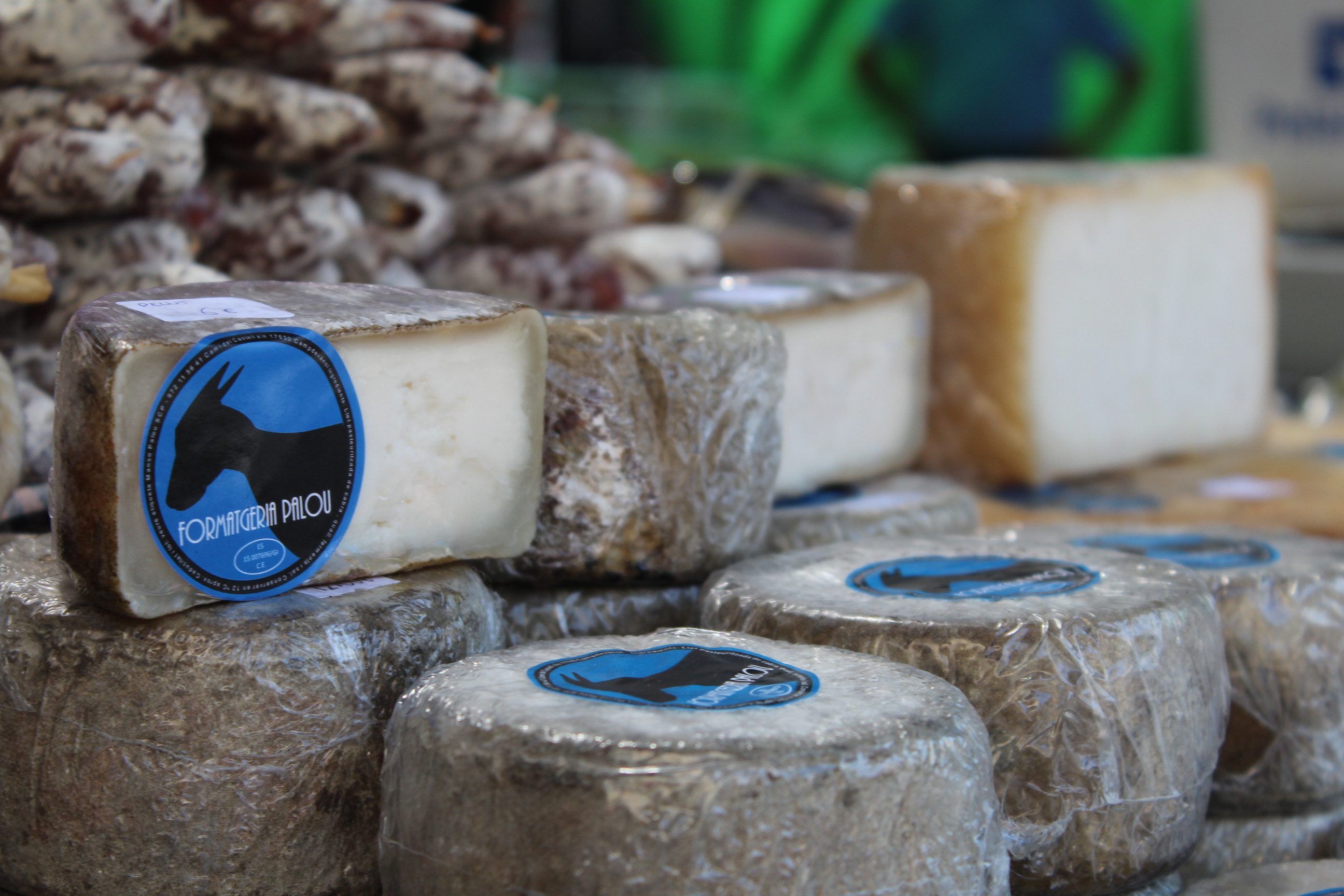 No només hi ha fruita sinó també embotits del Ripollès. En Jaume Alegre té 28 anys i fa 10 anys va decidir anar-se’n a viure a l’interior, a prop de Ripoll. Es va comprar 11 cabres i va anar aprenent l’ofici. Ara en té 120 i elabora els formatges ell mateix, coneguts com “Formatgeria Palou”.
