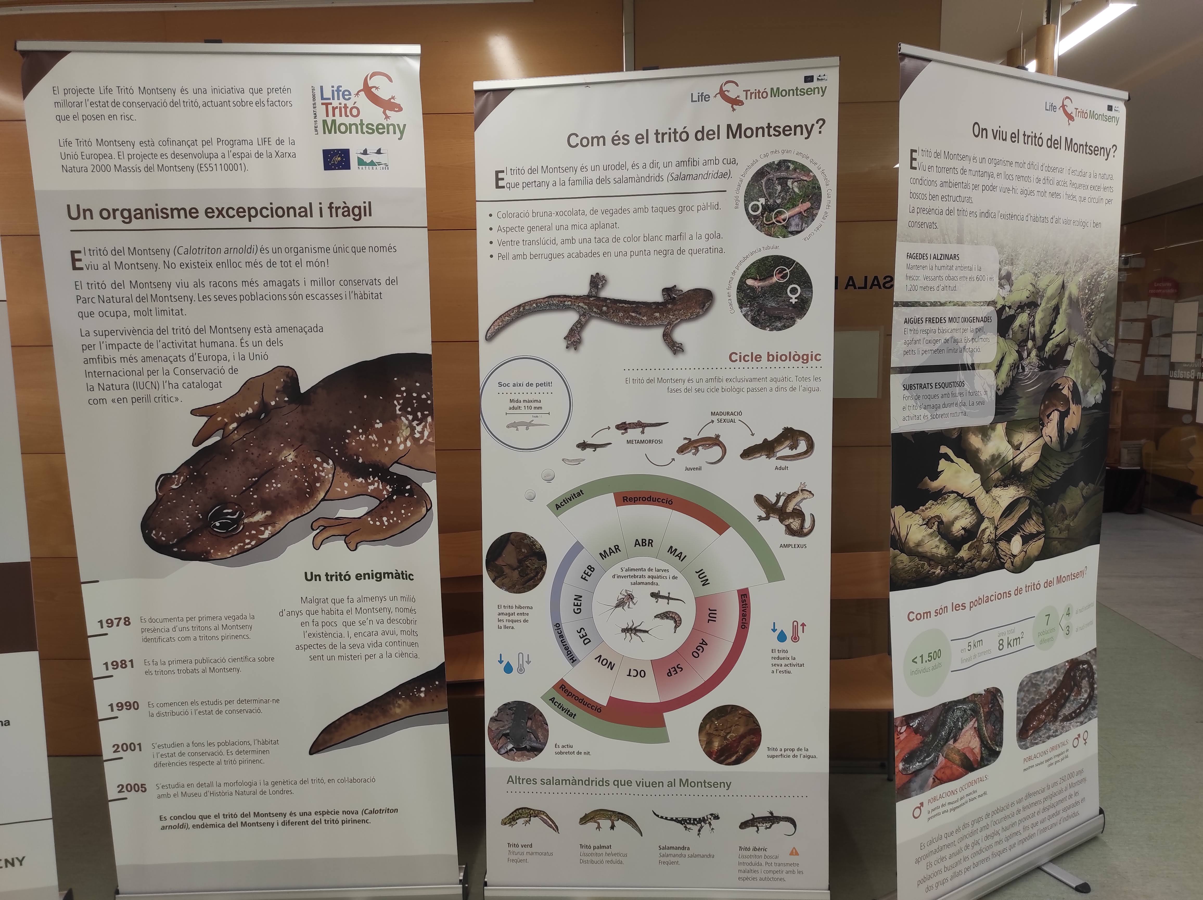 A més dels plafons informatius, l’exposició compta amb unes fotografies d’Iñaki Relanzón que els complementen i una maqueta d’un tritó del Montseny a escala augmentada.
