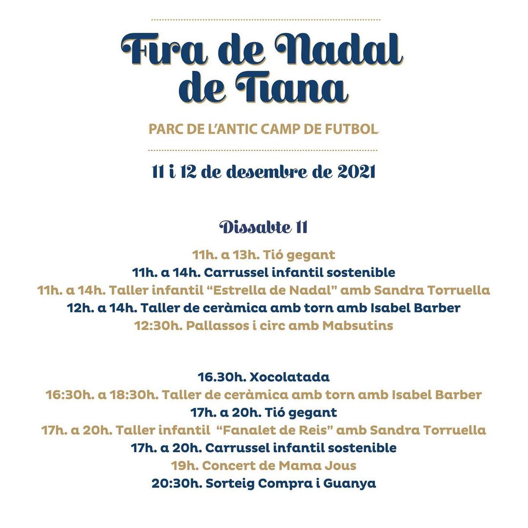 Un any més, l’Associació de Comerços i Serveis Tianencs (ACIST), amb el suport de l’Ajuntament de Tiana, organitza la Fira de Nadal, que tindrà lloc aquest dissabte 11 i diumenge 12 de desembre.