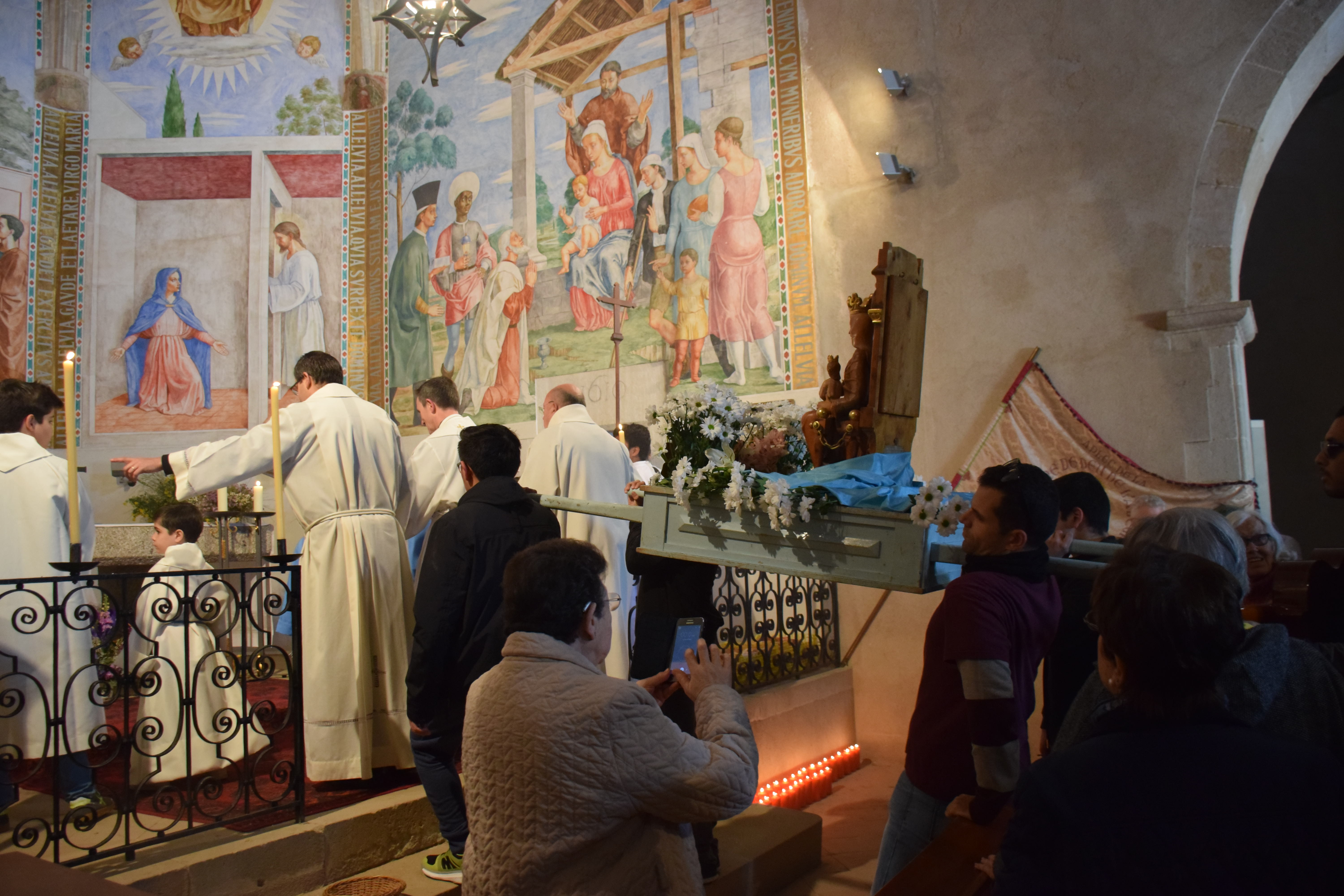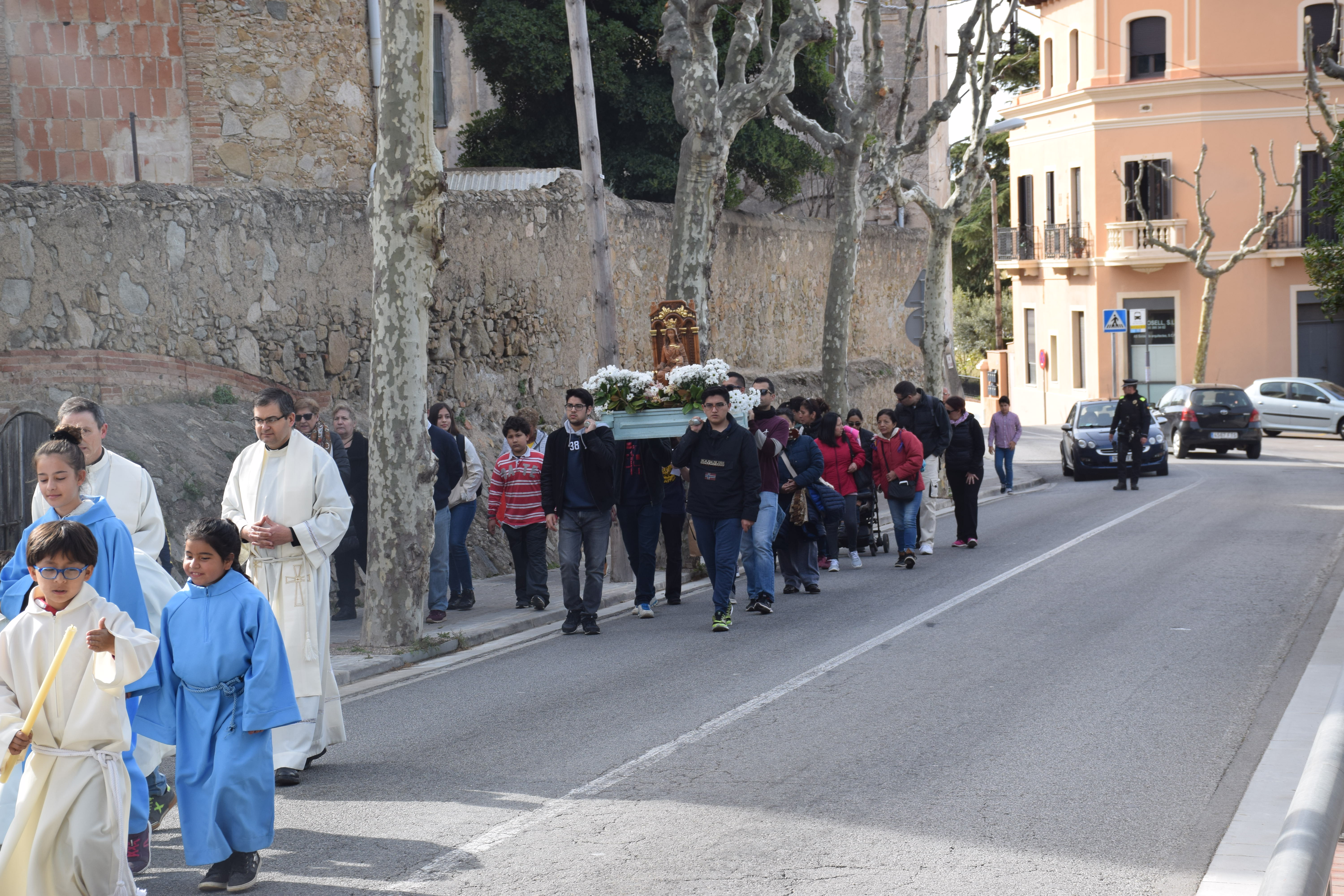 El titular de la parròquia de Tiana, mossèn Ramon, estava radiant per haver pogut organitzar aquesta processó per resar el rosari el dia de l’Aplec de l’Alegria: