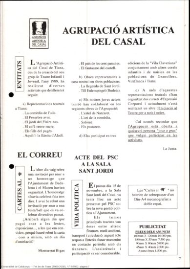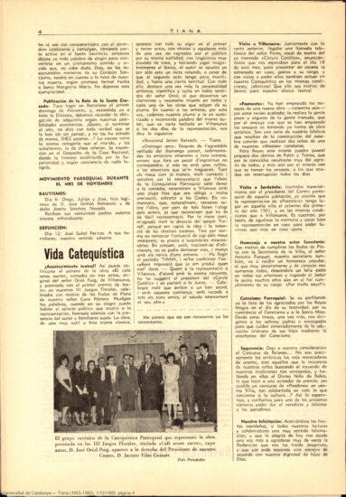 “iAcontecimiento teatral! Así puede calificarse el estreno de la obra «El cafè sense sucre», comedia en tres actos, original del señor Oriol Puig, de Villanueva, y premiada con el primer premio de teatro en nuestros lll Juegos Florales”. Així recollia la revista Tiana, l’1 de desembre del 1960, la crònica de la representació de l’obra “El cafè sense sucre” que va tenir lloc a la Catequística.
