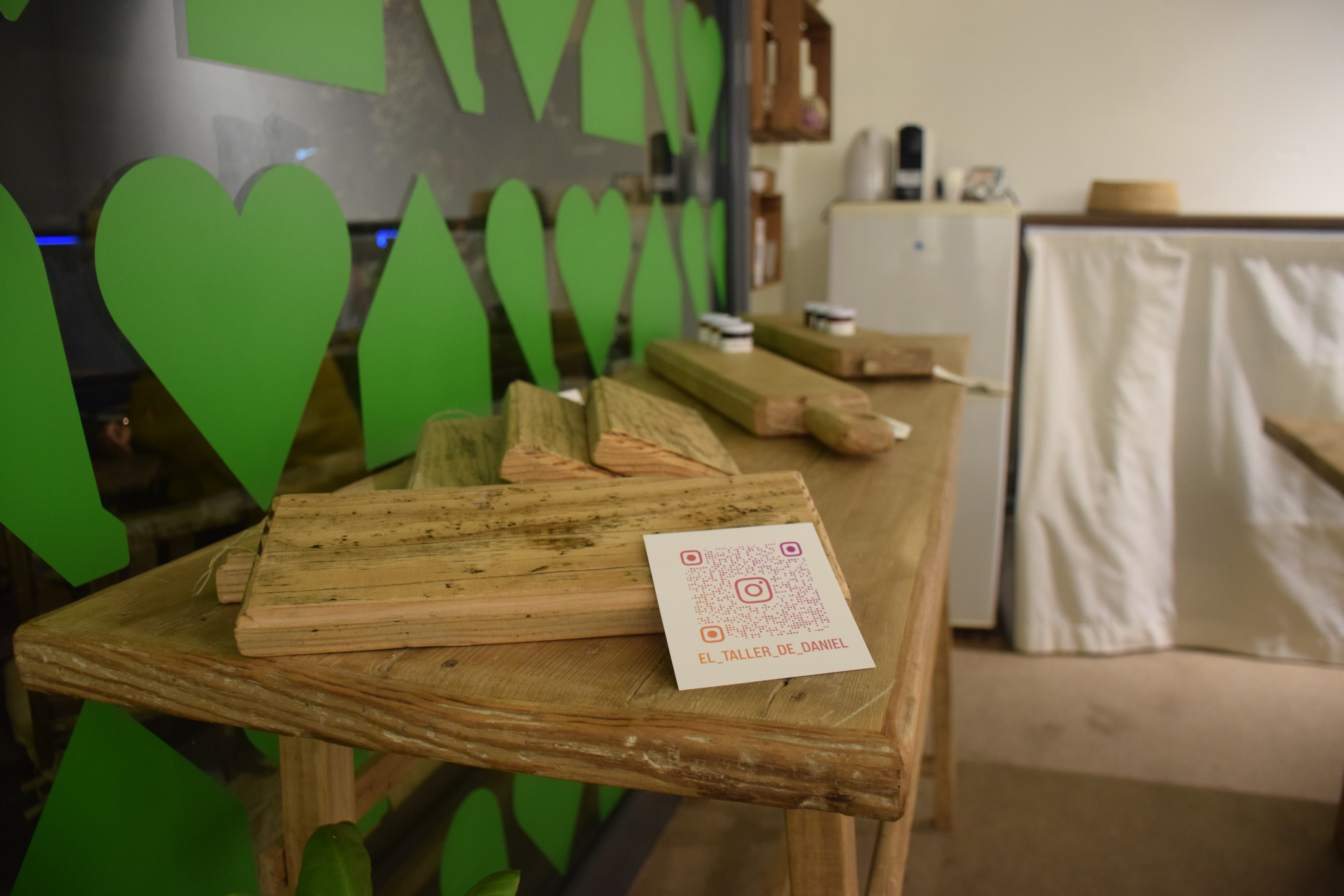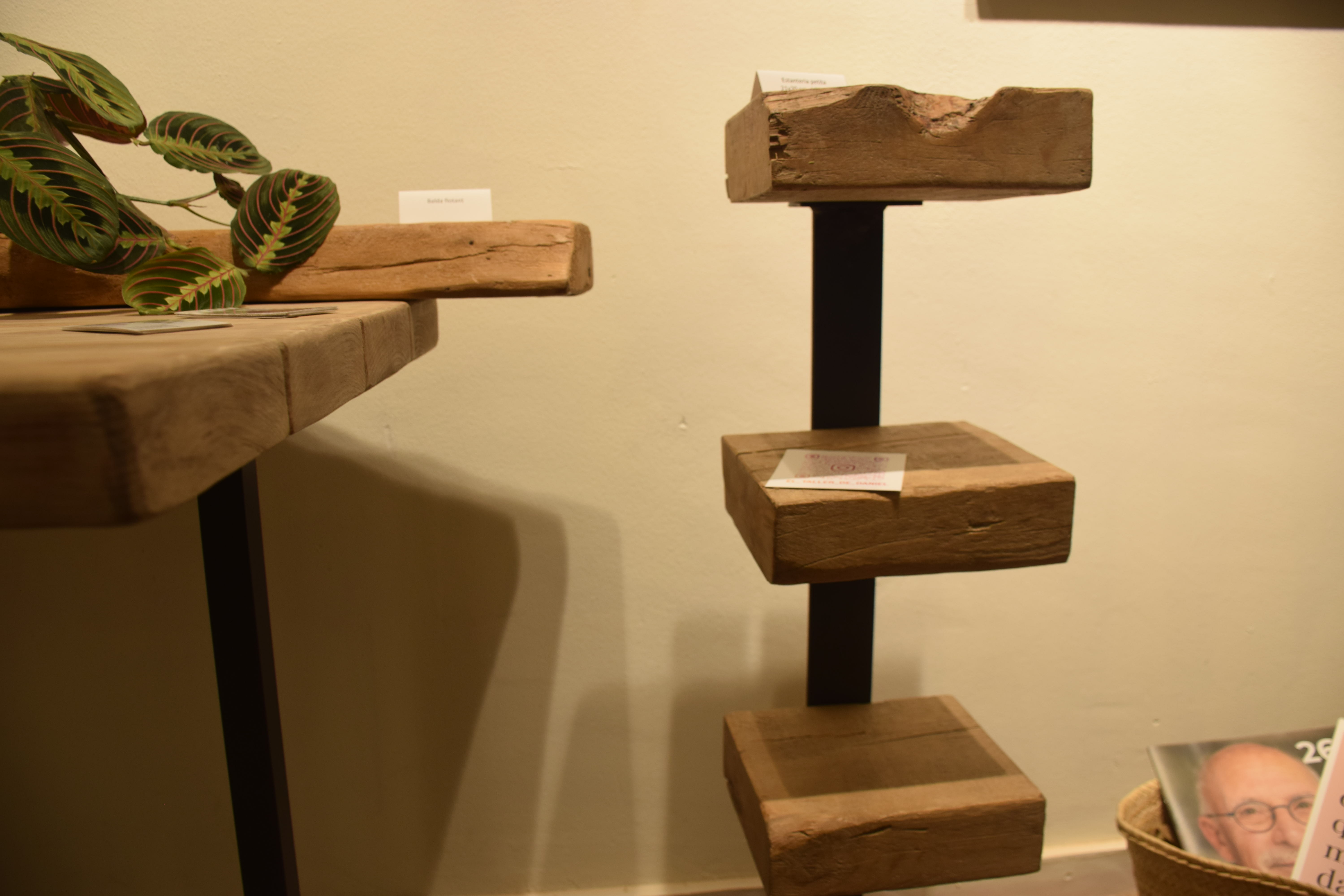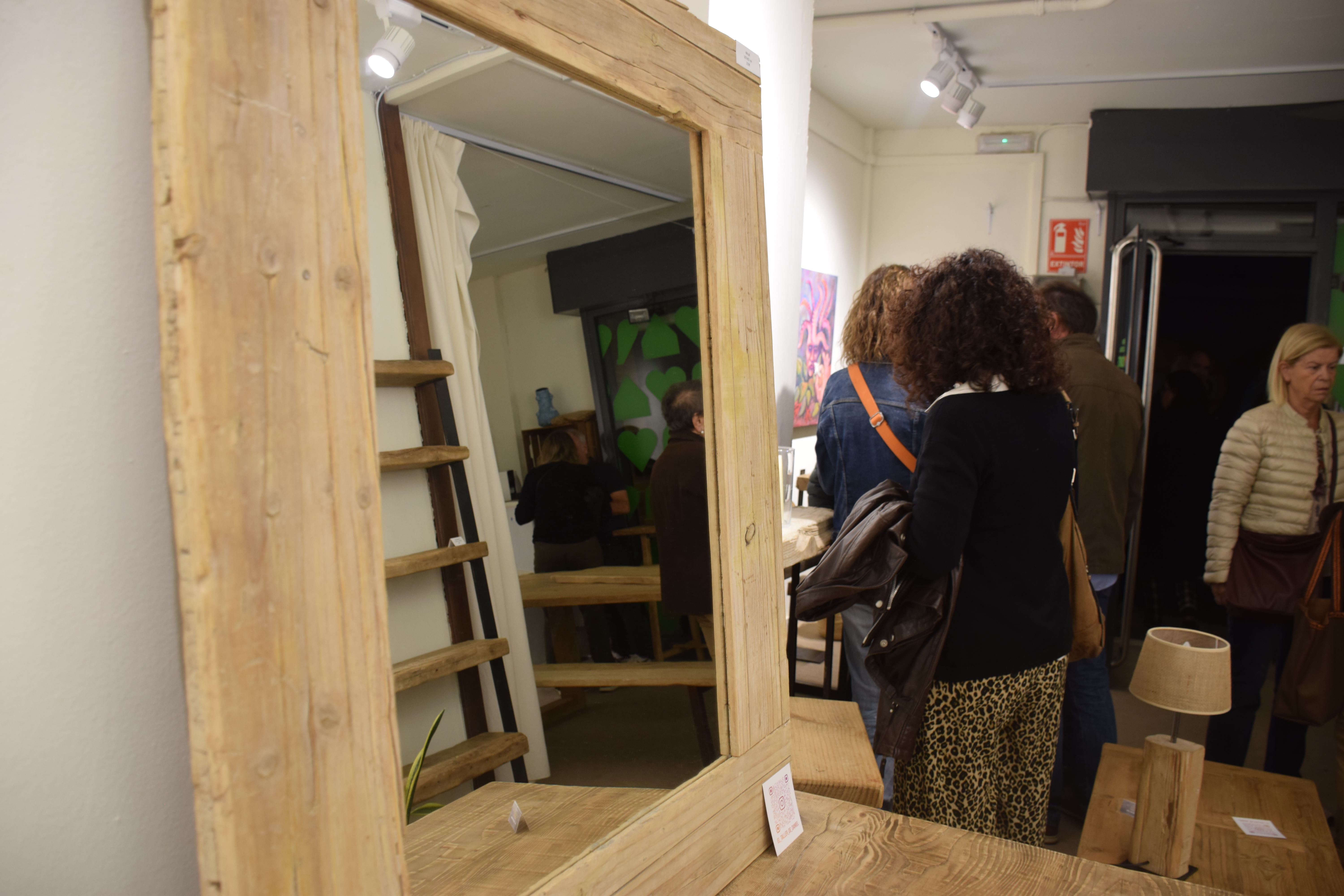 A l’exposició es poden veure des de taules i bancs fins a làmpades i marcs elaborats amb fusta reciclada i ferro: