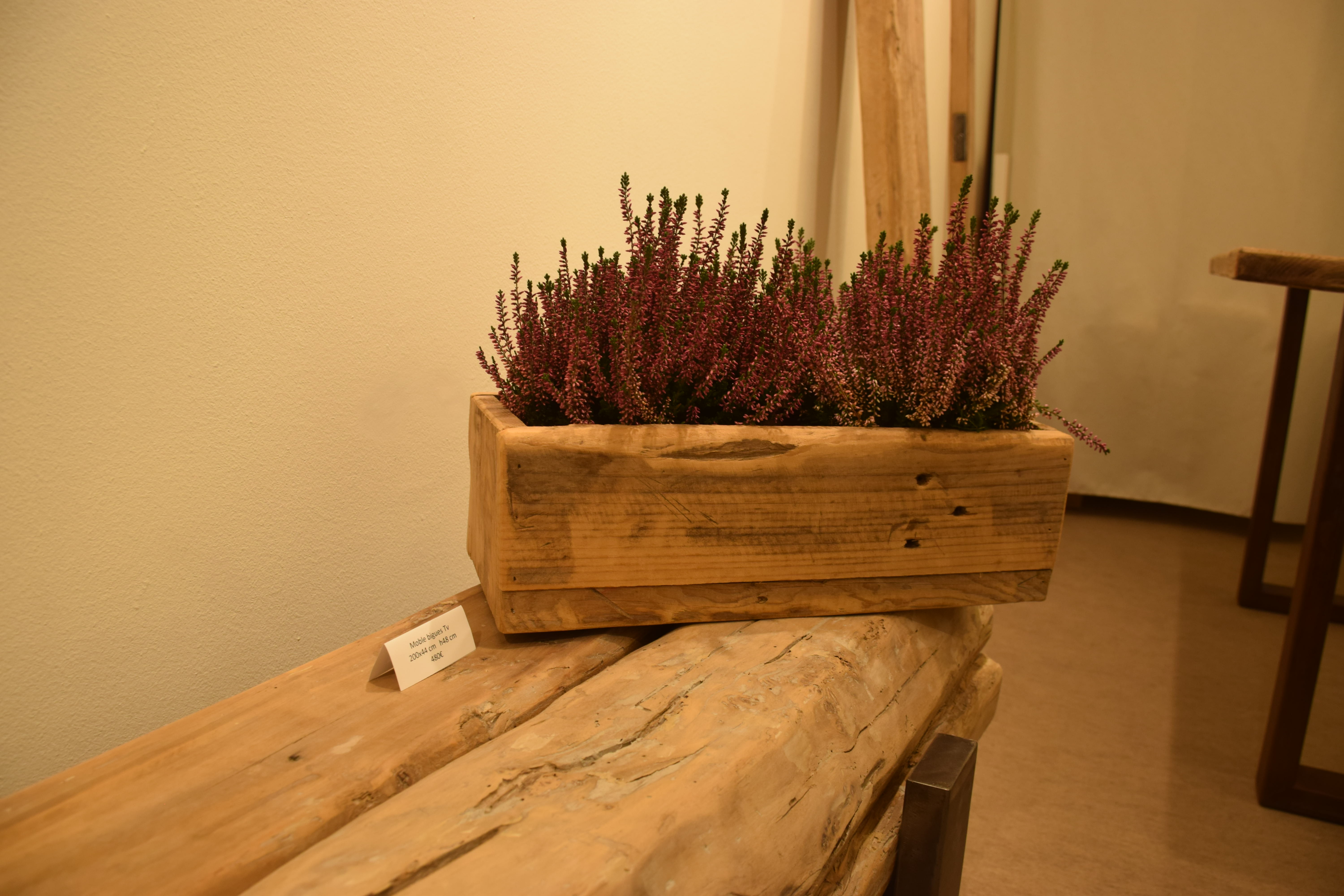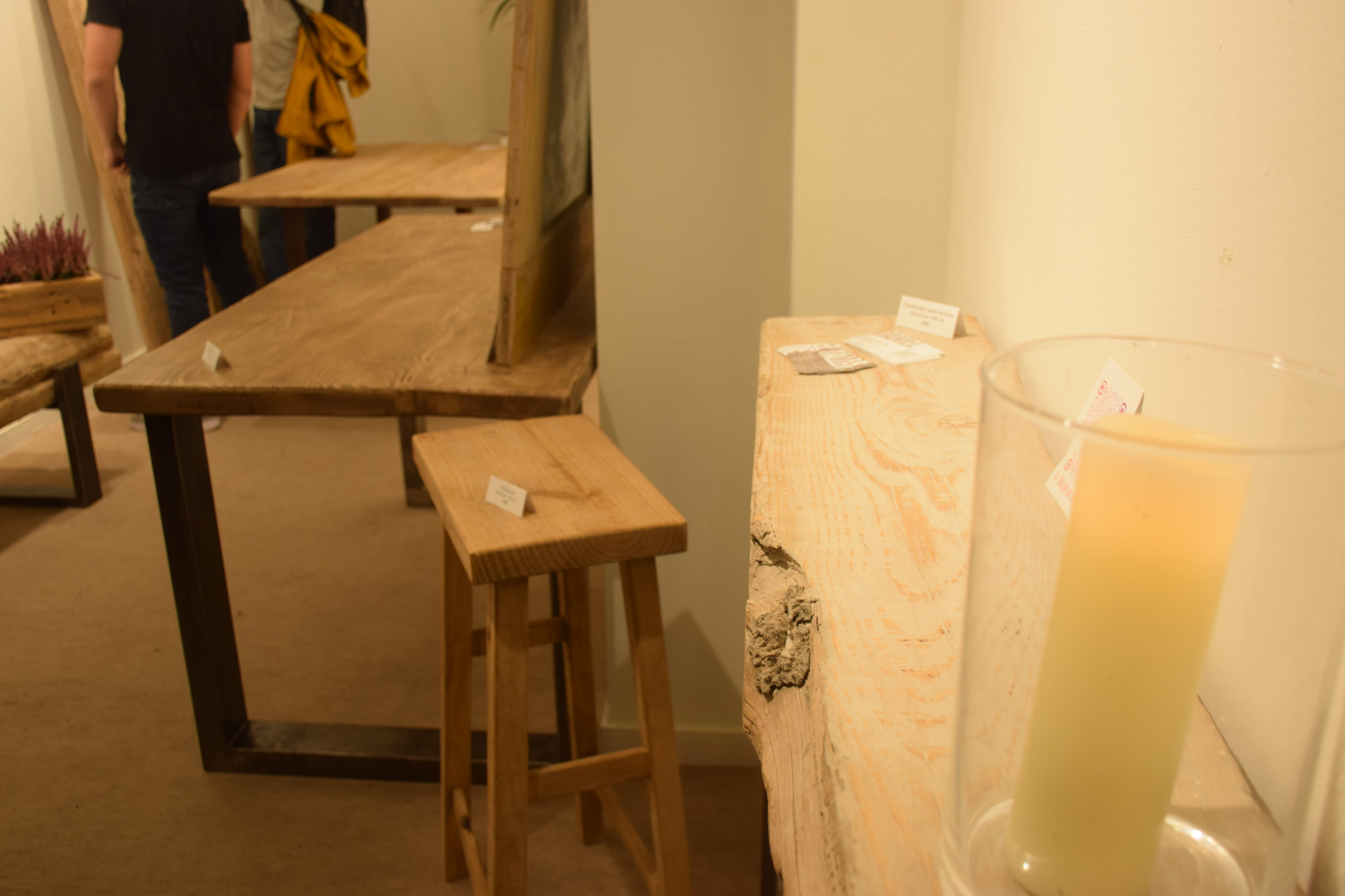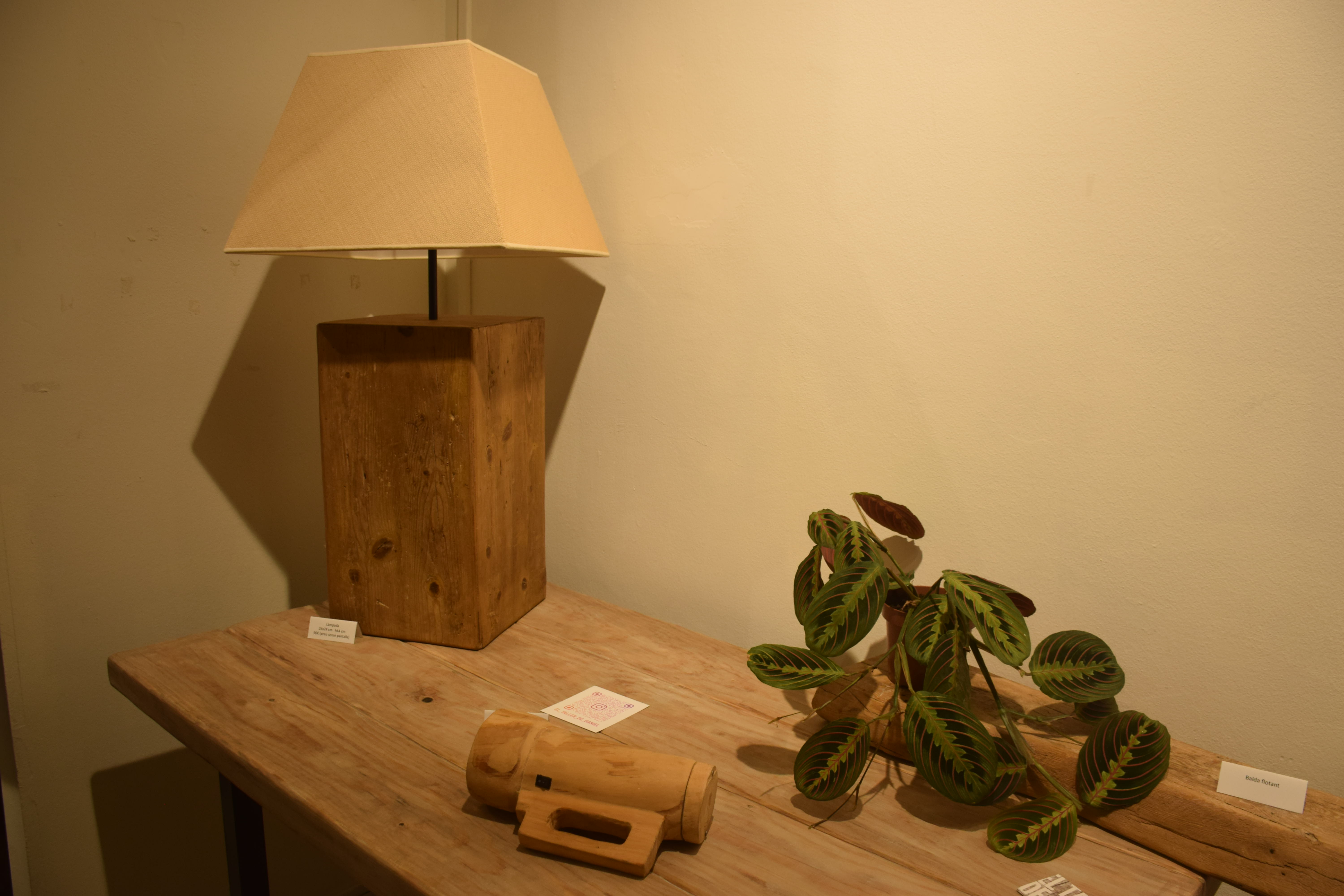 A l’exposició es poden veure des de taules i bancs fins a làmpades i marcs elaborats amb fusta reciclada i ferro:
