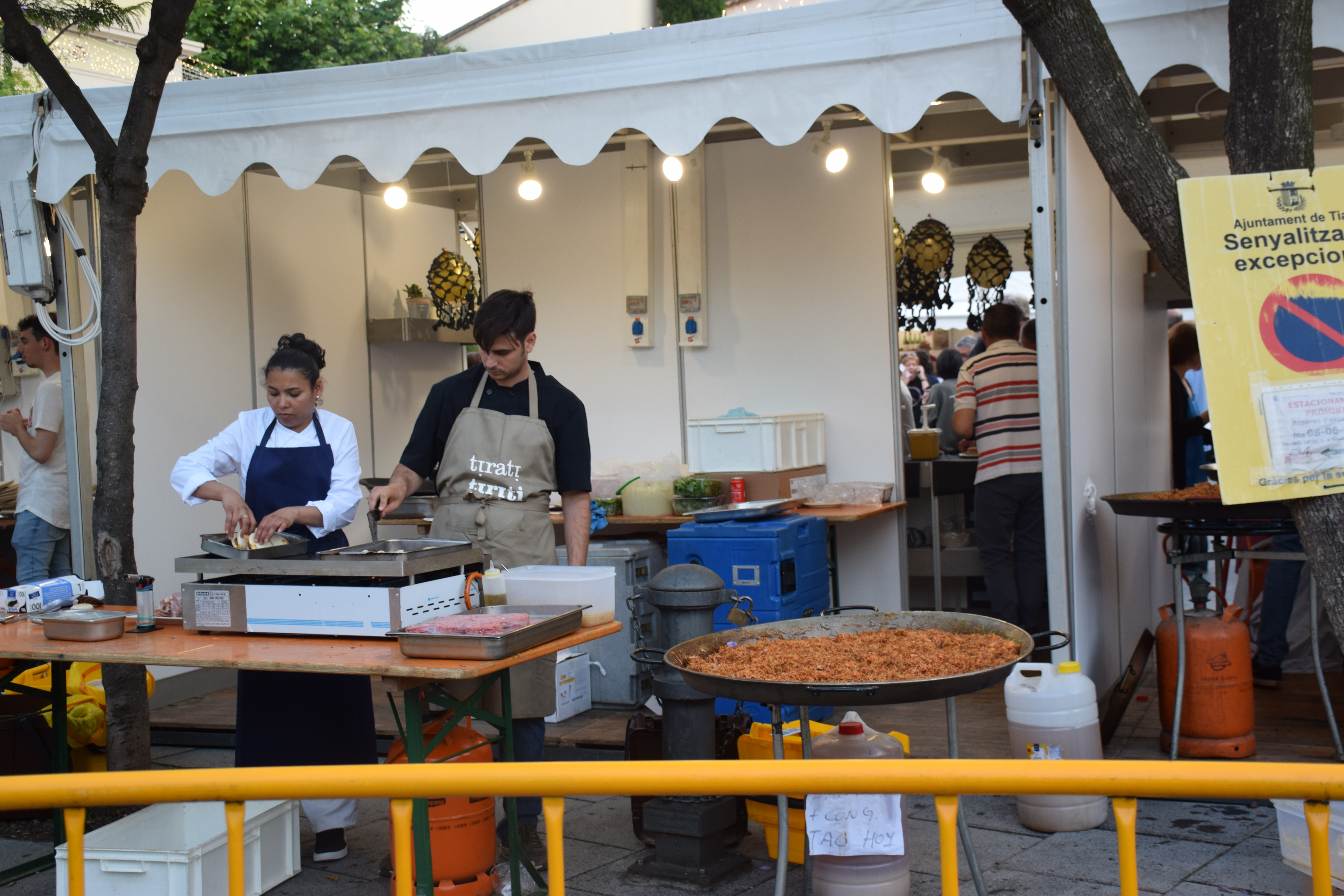 El dia de la inauguració ha comptat amb una pregonera de luxe: Fina Puigdevall, fundadora i cap de cuina del restaurant Les Cols d’Olot. El pregó, fidel a la tradició, s’ha fet més de mitja hora més tard respecte a l’hora prevista (les 7 de la tarda) Però, aleshores, la Plaça de la Vila lluïa una mitja entrada que ha fet brillar aquest tret de sortida de la Festa Major Petita i el Tast Tiana.