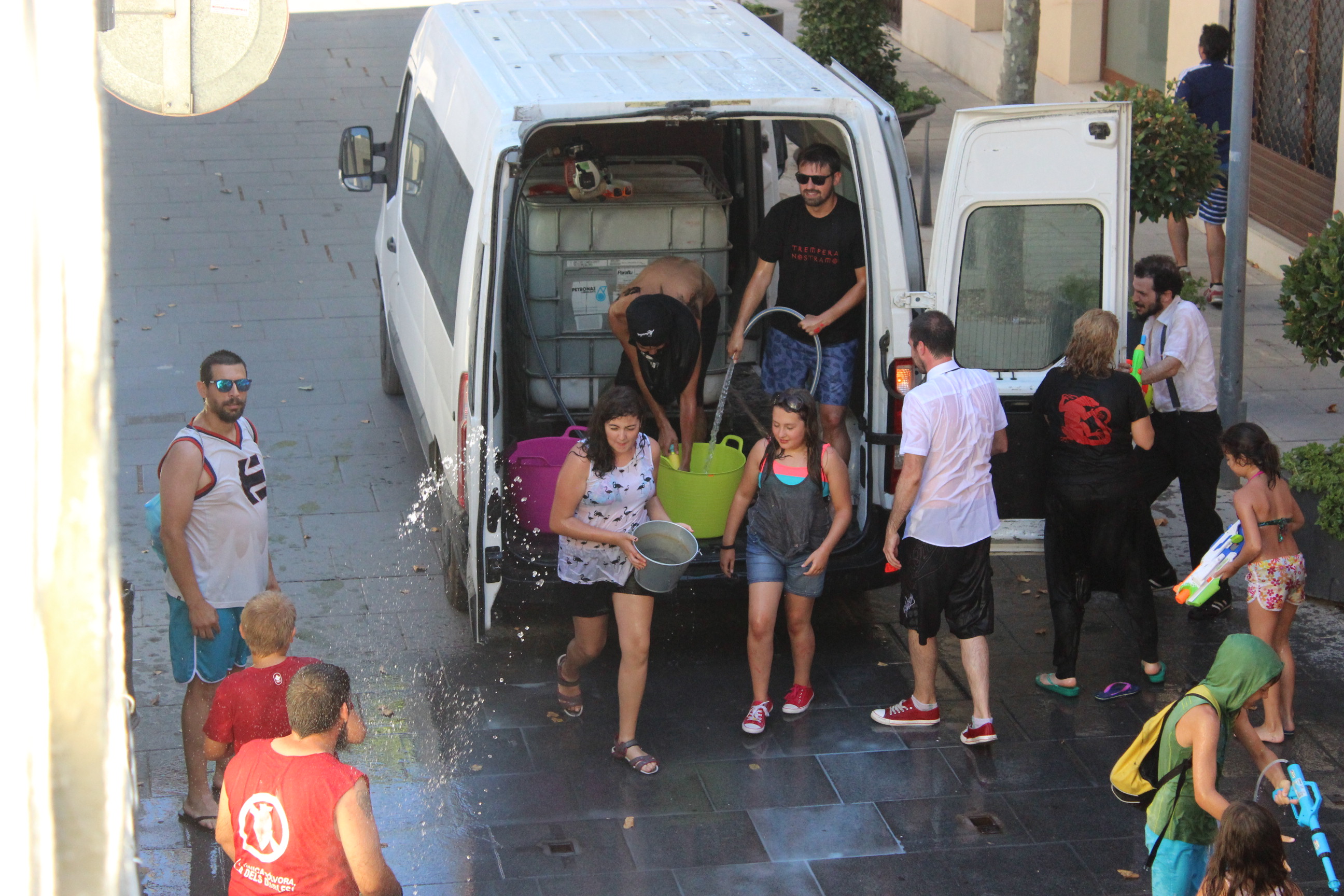 Corren els cubells i les cases properes també s’animen a llençar aigua al carrer. La Colla de Diables Trempera Nostramu inicia el correaigua pel centre del poble.