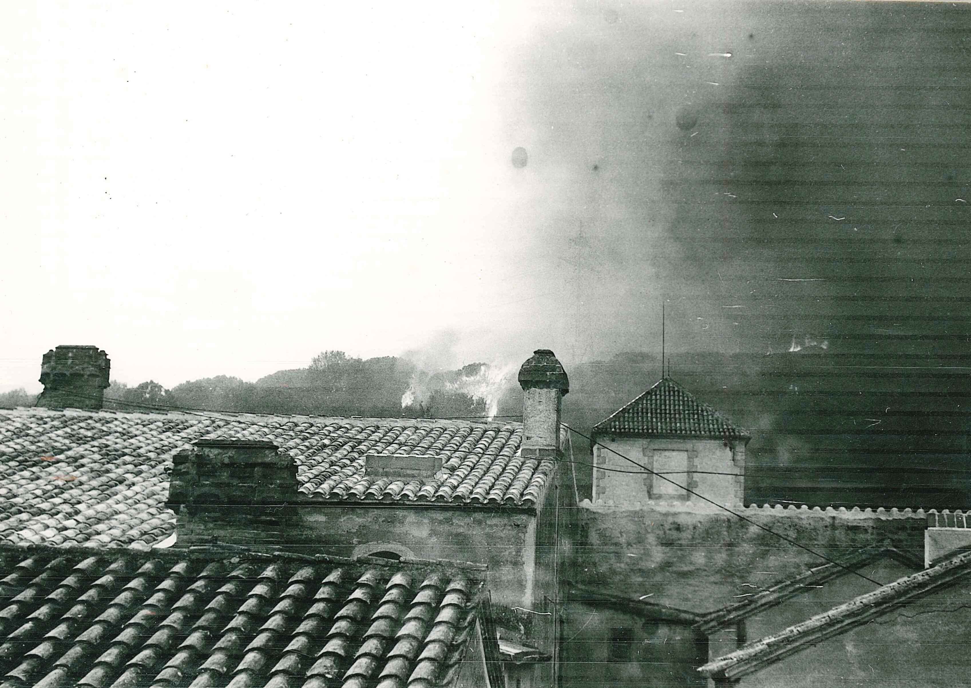 Quan l’incendi va arribar a la vall de Montalegre, la pau dels monjos va ser truncada per sirenes, cotxes de patrulla, Guàrdia Civil i Policia Local. Corredisses i molts nervis es respiraven pels claustres tranquils de la Cartoixa de Tiana. En un prinicpi el pare prior va dir que no calia desallotjar, encara que les autoritats del moment van decidir fer-ho. Es van organitzar transports per ser desallotjats del monestir.