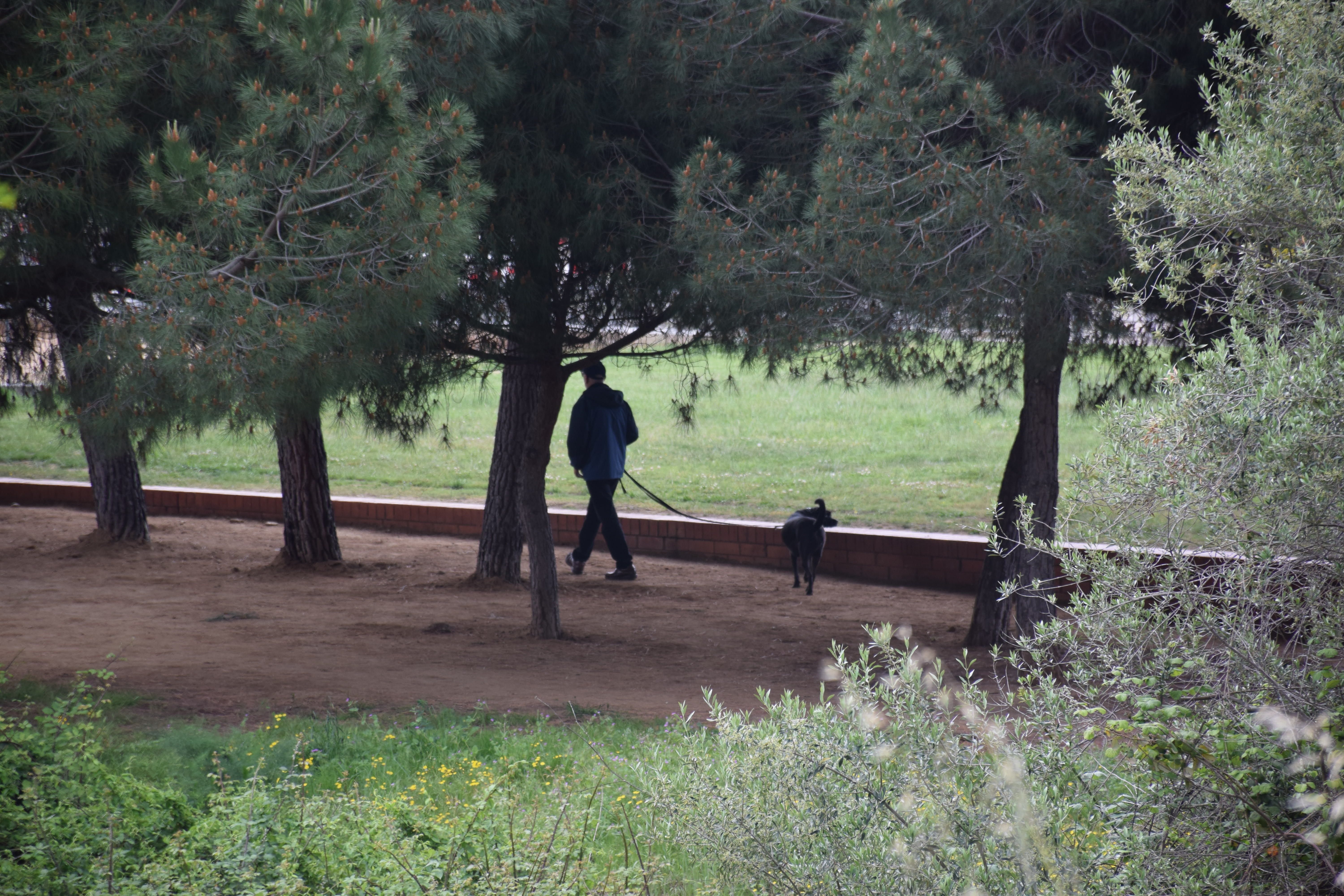 El final del carrer mossèn Verdaguer empalma amb la part tianenca del Parc del Tramvia. El punt on tots dos espais conflueixen és una arbreda amb sòl de terra, al costat de la qual hi ha una extensa zona de gespa. Tant un espai com l’altre són també territori exclusiu pels gossos, denuncien els veïns. Estan farts que estiguin plens de caques sense recollir i que els nombrosos gossos campin sempre lliurement. En Lluís és un d’aquests veïns: