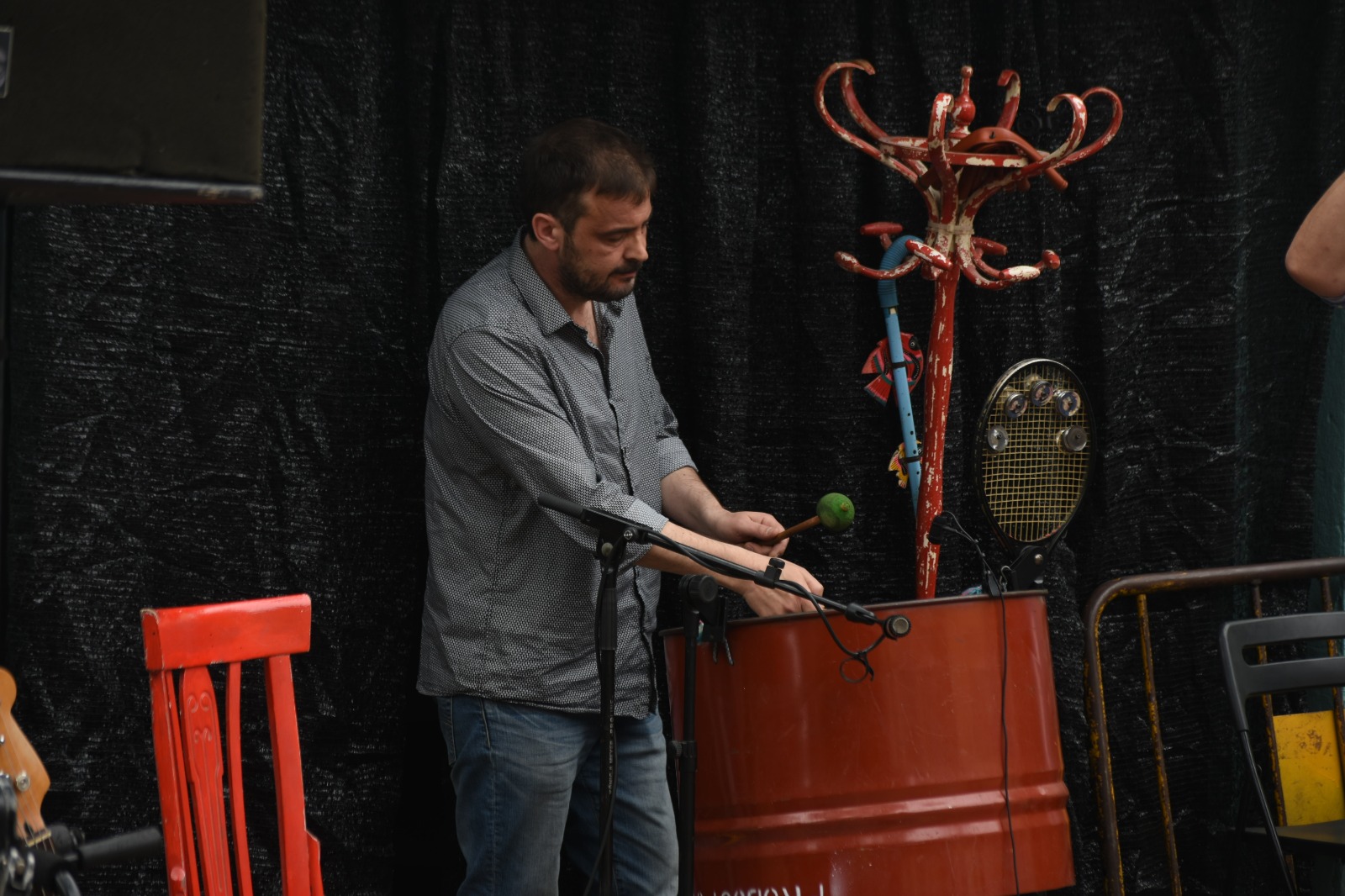 Però un dels instruments més estranys visualment és, precisament, el que no ha tocat en Xavi. L’instrument es fa amb la fusta de rentar, agafada dels Estats Units, i en Xavi Lozano ens explica com l’han fet i funciona: