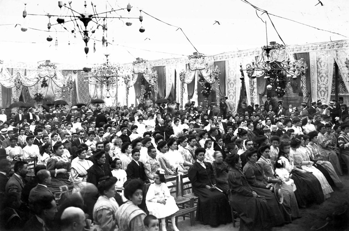 La fotografia de l’envelat tianenc serveix per il.lustrar un apartat important de l’exposició: el de l’associacionisme cultural. S’hi explica l’eclosió i la proliferació a Catalunya, a mitjan segle XIX, d’ateneus, casinos, casals, cercles. Un d’ells va ser la Societat Coral Joventut tianenca. Tenien la finalitat de crear espais de sociabilitat, de convivència, d’instrucció i d’esbarjo.
