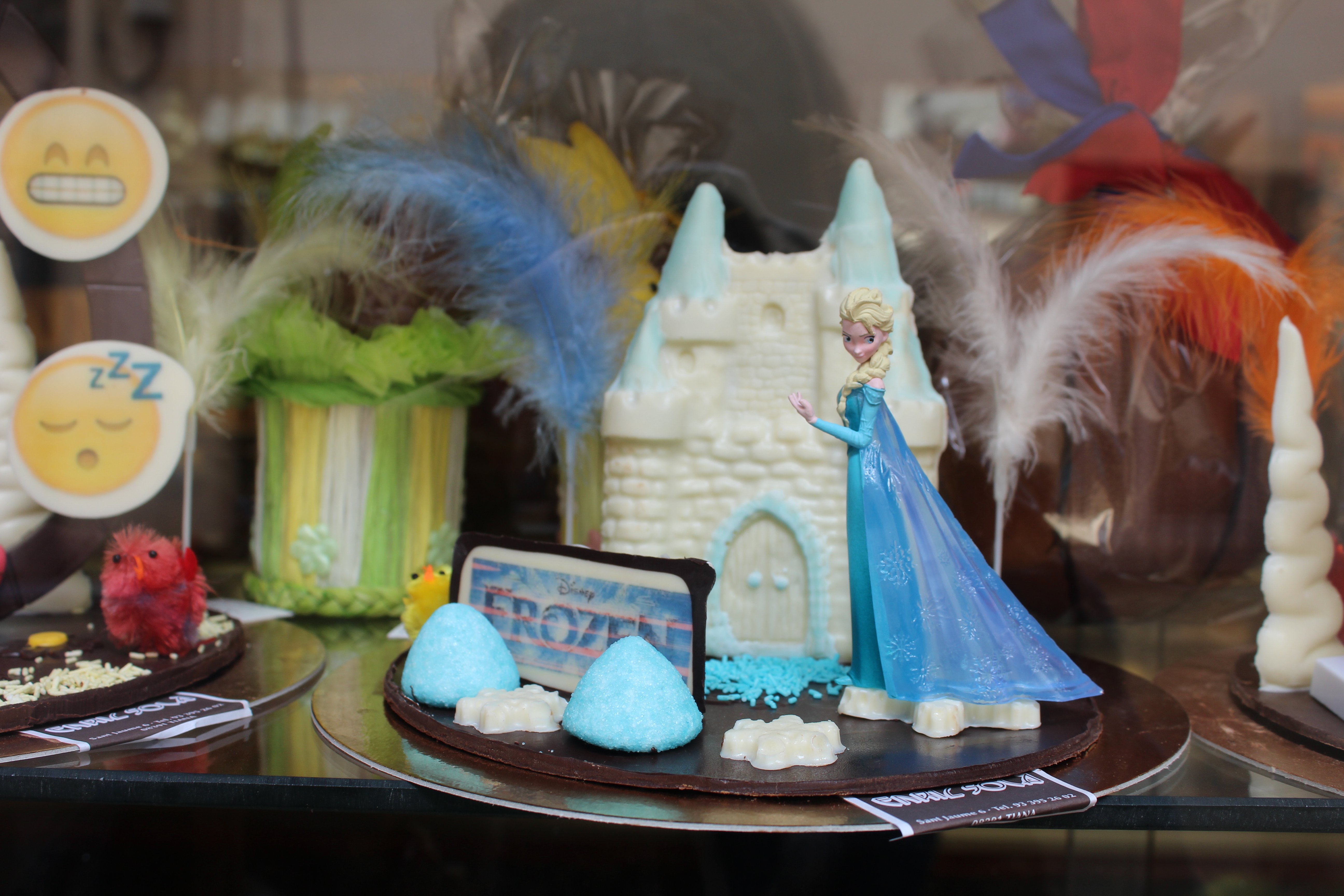La propietària de la fleca, Georgina Aixelà, explica que aquest any les mones tindran com a protagonistes principals els mateixos personatges que l’any passat. Al 2014 va destacar la mona de Frozen, pel·lícula de Walt Disney basada en el conte de Hans Christian Andersen La reina de les neus.