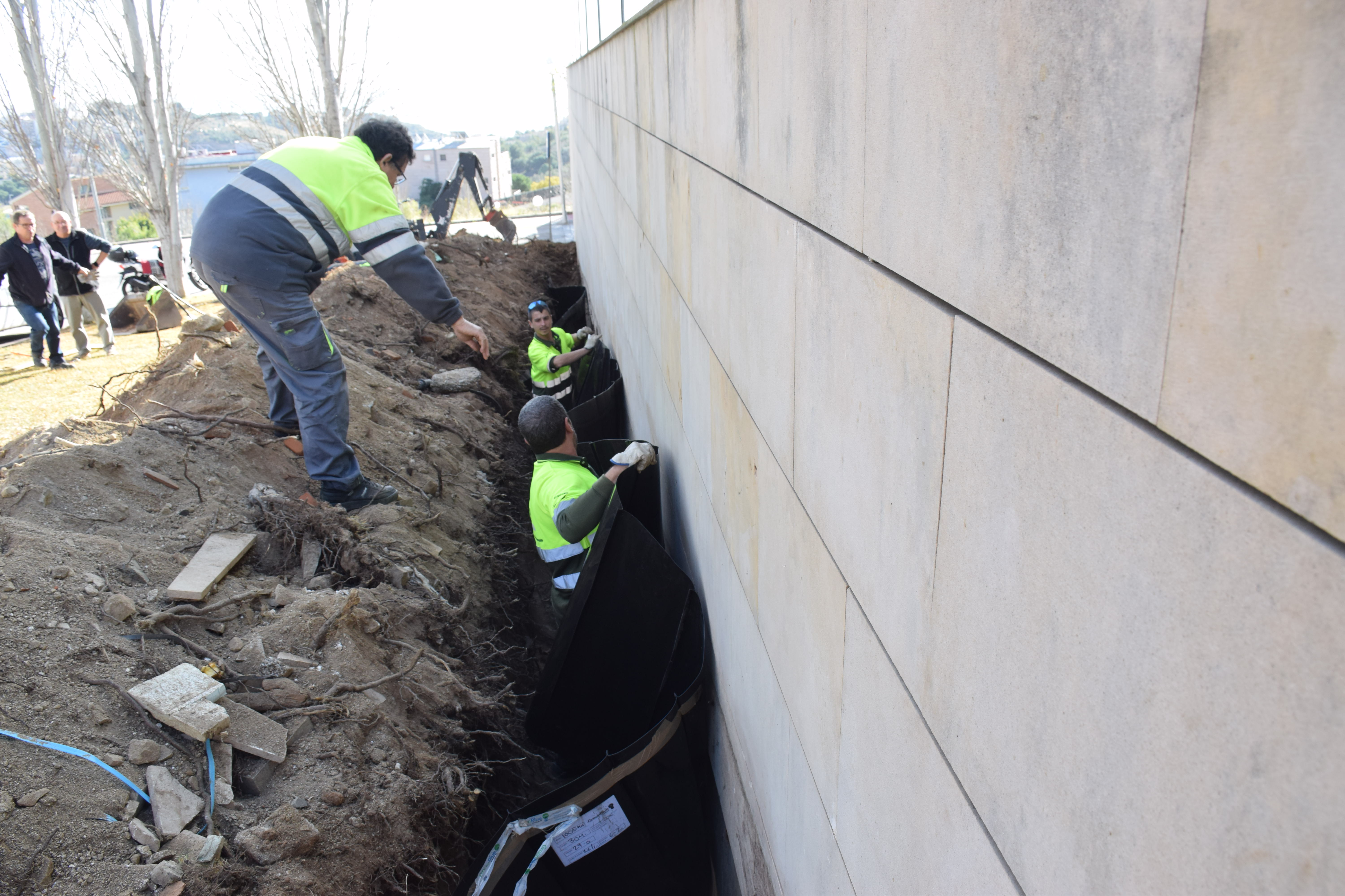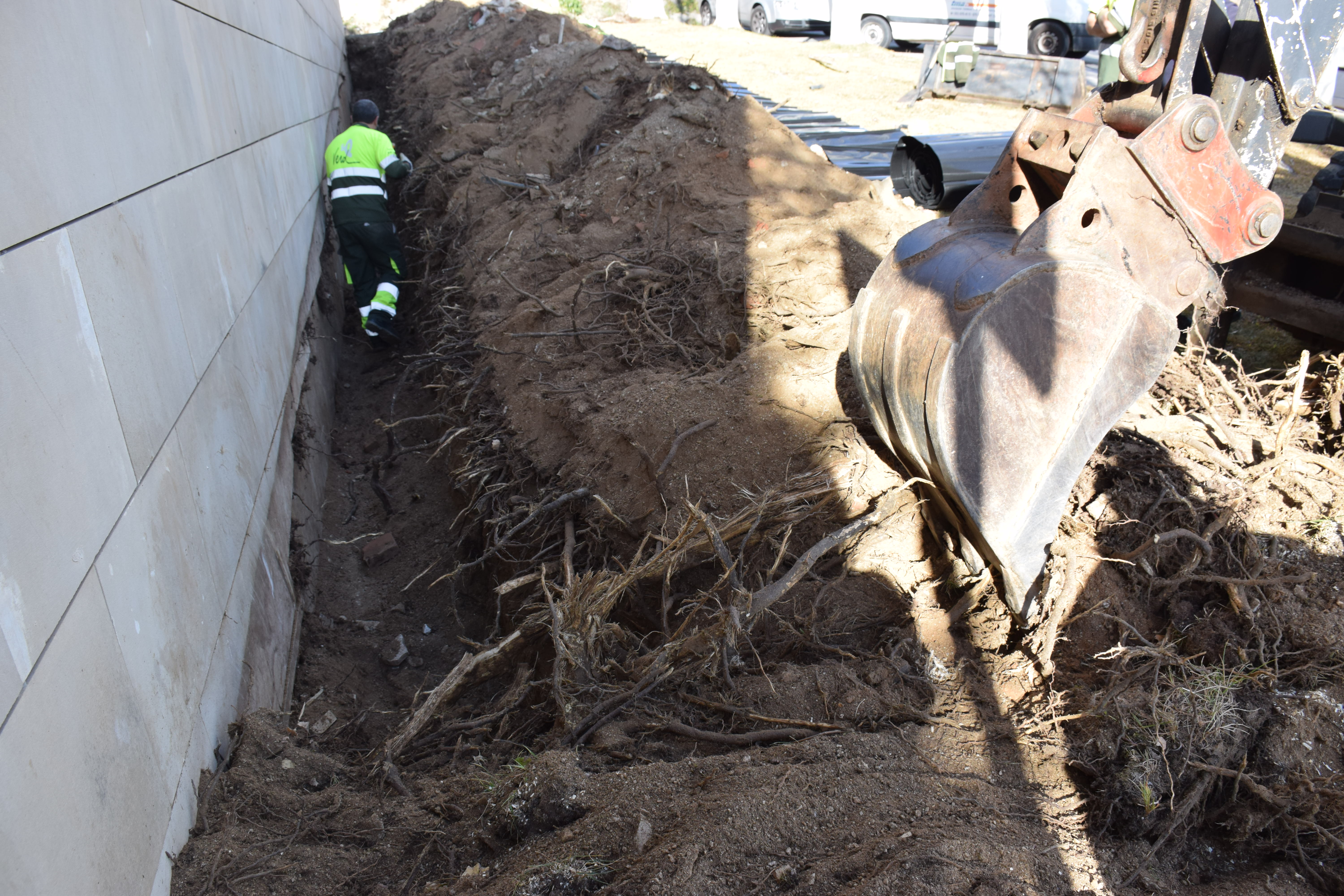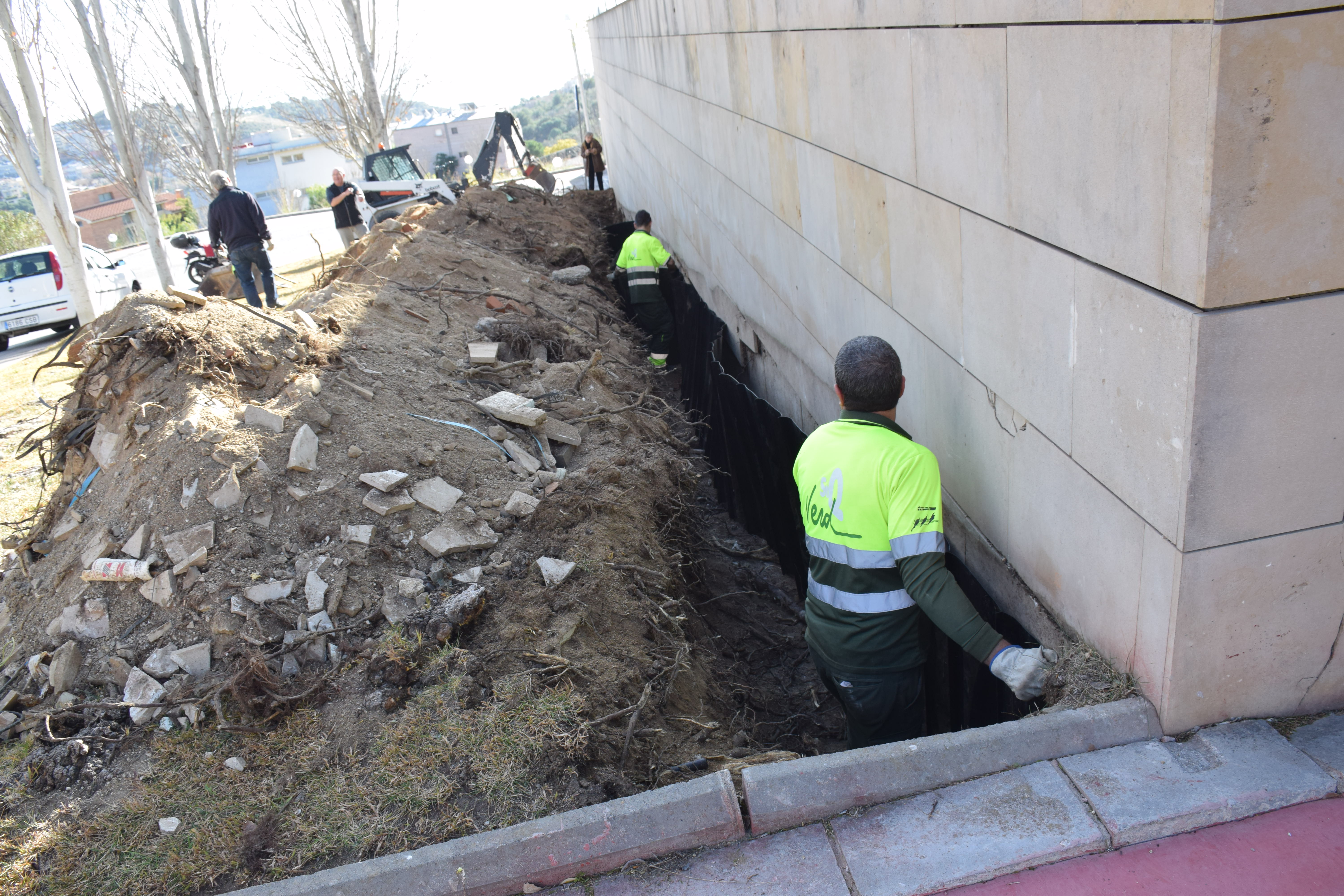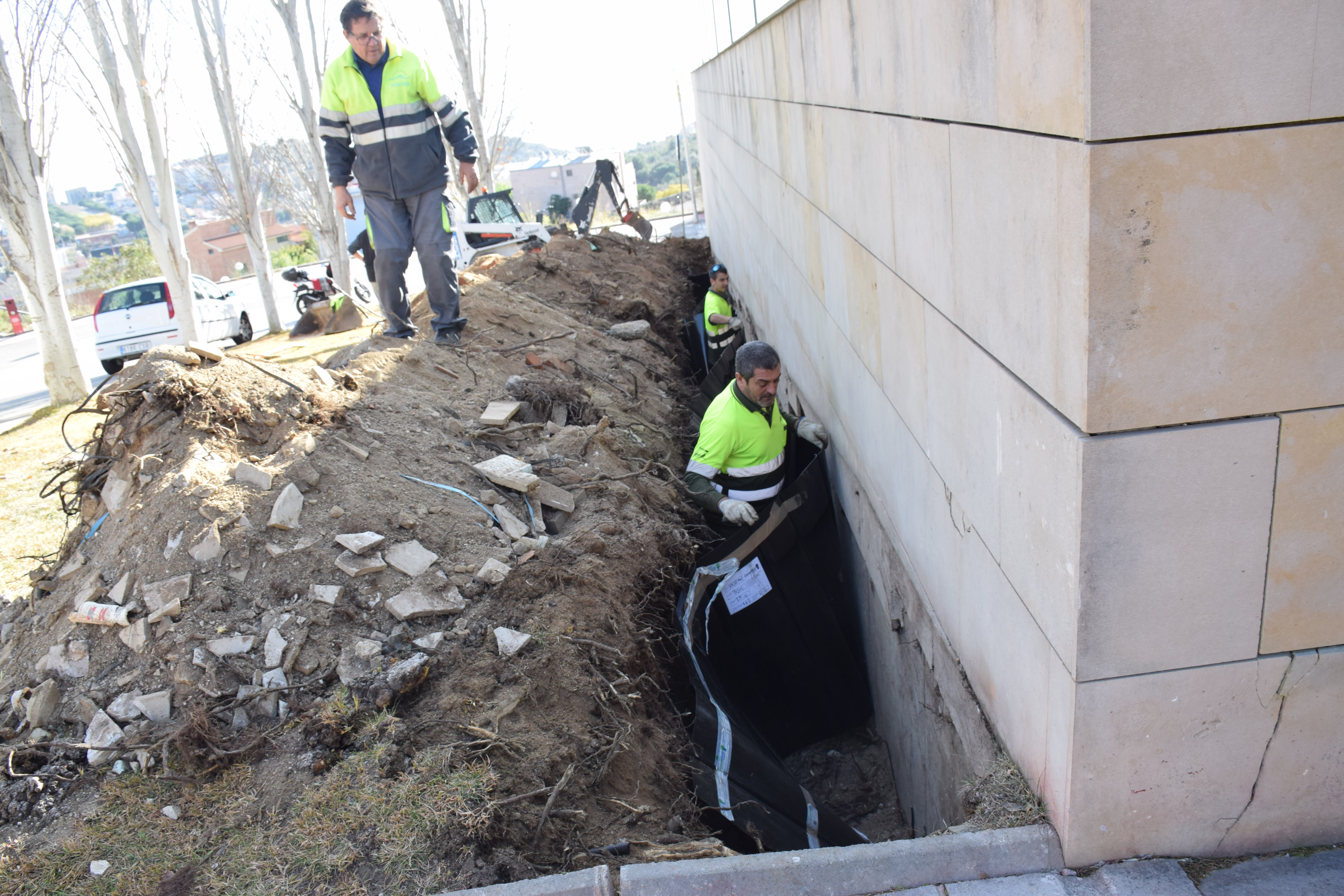 La intervenció, asseguren els operaris, no afecta els arbres: només els desvia les arrels i els brots.