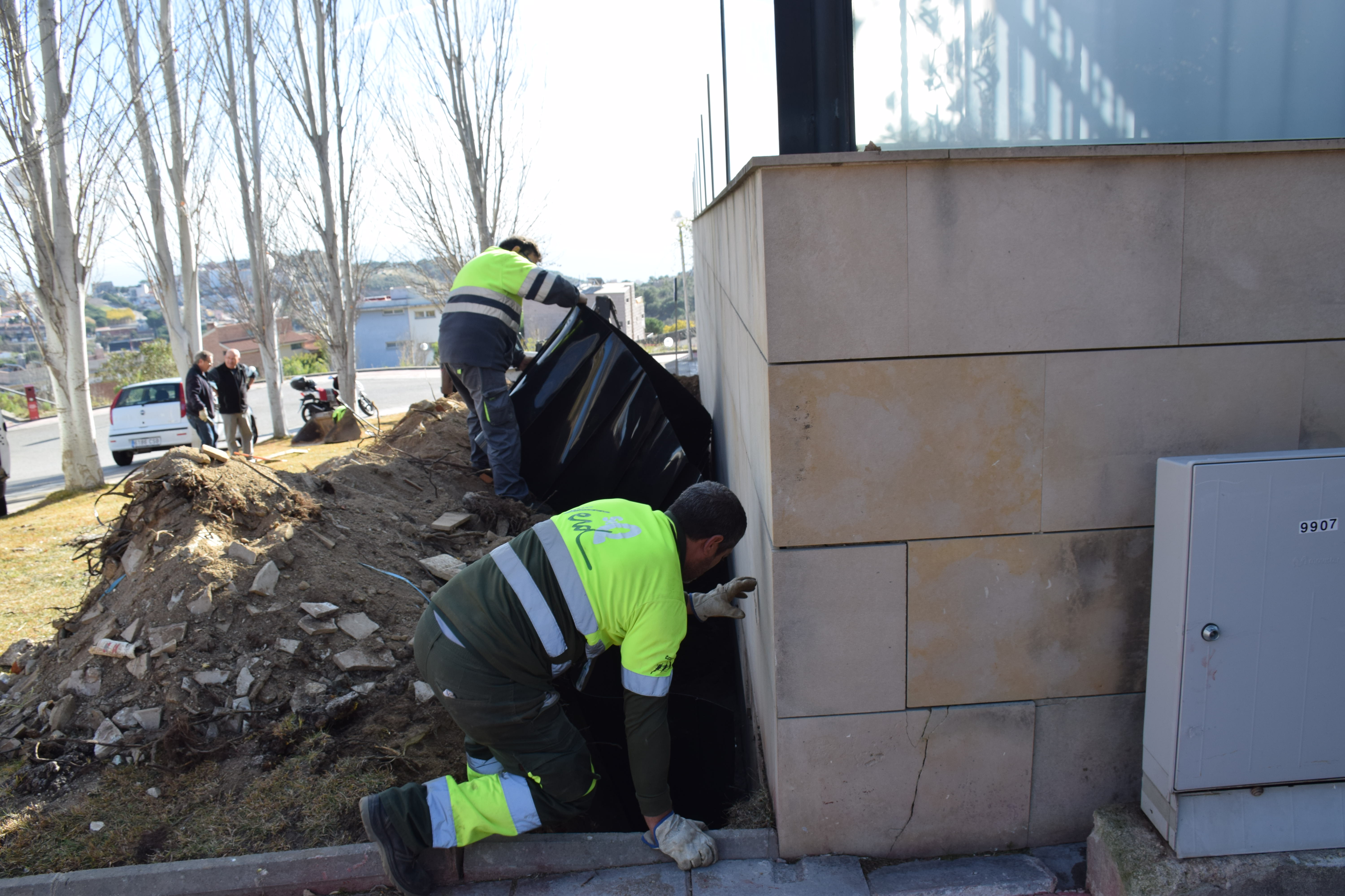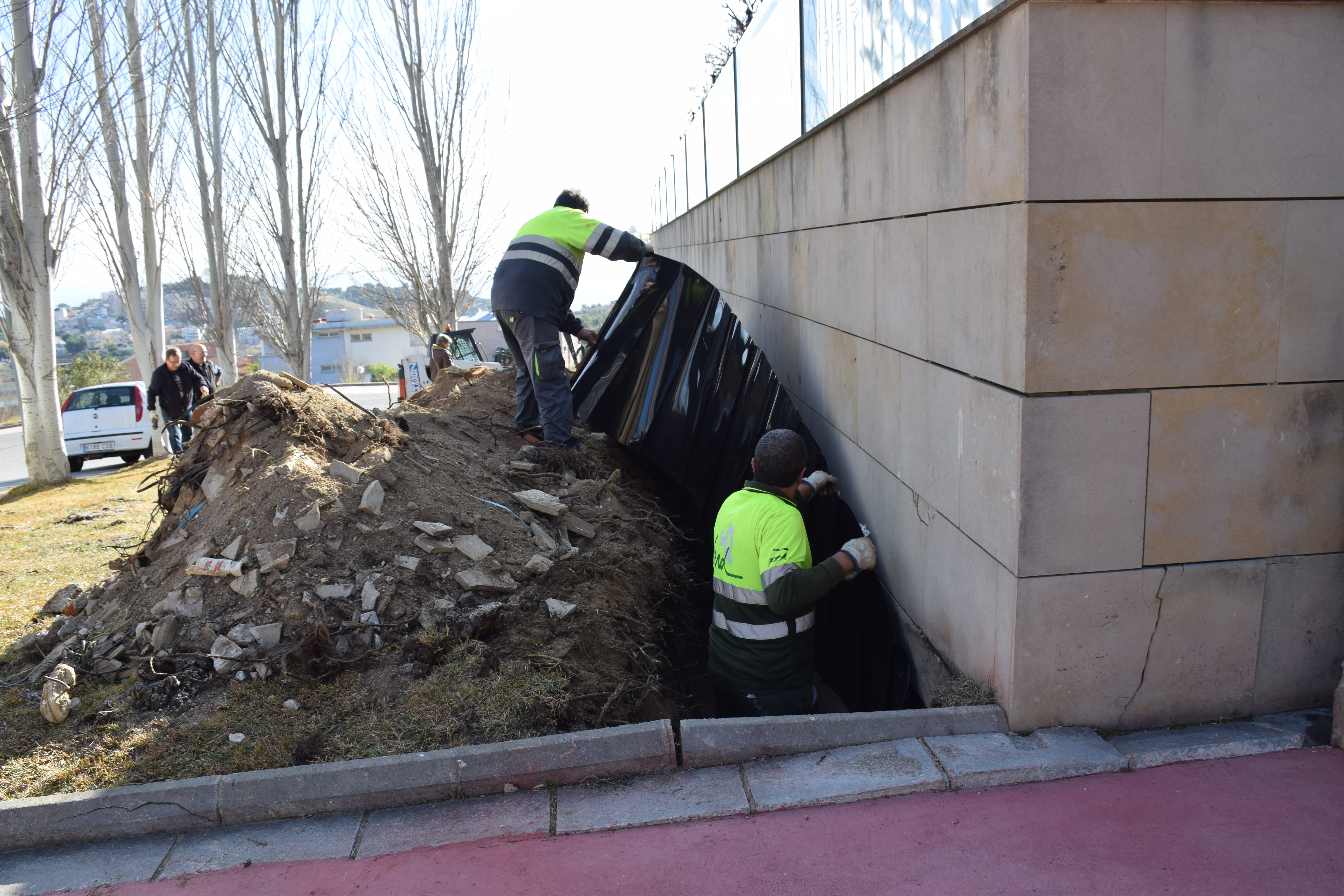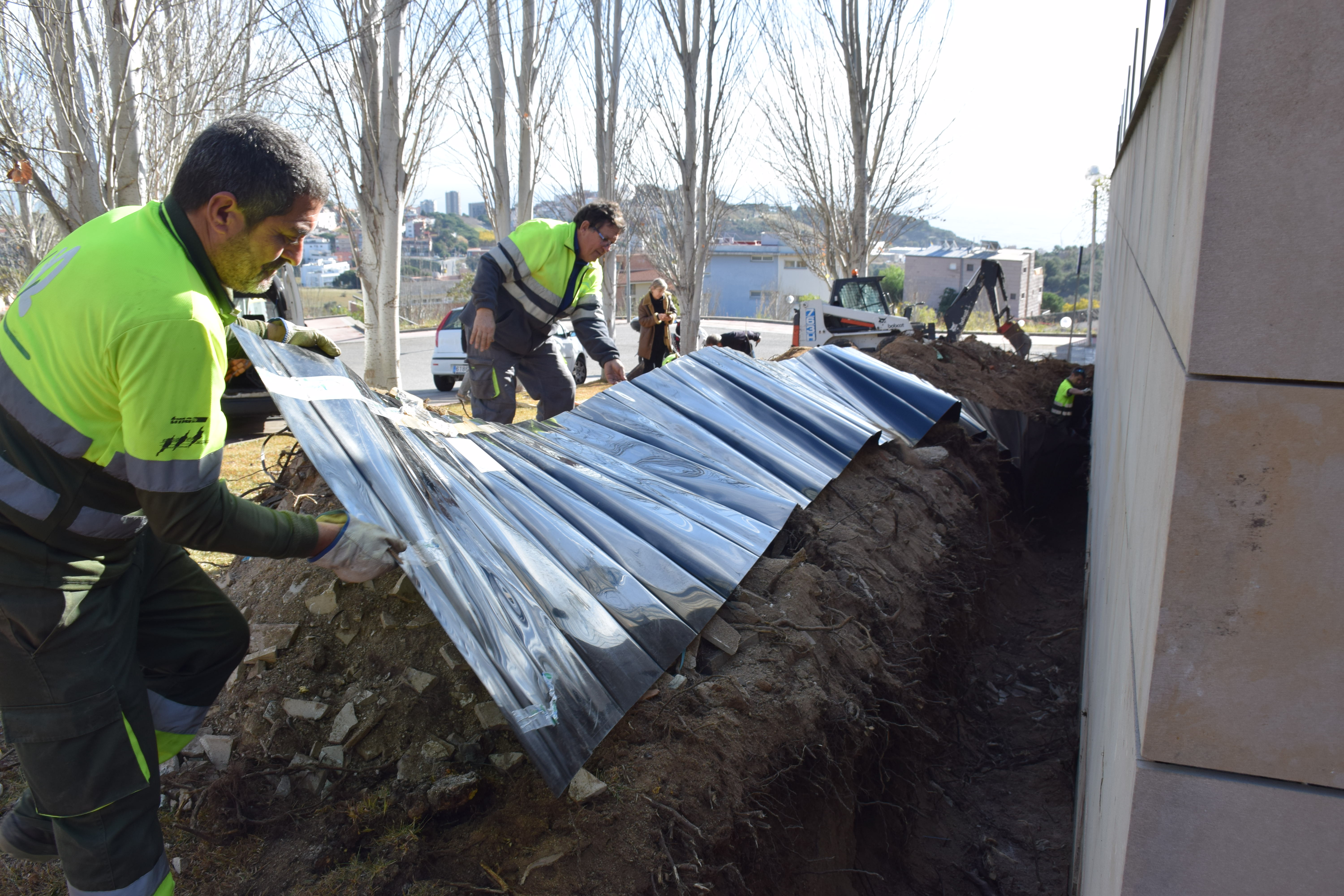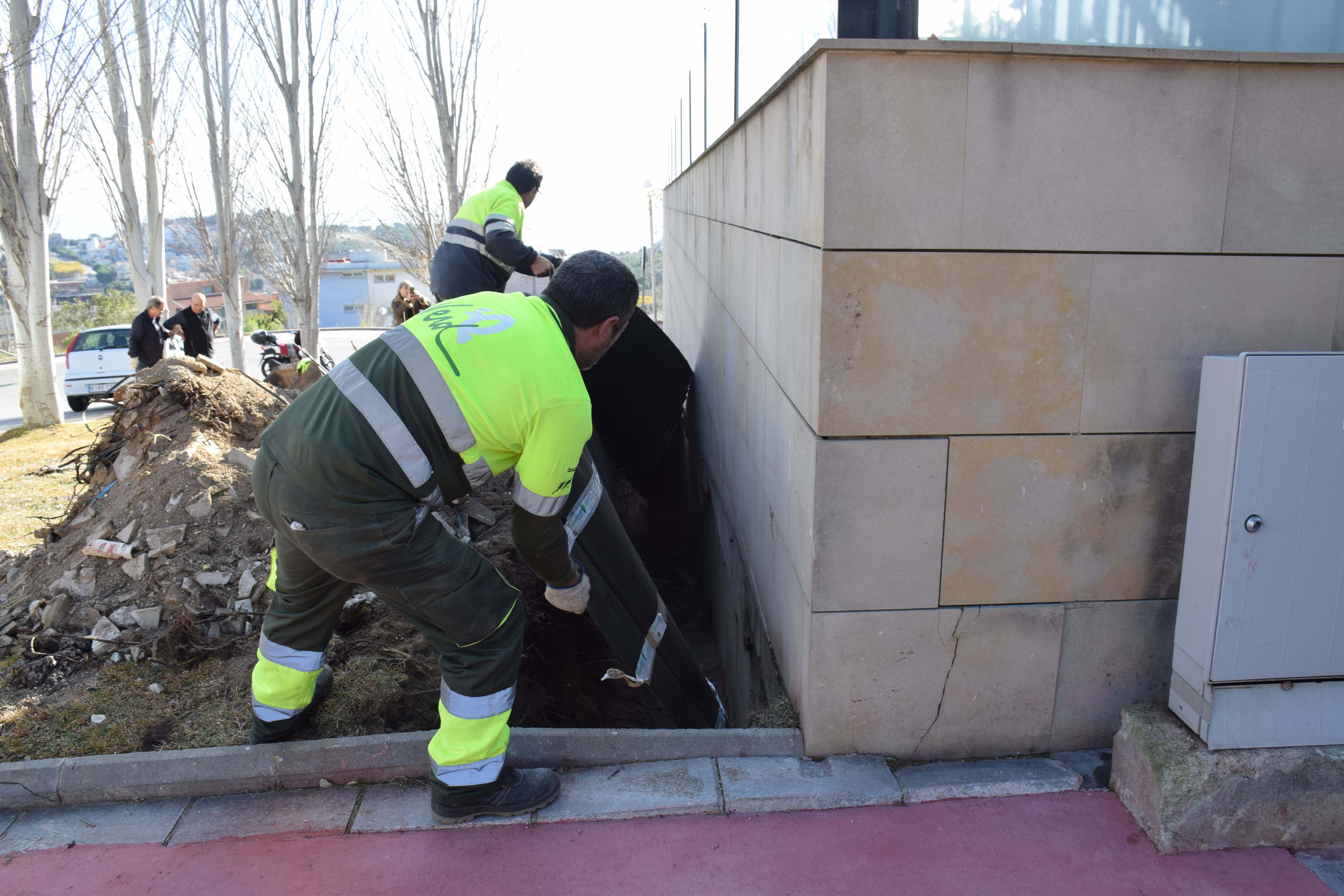 La intervenció, asseguren els operaris, no afecta els arbres: només els desvia les arrels i els brots.