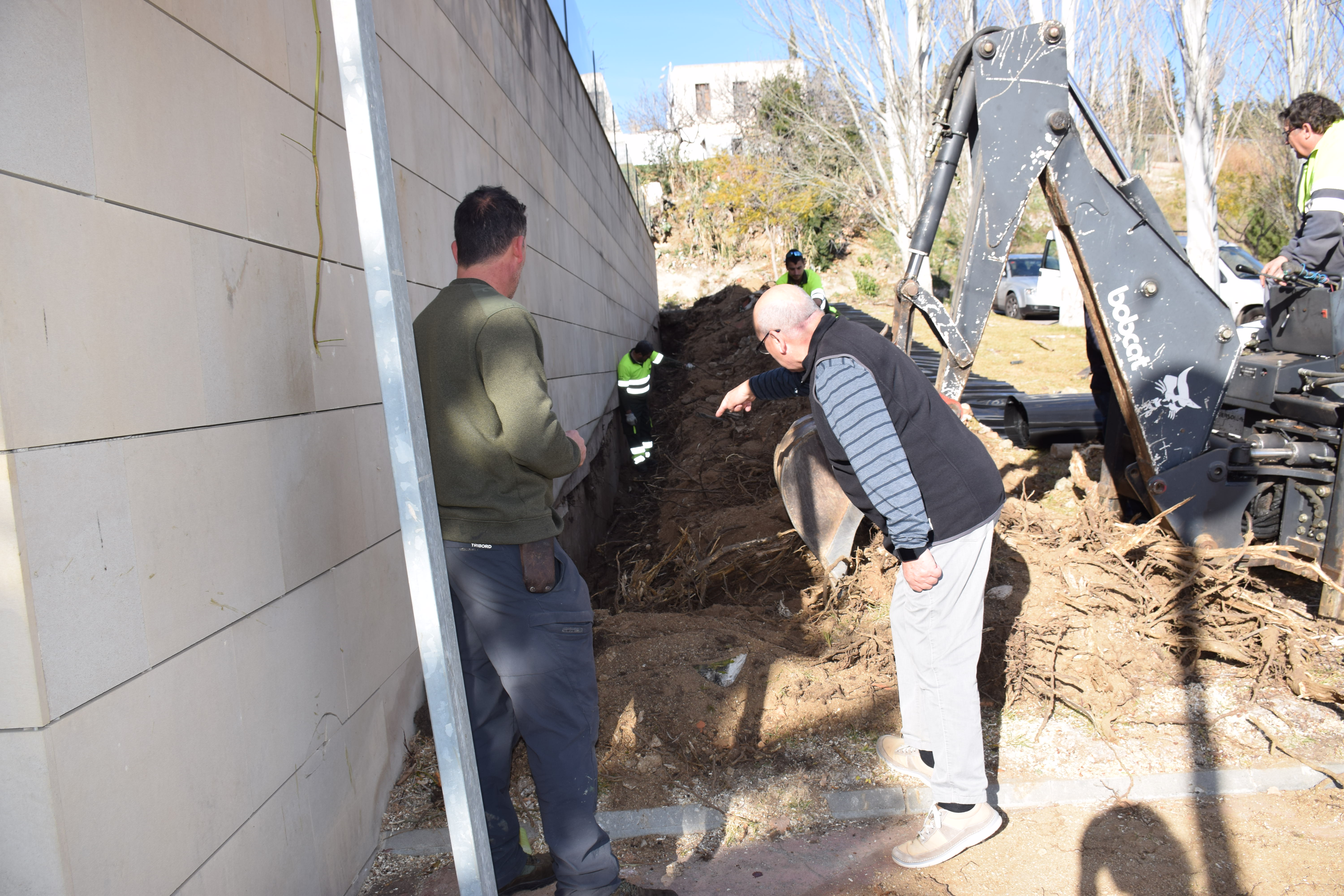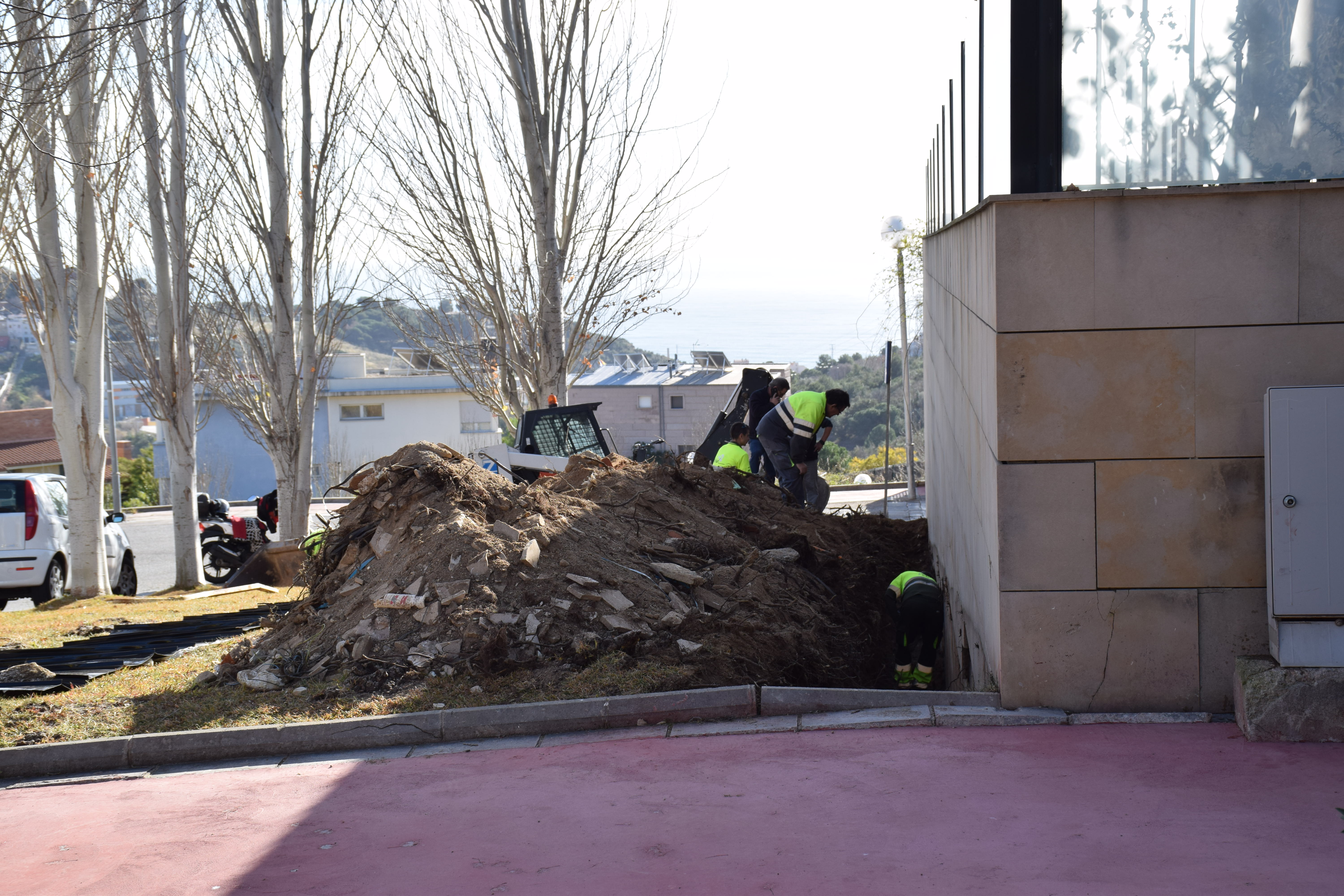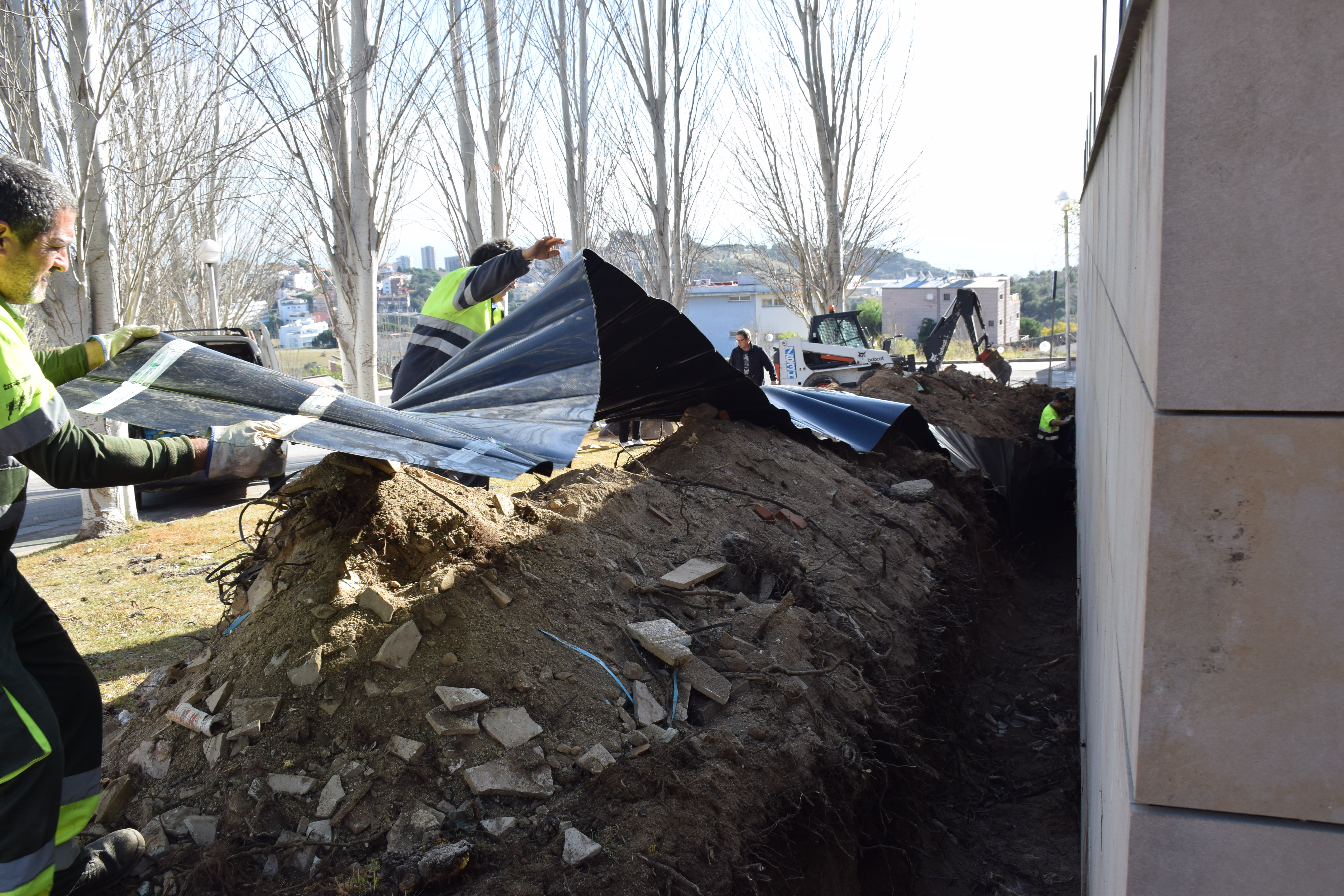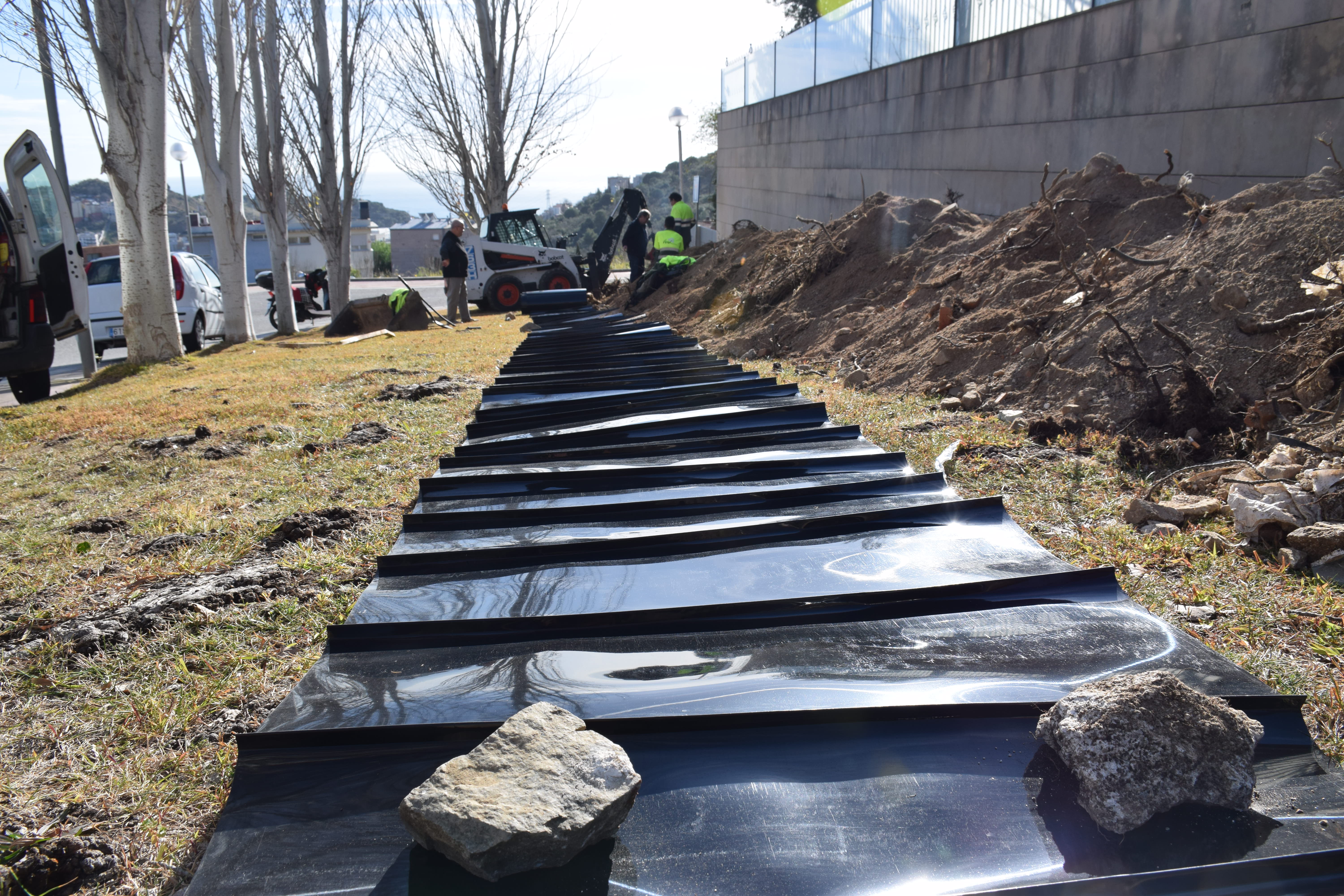 La intervenció, asseguren els operaris, no afecta els arbres: només els desvia les arrels i els brots.