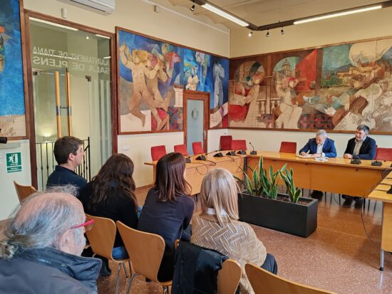 Salvatierra també ha aprofitat la visita de Jaume Collboni per continuar reivindicant la necessitat de tenir un autobús directe a Barcelona i per parlar de la promoció d’habitatges públics de Cals Frares: