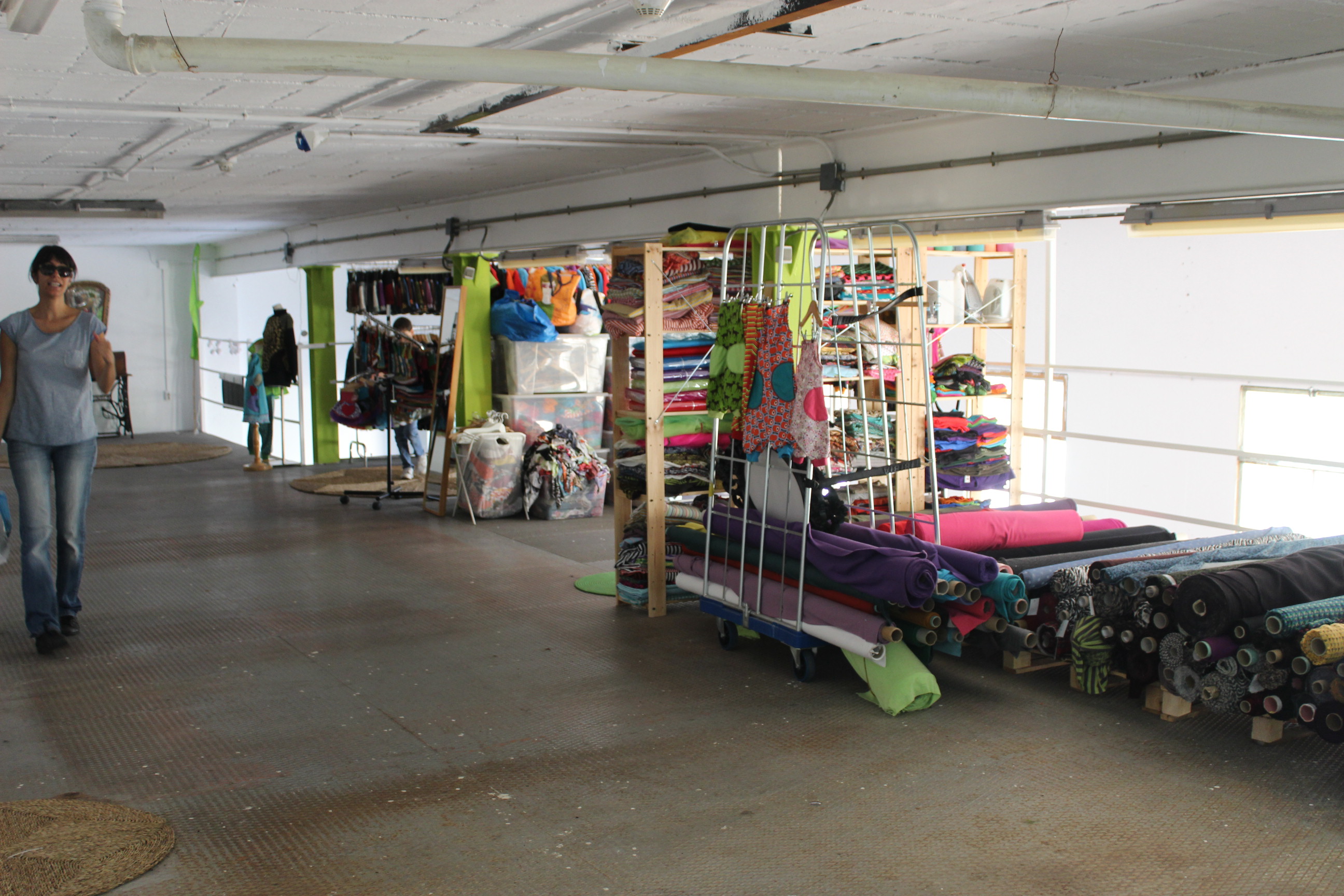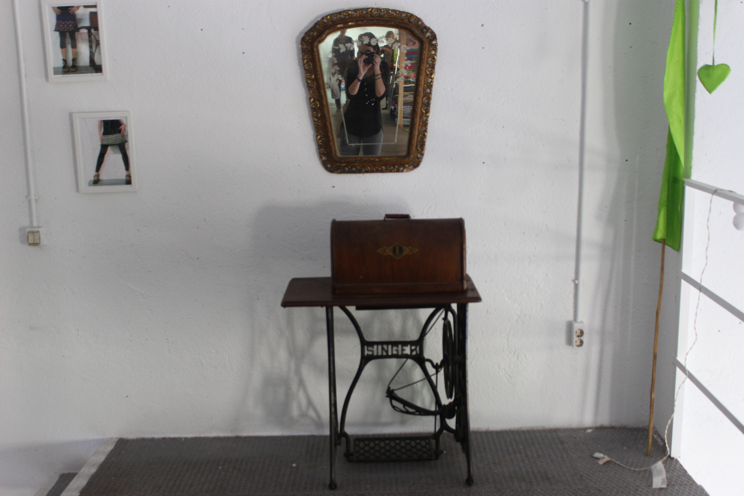 La Míriam dissenyarà la seva roba al pis de dalt, un espai diàfan que li permet tenir l’amplitud que fins ara no tenia per encabir-hi teles, peces de roba i màquines. Tot plegat ho explica la Bianca: