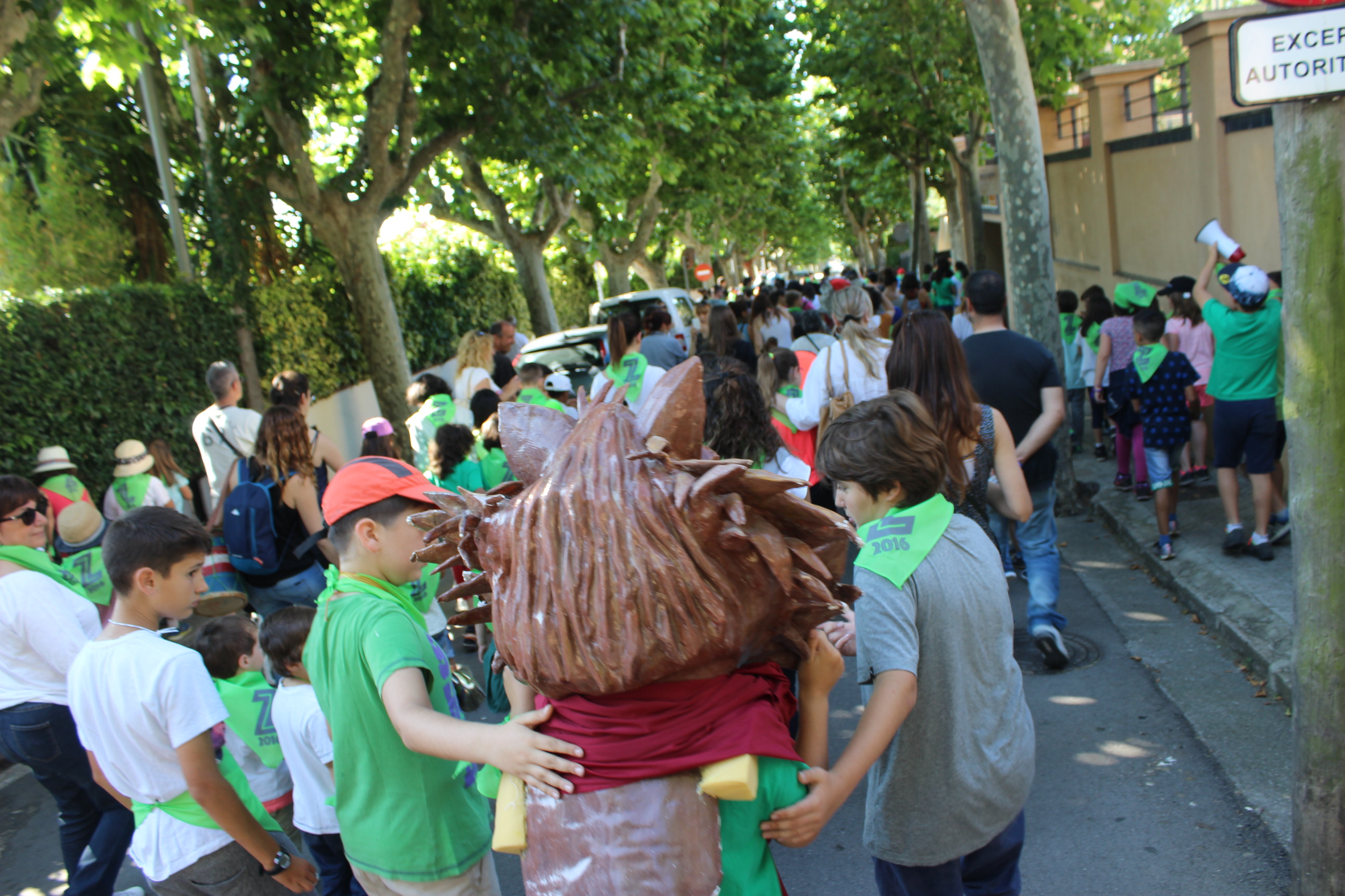 Durant la cercavila, han comptat amb la companyia dels Tabalers de Tiana que han estat qui ha portat el ritme, amb la companyia de xiulets i petits timbals dels alumnes. A més, els escolars portaven un mocador verd en representació de l’escola que canvia el seu disseny cada any, i han lluït el bestiari de l’escola com capgrossos. La cercavila ha finalitzat de nou al seu punt de partida.