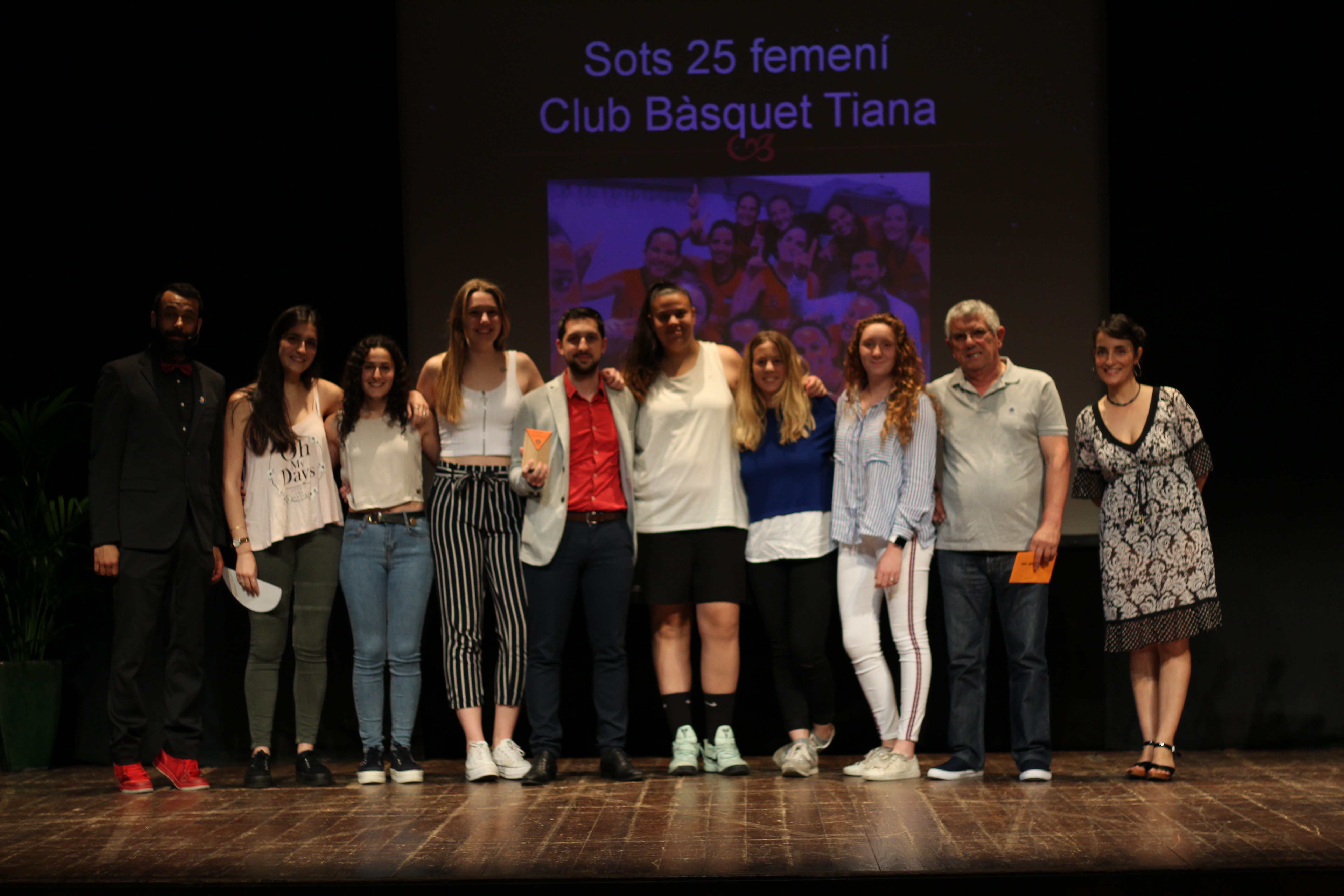 Miquel Quevedo va lliurar el premi a millor equip femení de Tiana a l’equip Sots 25 femení del Club de Bàsquet Tiana.