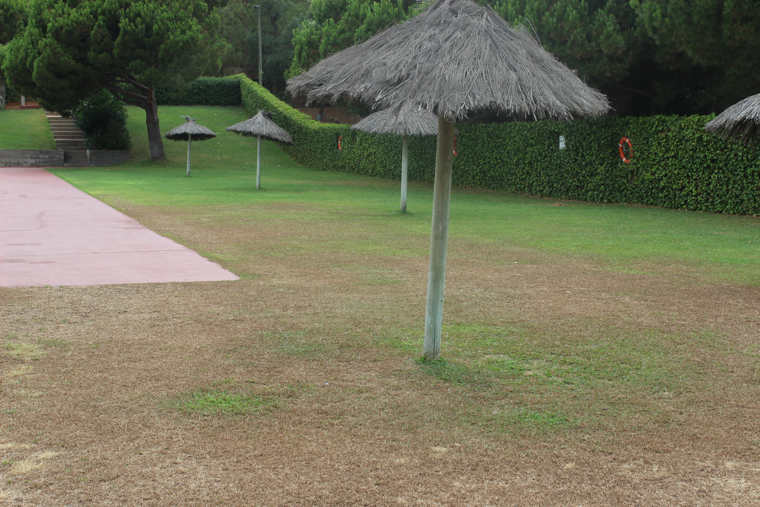 La gespa de la piscina descoberta pateix molt aquest estiu