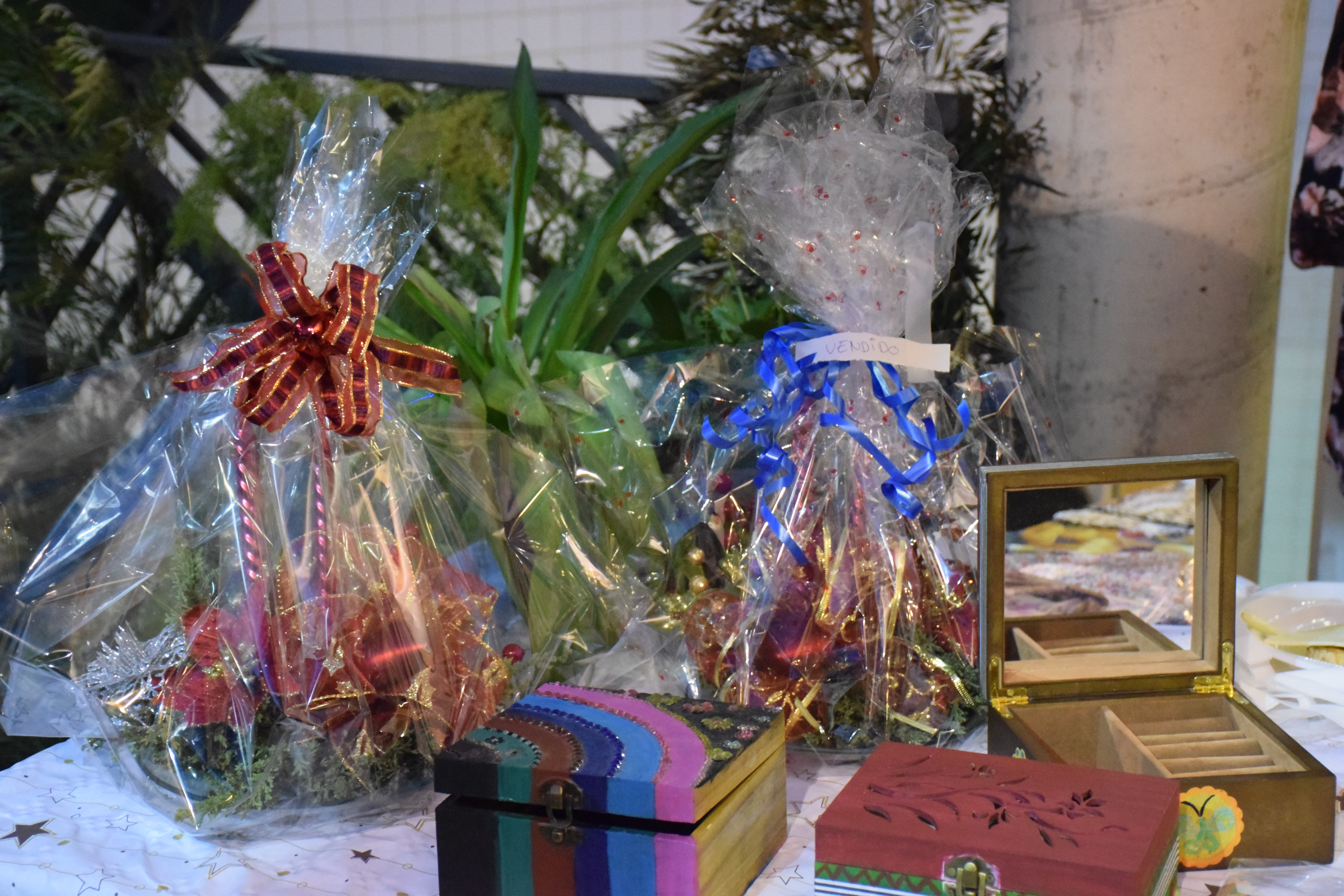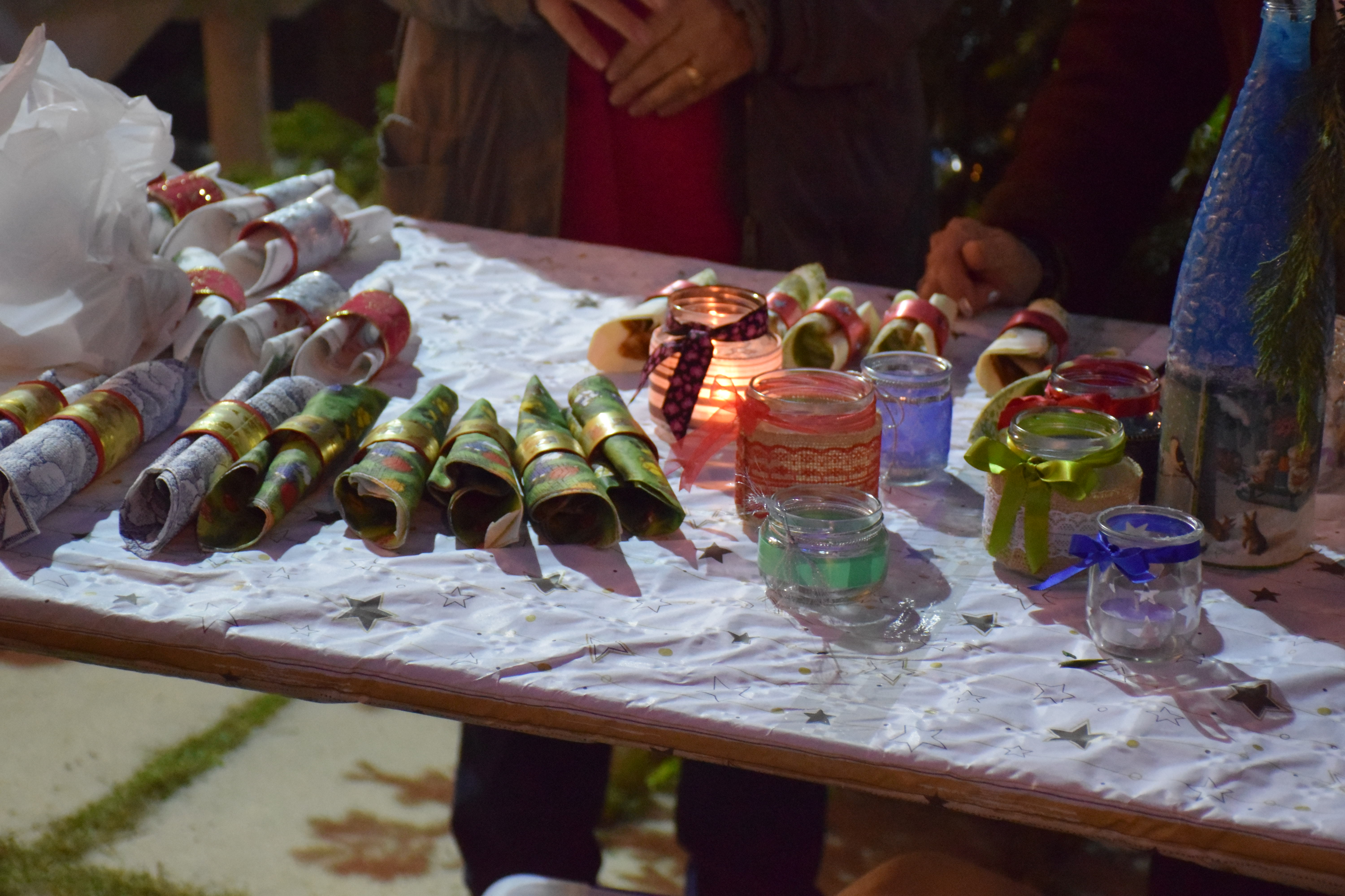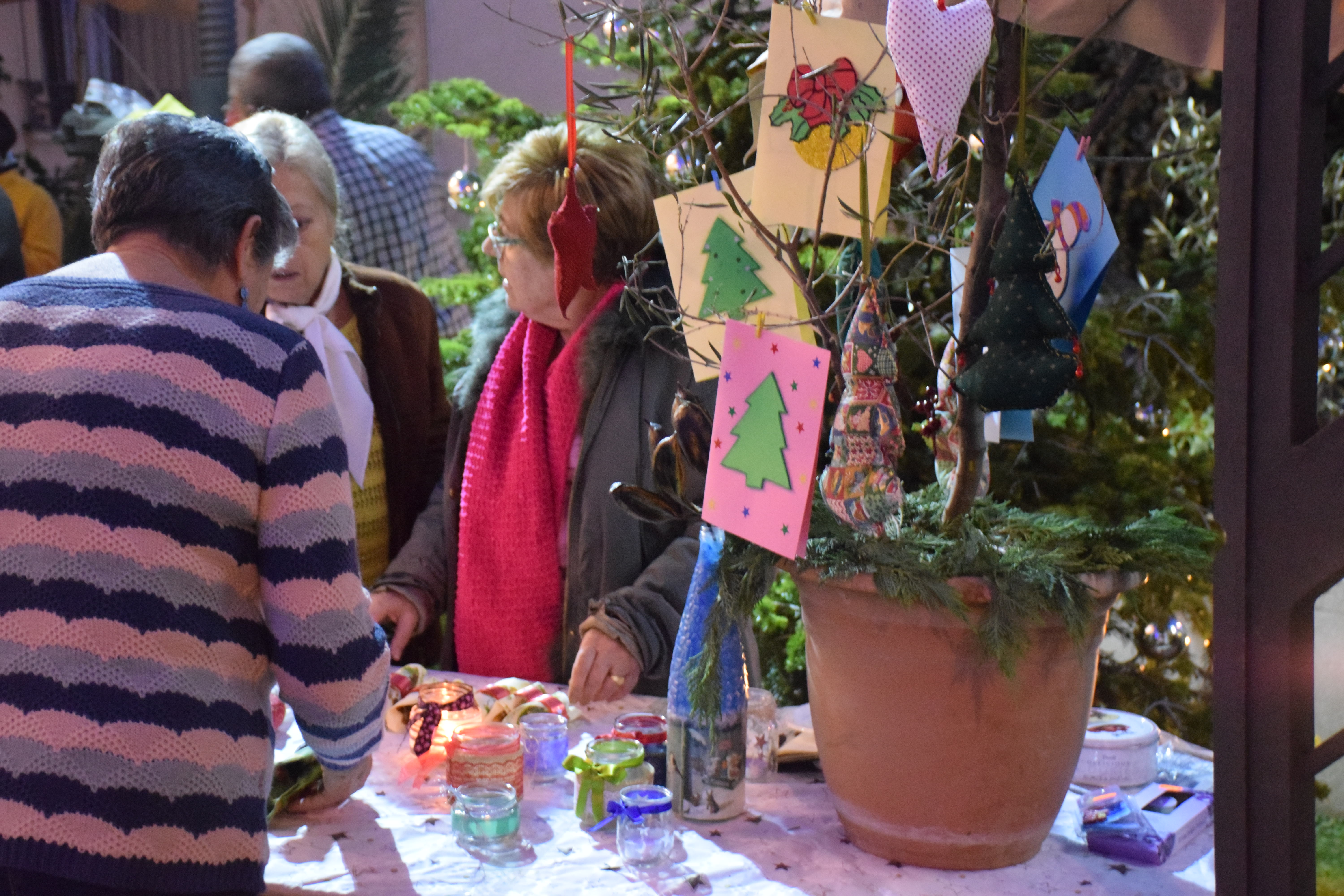 Com si fos una petita fira de Nadal, ha venit manualitats que els avis i àvies havien fet al mateix Casal. La Montserrat és una de les senyores que estava venent els diferents objectes que havien creat. Ella ens els enumera: