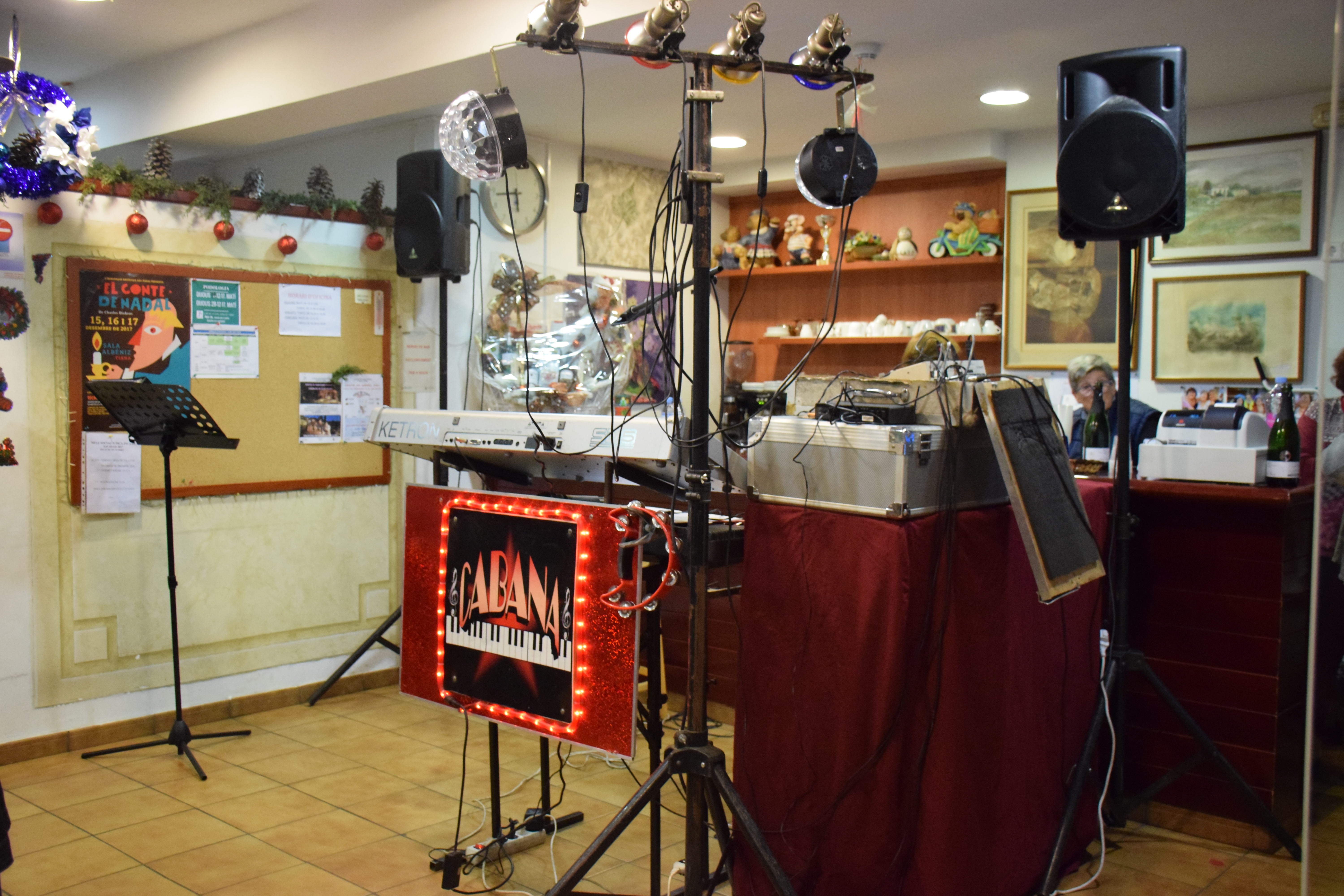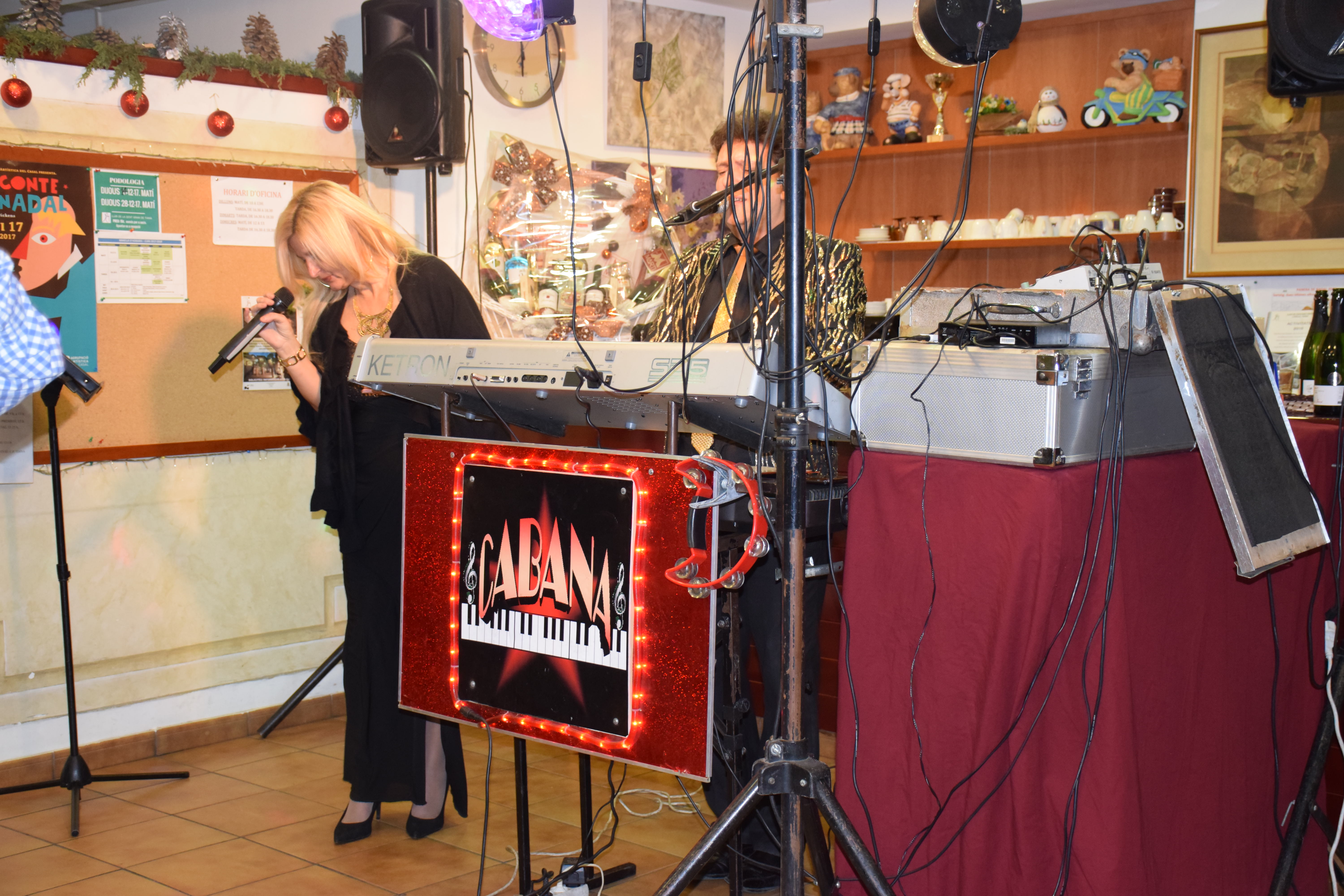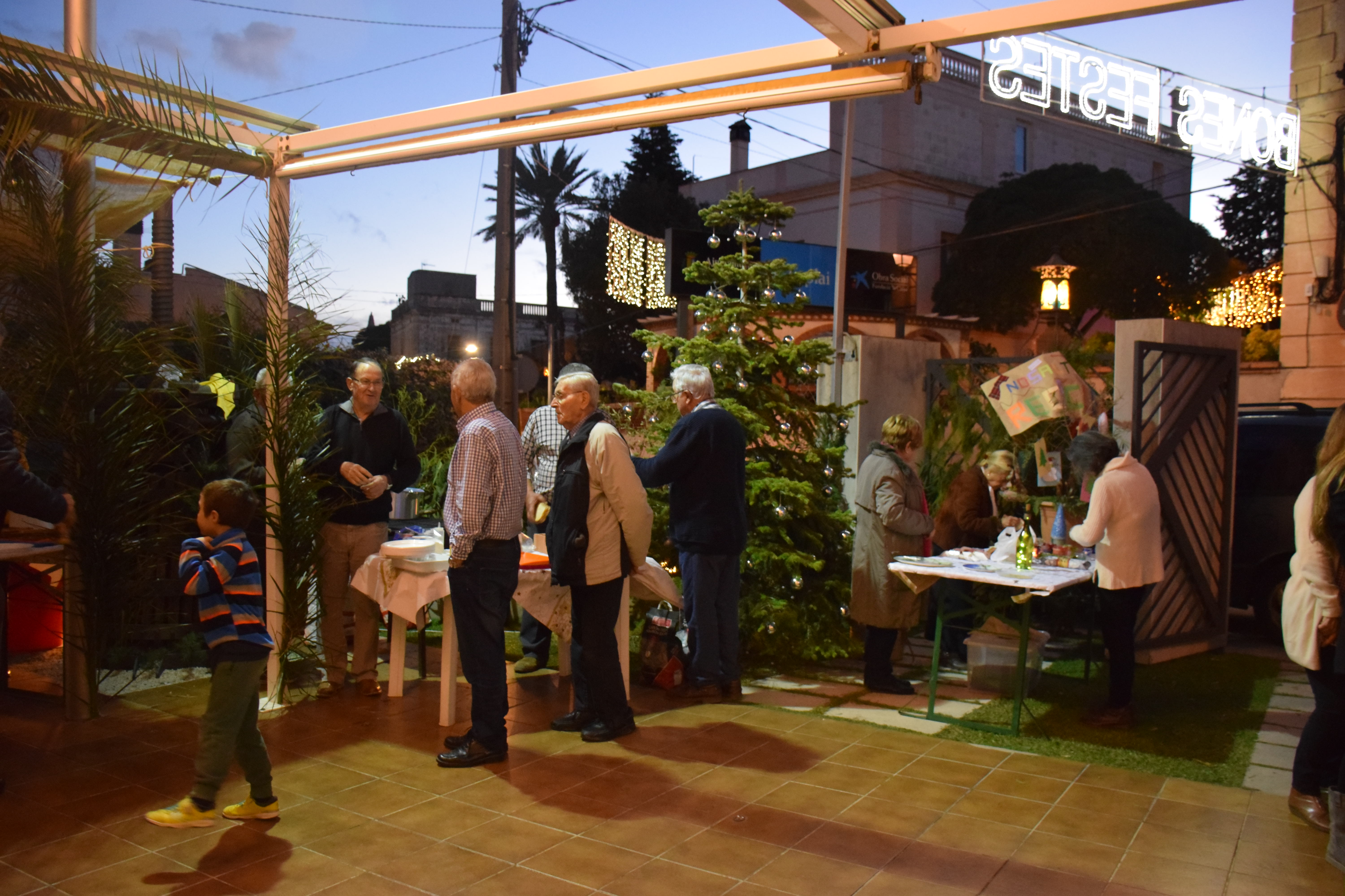 Amb aquest ambient musical i nadalenc han celebrat a la Llar d’Avis el seu berenar de Nadal, aquest divendres. El Casal ja estava gairebé ple a dos quarts de sis de la tarda. I és que estaven apuntades un total de 110 persones. Una banda musical per animar l’ambient, pa torrat amb embotit i mel i mató, i les tres paradetes que es van muntar al jardí van ser els ingredients principals de la festa.