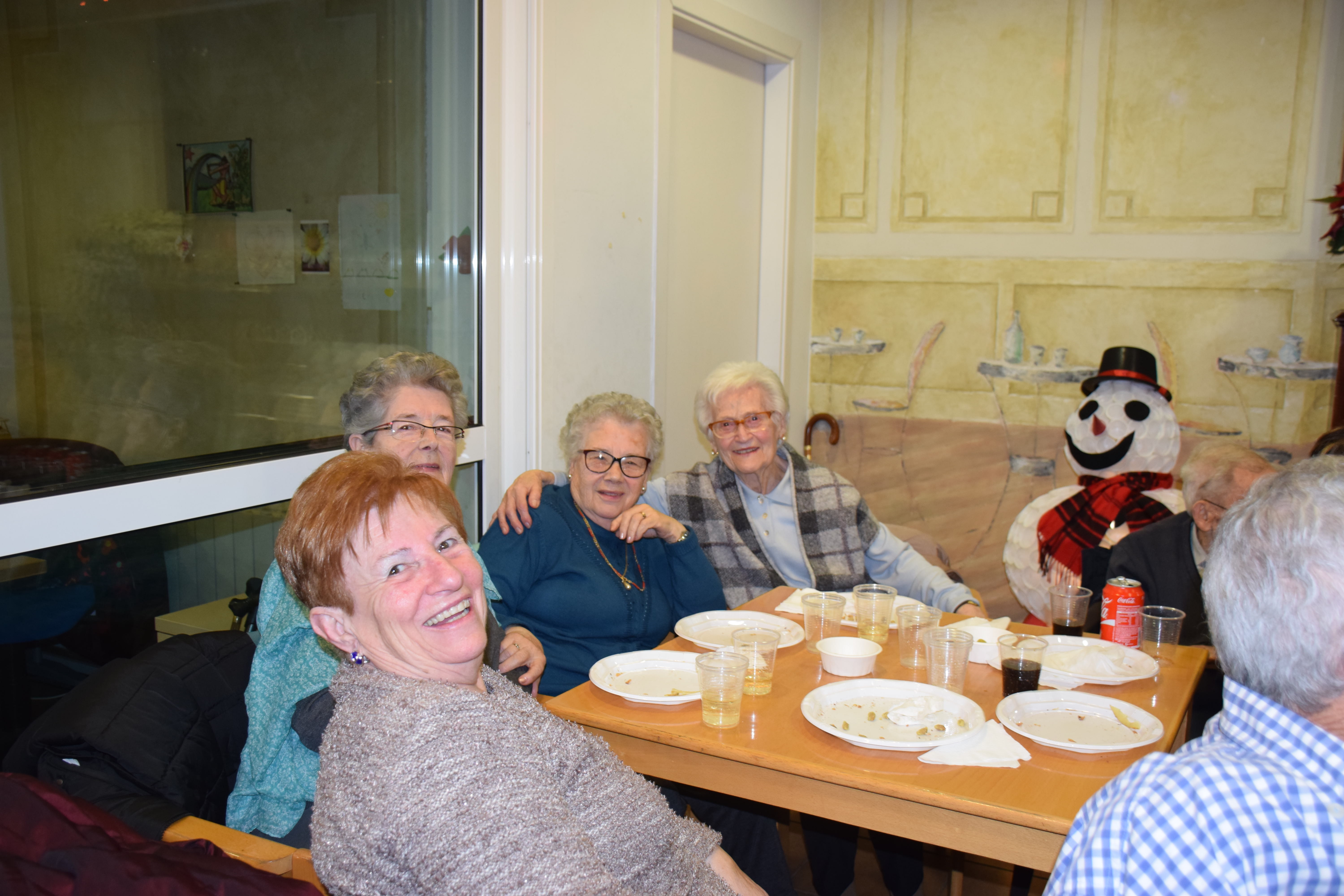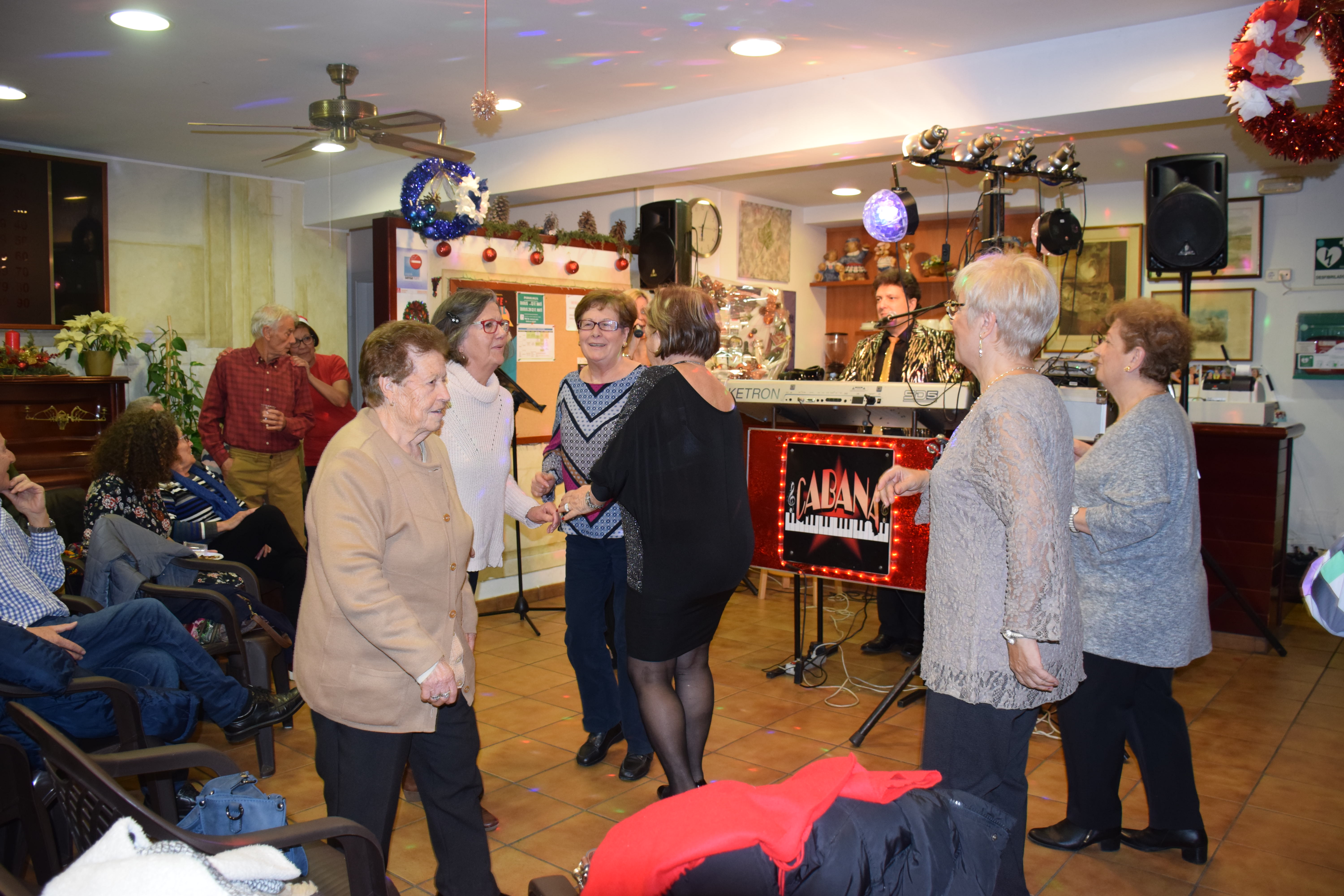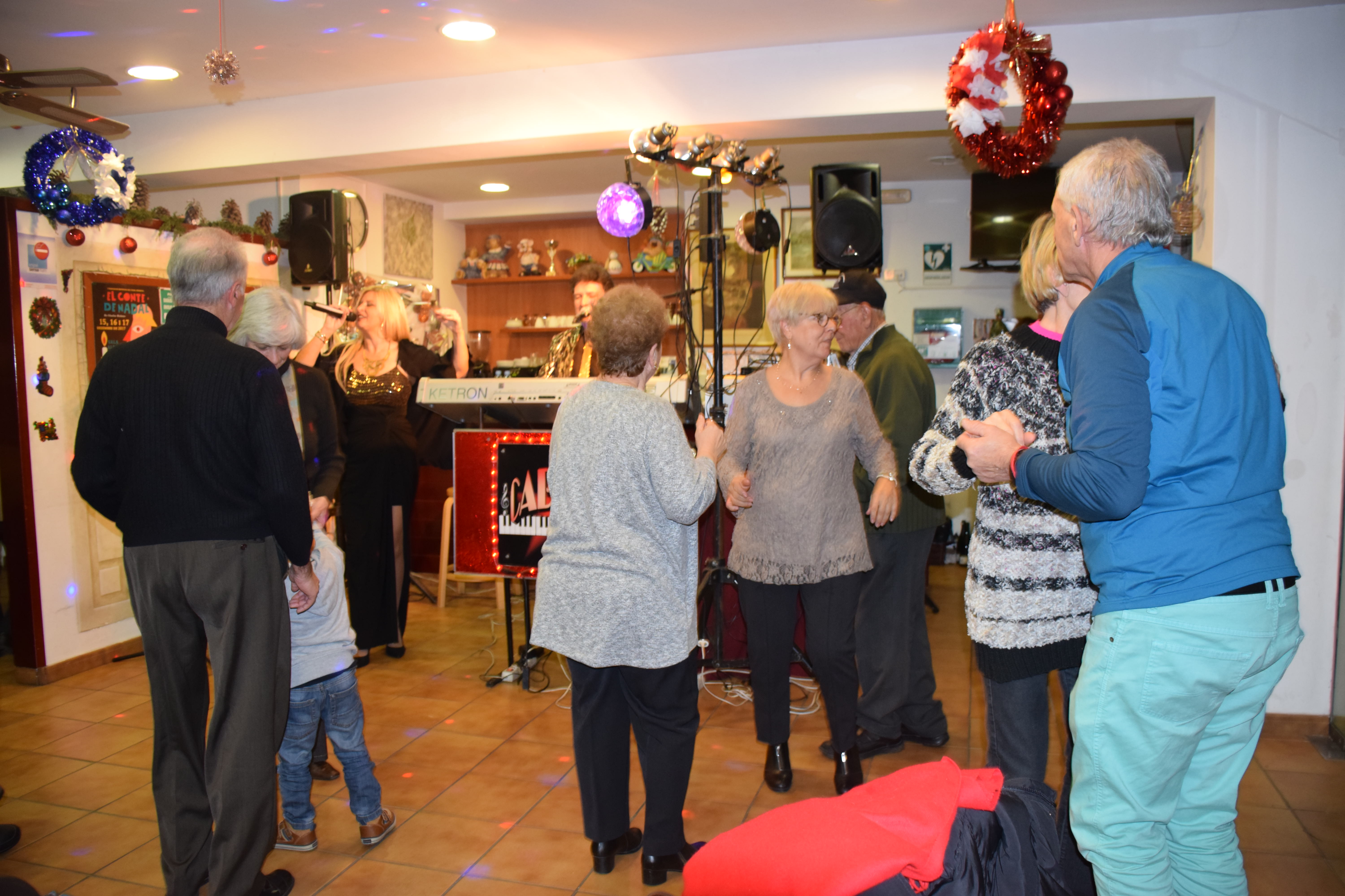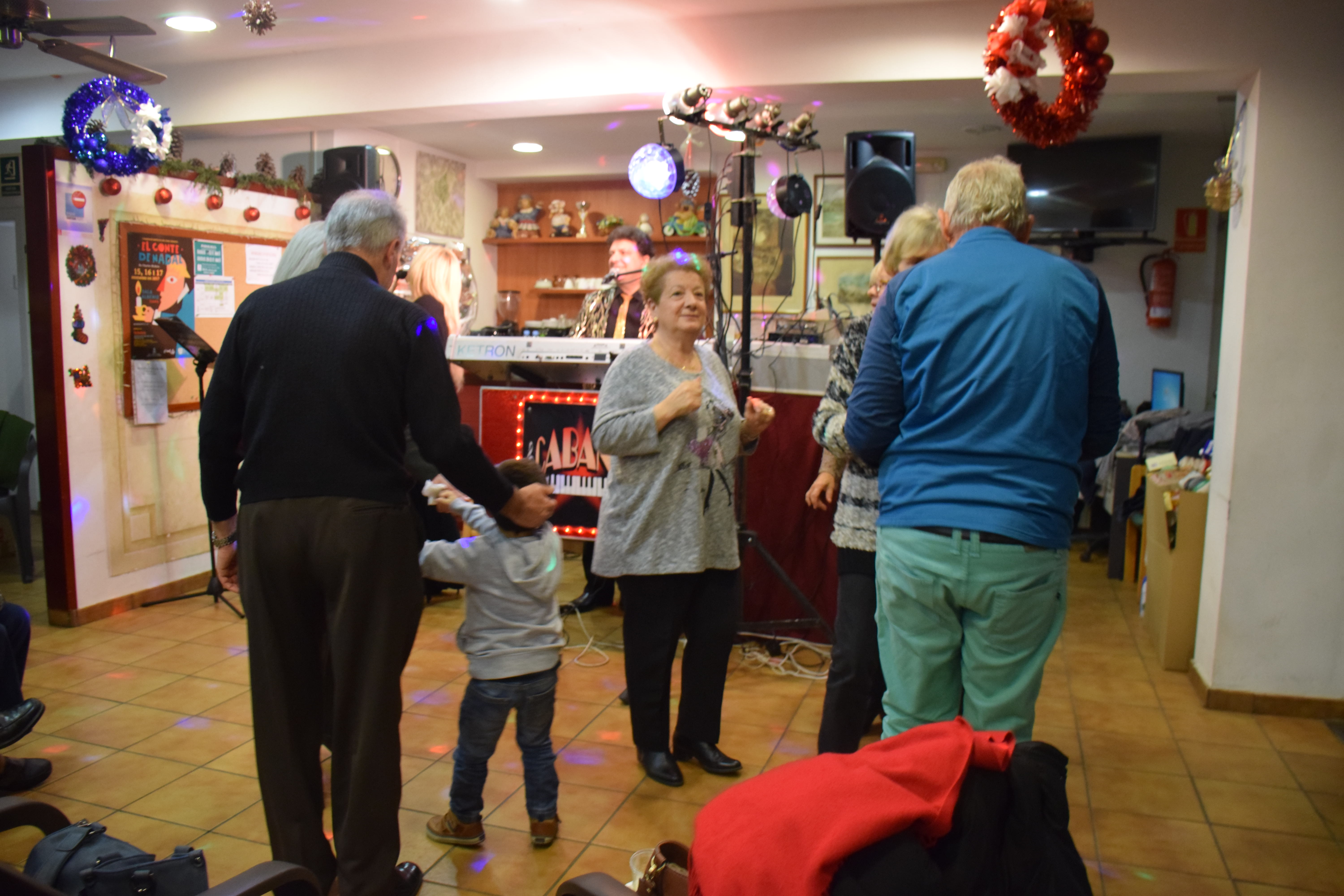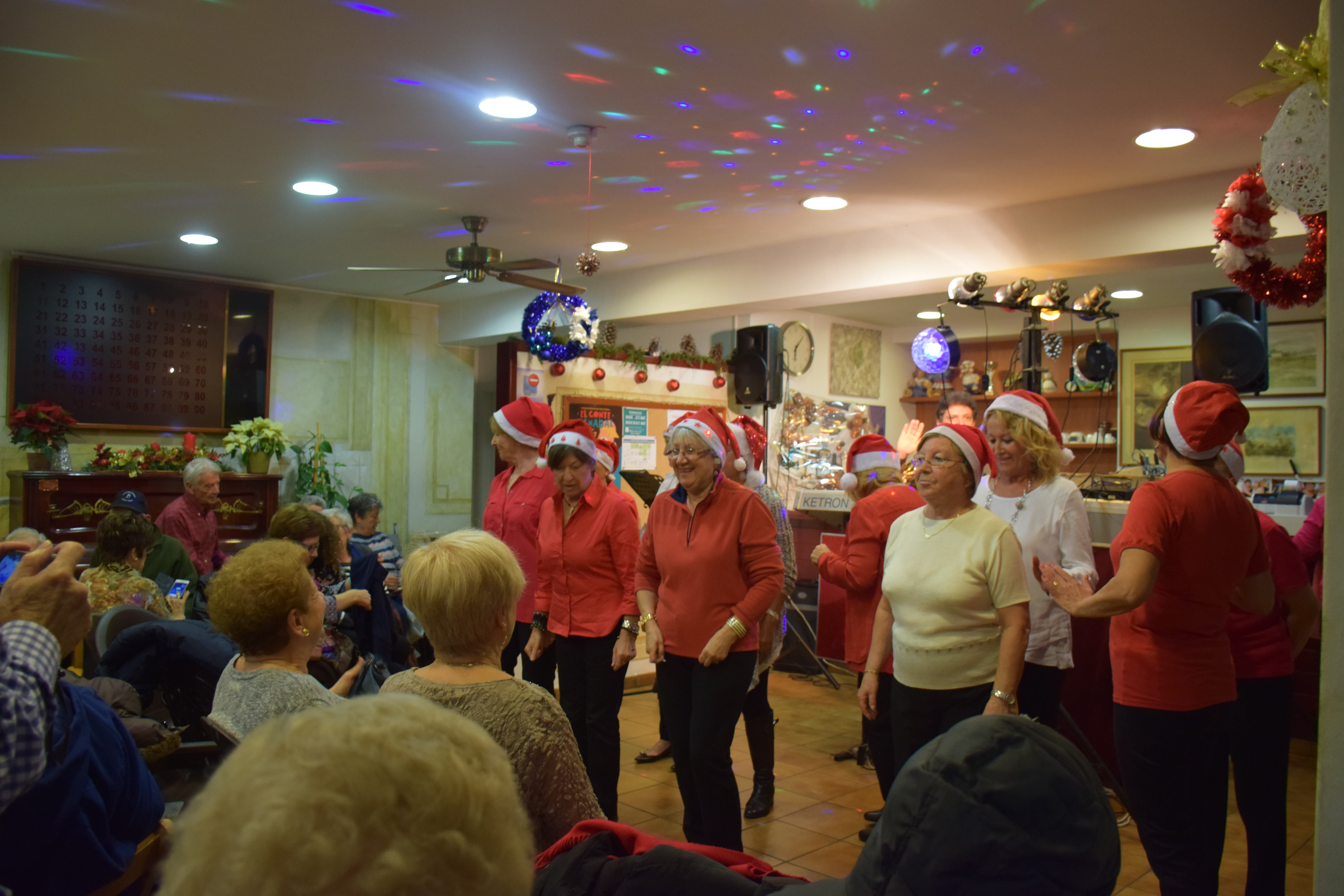 A dins de la Llar d’Avis, arrecerats del fred, totes les taules estaven ocupades mentre els avis i àvies berenaven i gaudien de l’espectacle musical de la banda. Fins i tot han sortit a ballar un grup d’àvies que havien preparat una coreografia nadalenca. Un ambient molt animat que ha servit per donar la benvinguda al Nadal en bona companyia.