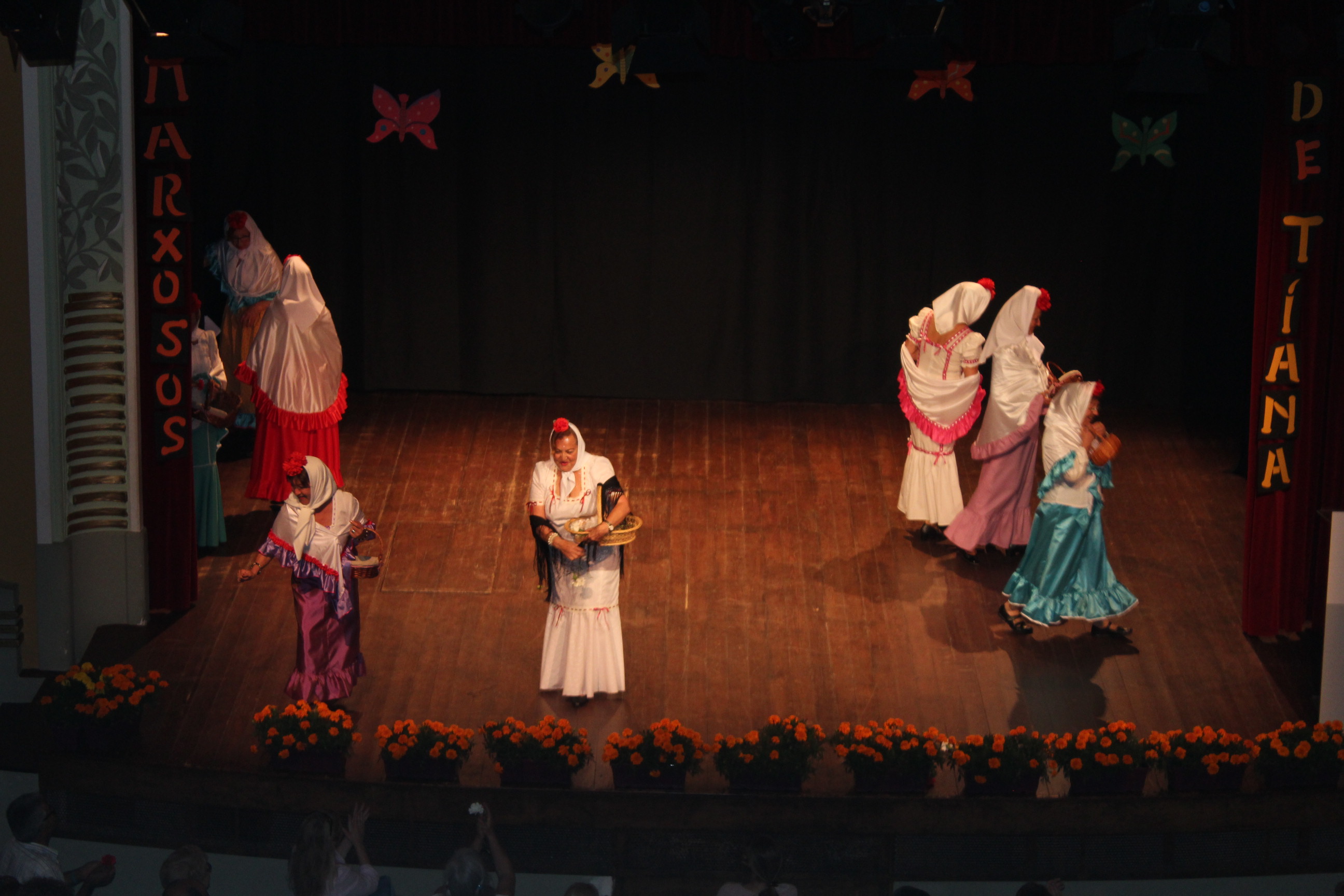 Cabaret, Los Nardos de Sara Montiel, Sevillanes o Cançó d’Amor i de Guerra, han estat alguns dels números que hem pogut veure en la tradicional paella que fa més de 10 anys que l’Ajuntament ofereix als socis de la Llar de Persones Grans de Tiana. Un espectacle que ha portat al damunt de l’escenari 42 artistes i que ha estat molt aplaudit per les mes de 270 persones que omplien la Sala Albéniz. Una de les encarregades de dirigir tot ha estat la Teresa Pompido. Ella ens ha explicat que tot ha anat molt bé i que a més cal recordar que “no son professionals”